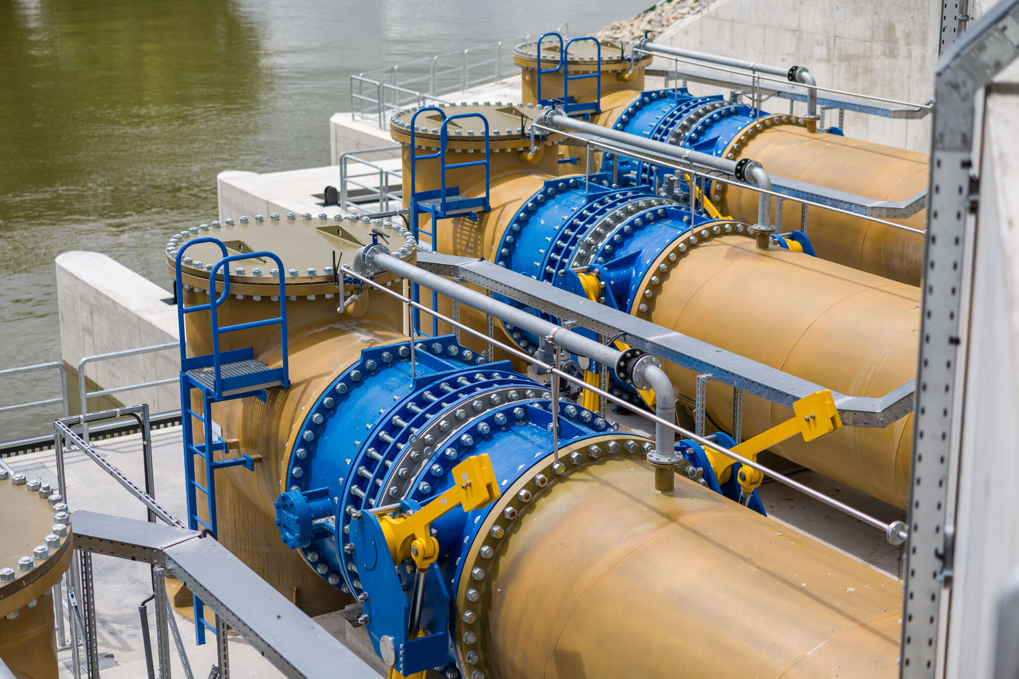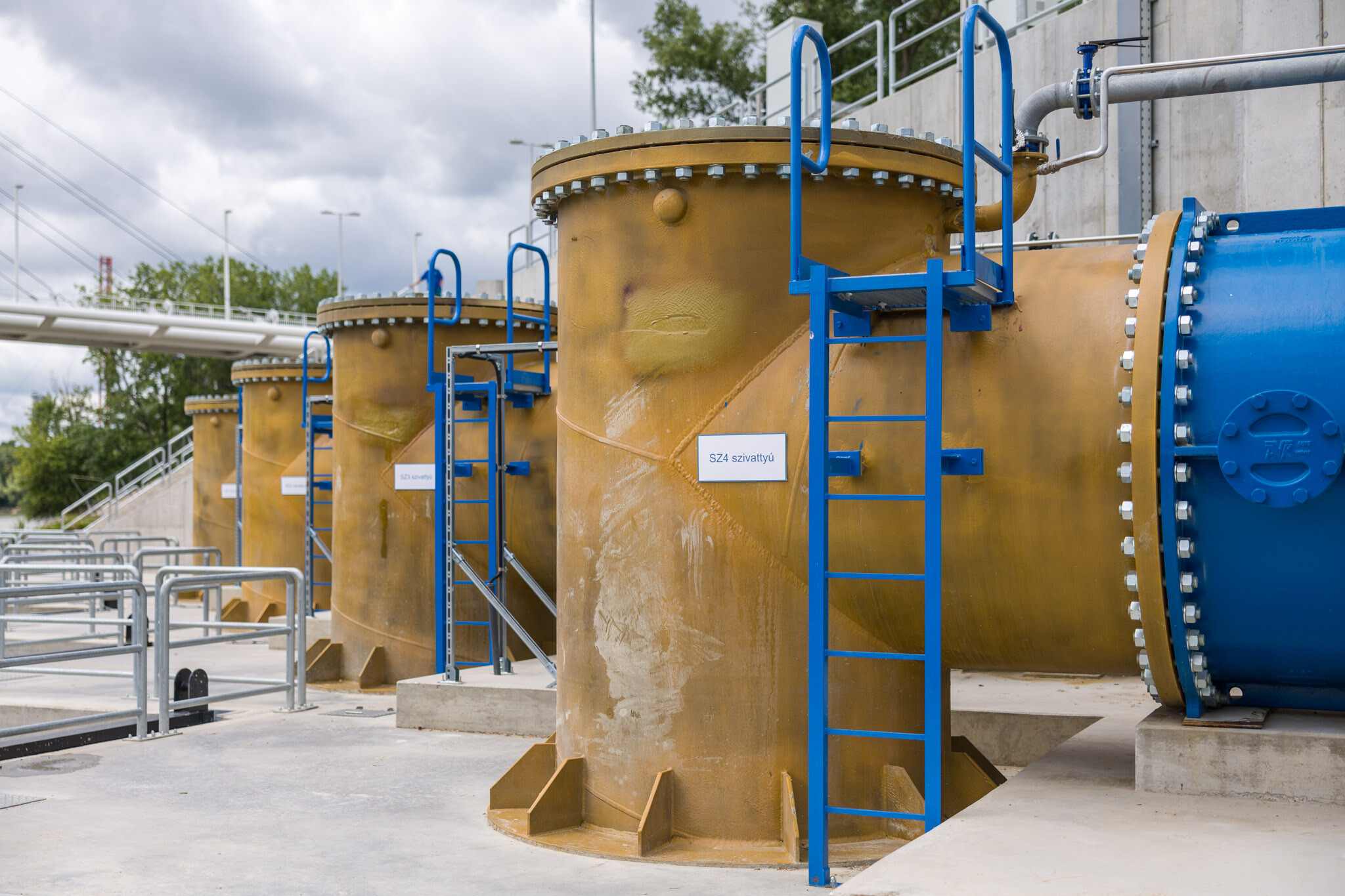 Az új telep négy szivattyúját 2 db párhuzamosan lefektetett, egyenként 1,8 méter átmérőjű cső, - amelyek egy 2,4 méter átmérőjű csőbe egyesülnek - szolgálja ki. Az acélcsövek 30 mm vastagságú porcelánkeménységű felületkezelést kaptak, hogy megfeleljenek a vízügyi beruházásoknál elvárt százéves élettartamnak.