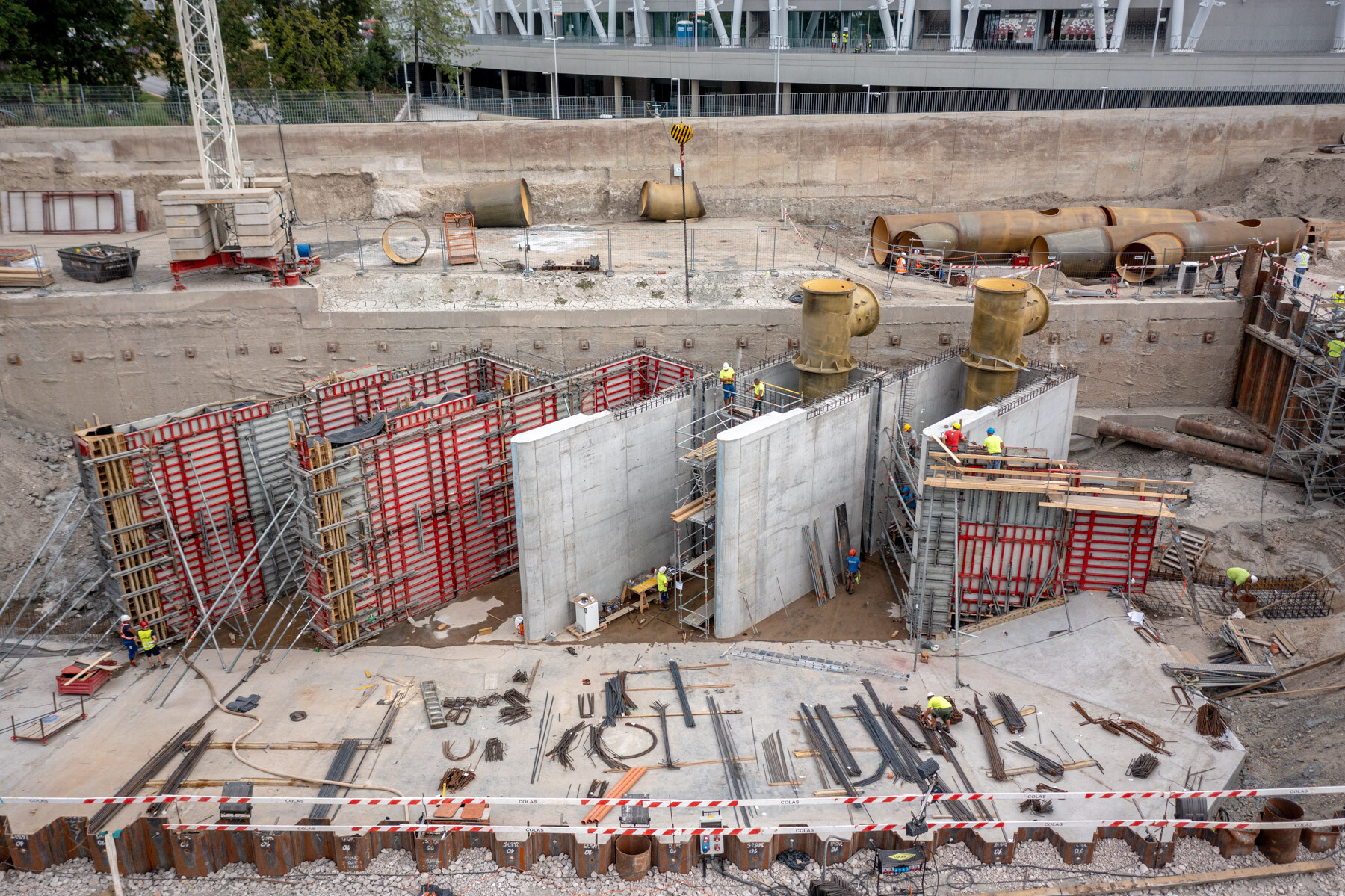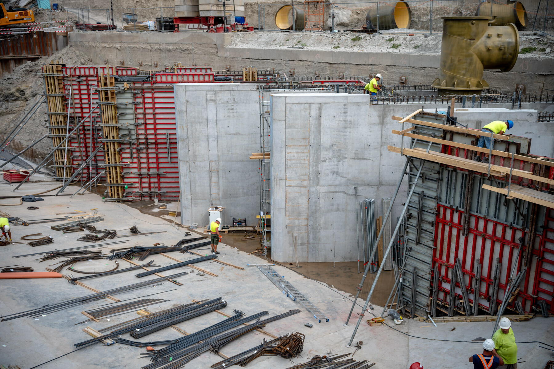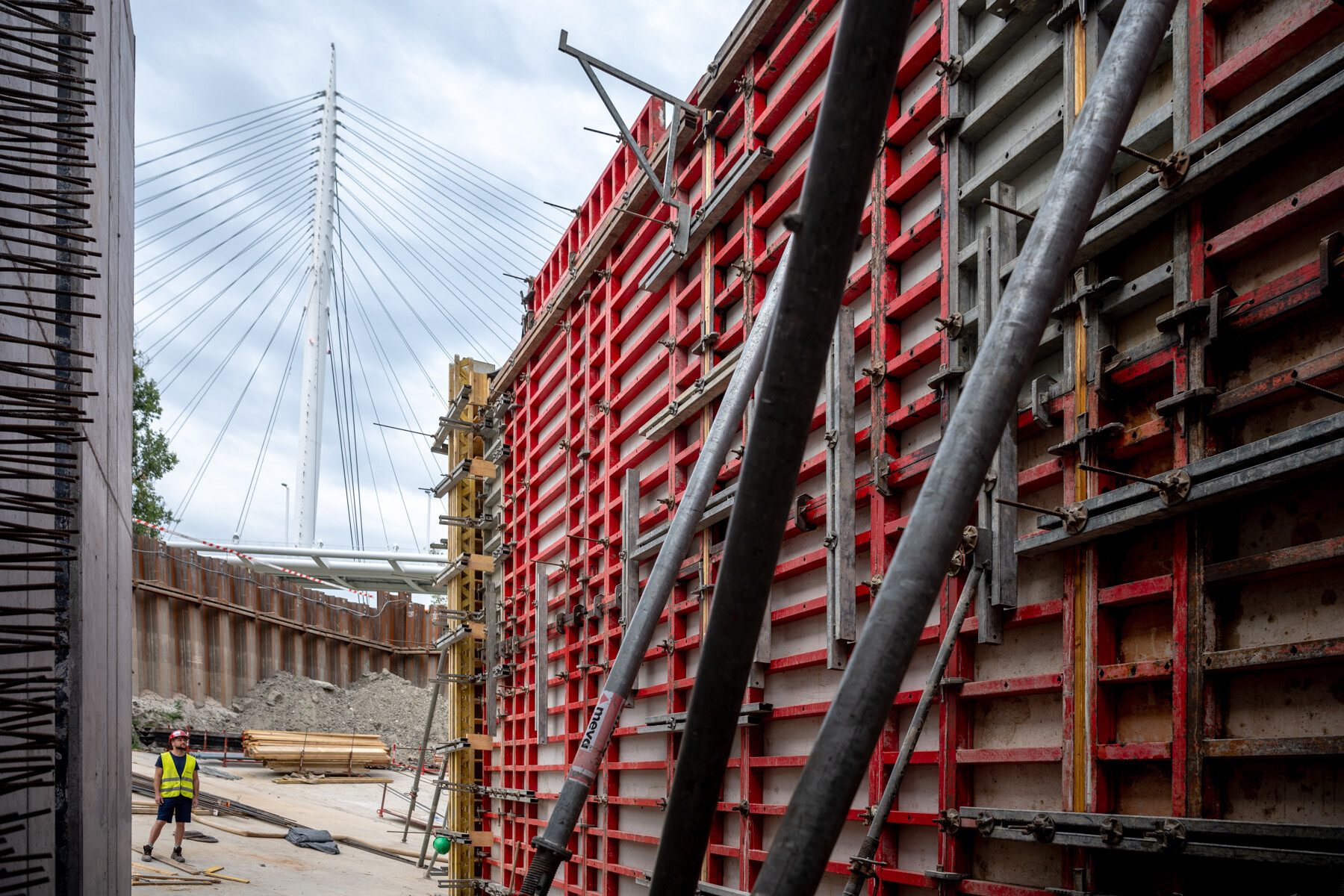 A víztelenített mederben a Horizont Invest Szerkezet Kft. a MEVA zsalurendszereivel több mint hét méteres magasságig betonfalakat emelt a kivitelezés során. A műtárgy feladata, hogy rávezesse a vizet a négy szivattyúra.