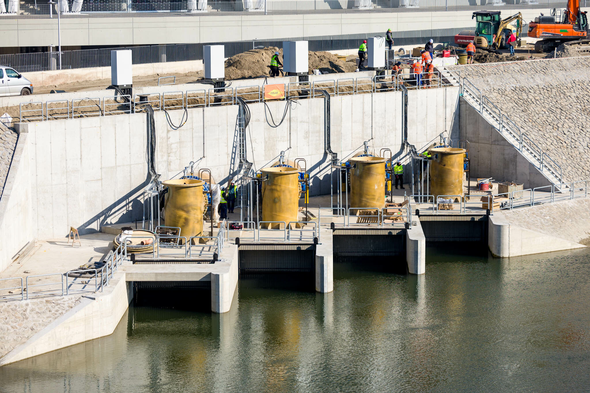 A Kvassay modernizációját időben megelőzte a Csepel-sziget déli csücskénél a Colas által kivitelezett tassi Sajó Elemér többfunkciós vízleeresztő műtárgy felújítása. 2021-ben adták át a szivattyús vízátemelési és gravitációs vízleeresztésre is alkalmas komplexumot, amely a Ráckevei-Soroksári-Dunából a főágba és a Dunából a mellékágba is képes vizet átemelni.
