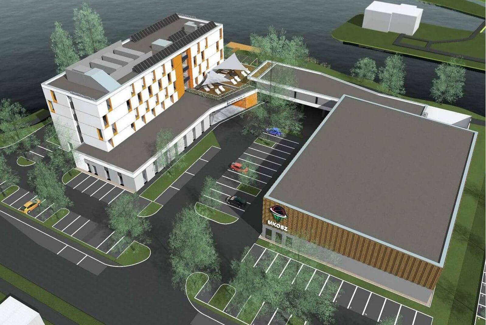 A többfunkciós épület szomszédságában tavaly tavasszal adtak egy új szállodakomplexumot, melyben a sportolók részére a szállás és az étkeztetés mellett orvosi szolgáltatást is biztosítanak. Az edzőcsarnokban Ímotorosan felhúzható palánkok, motoros térelválasztók, valamint tölgy sportparketta borítás van.