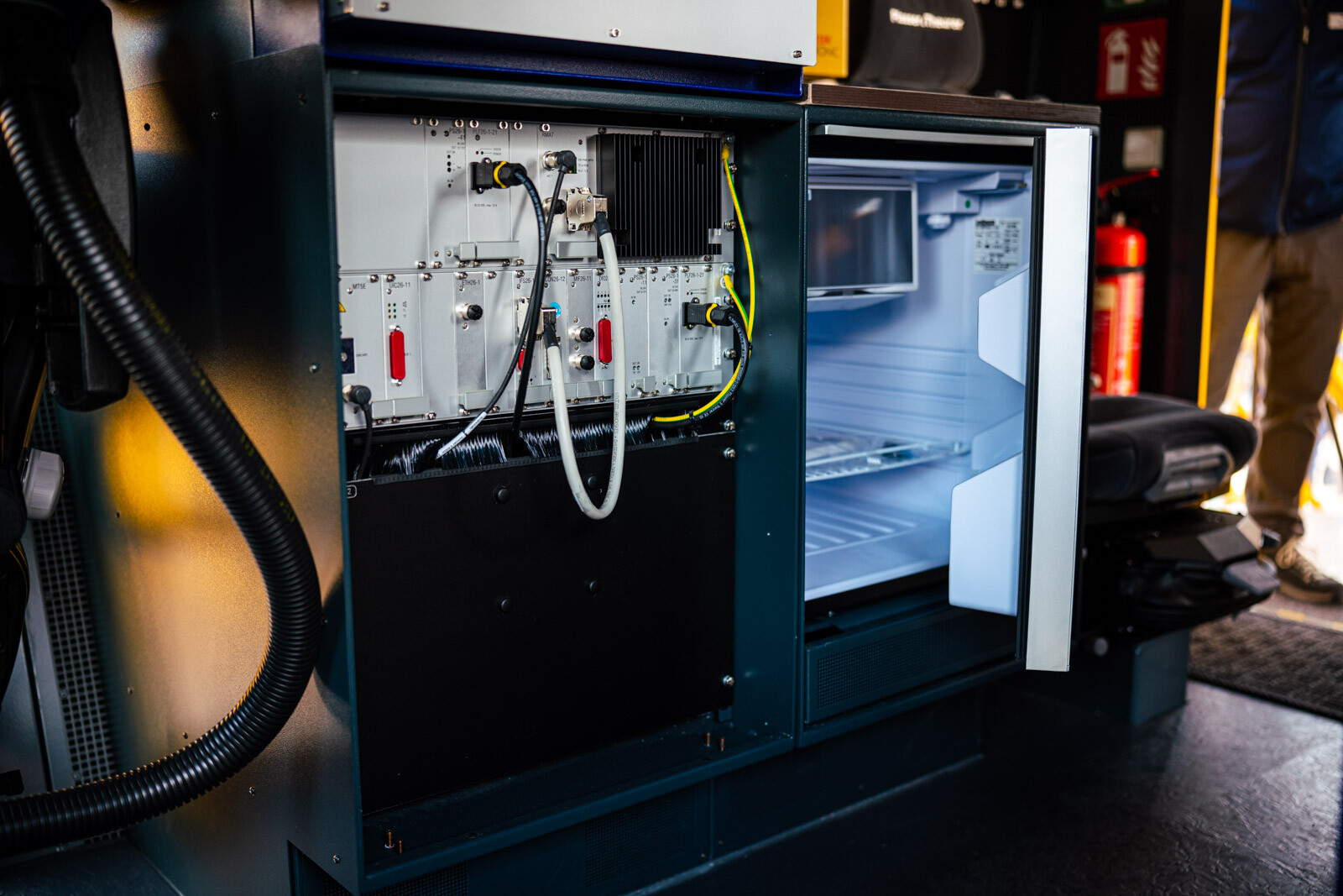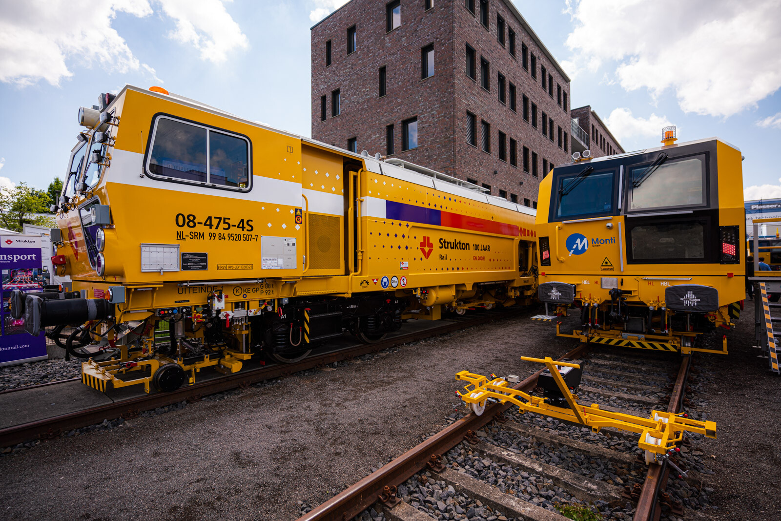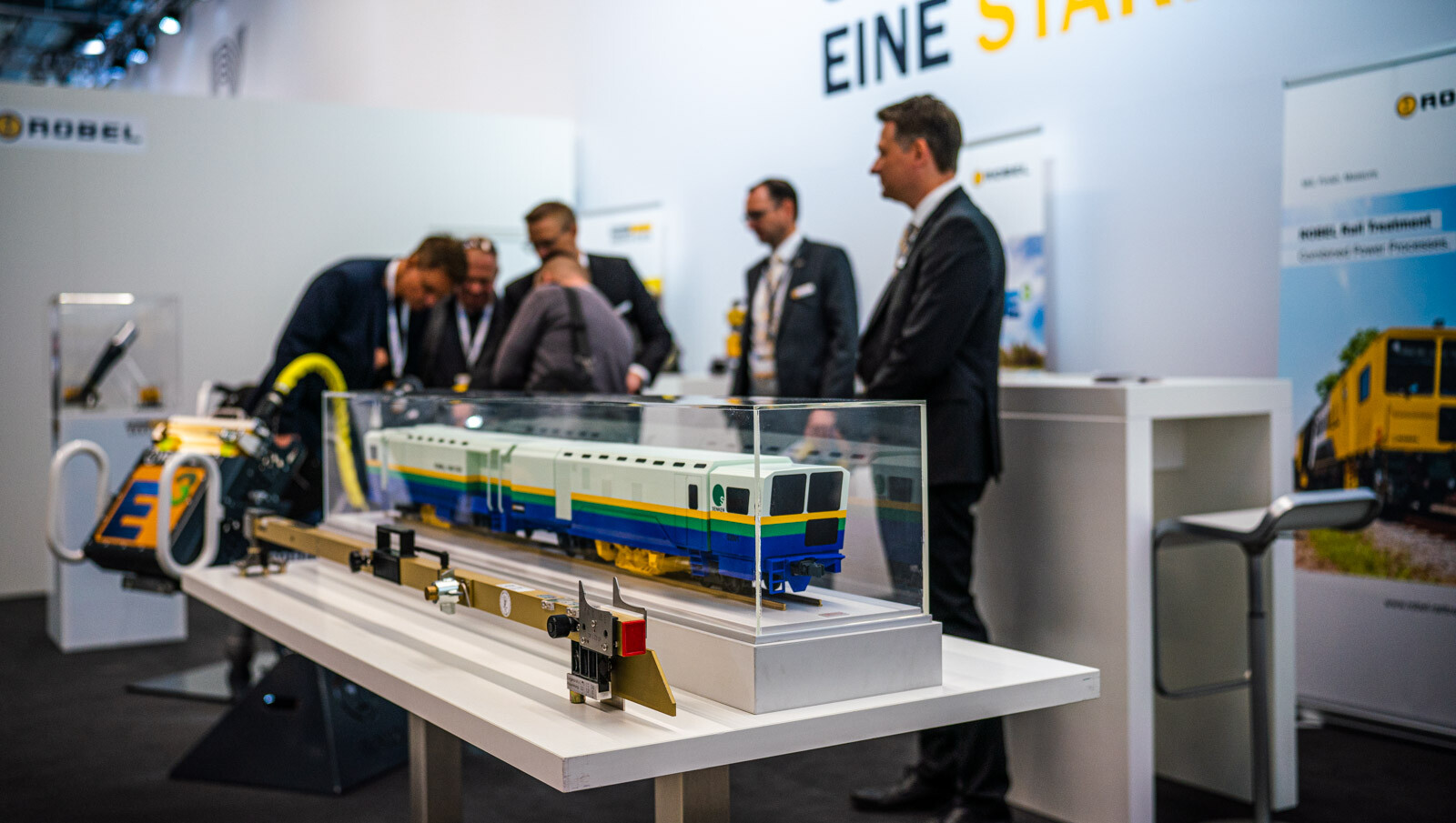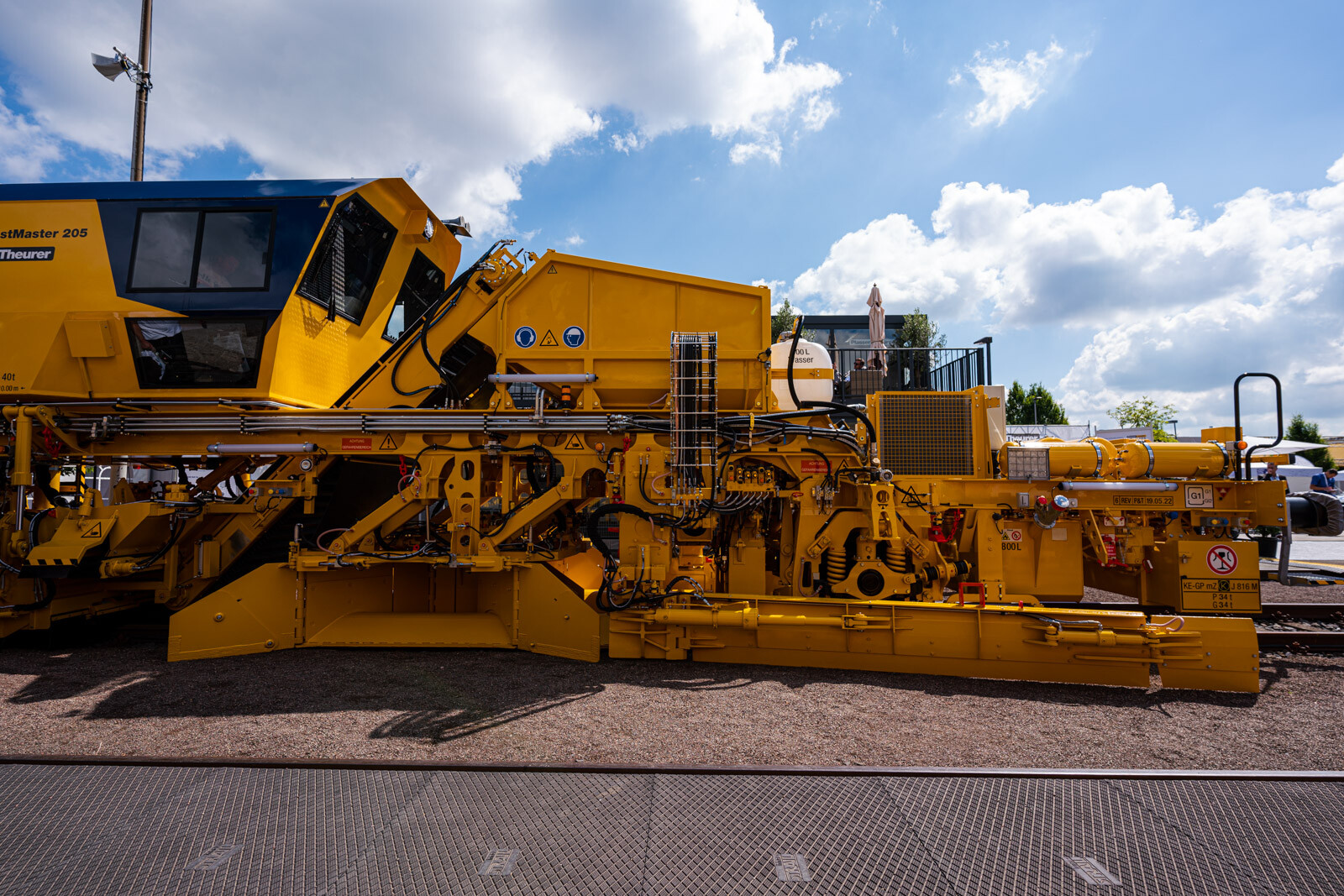A külső vágányokon pedig a kiállítók közül a legnagyobb flottával: 19 óriás vasúti karbantartógéppel vonult fel a cég. Közöttük egy több mint 100 méter hosszú, a vasútkarbantartás (és akár vasútépítés) minden funkciójára alkalmas moduláris szerelvénnyel demonstrálta kapacitásait a vasúti seregszemlén az osztrák konszern.