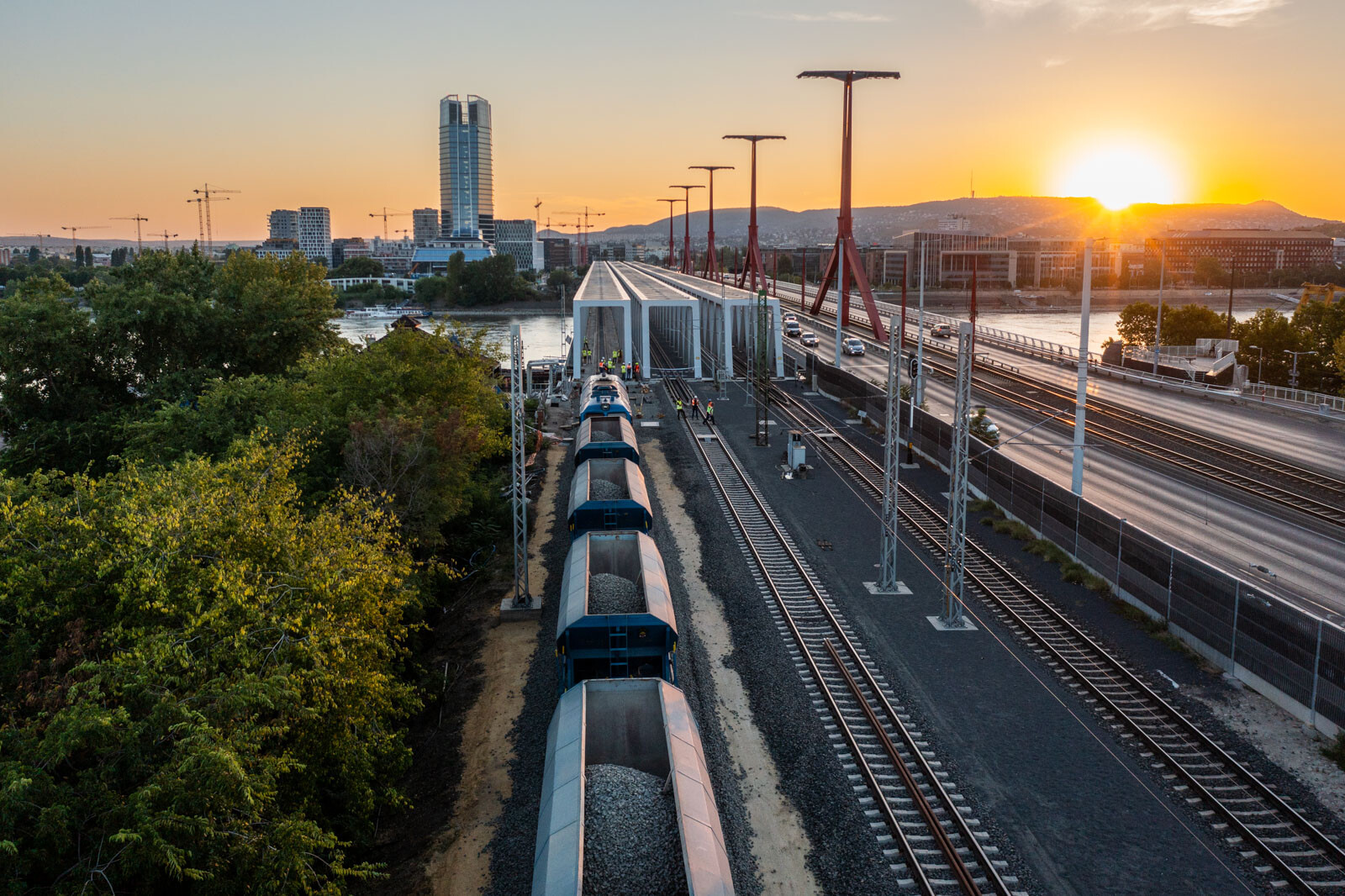 Megtartották a harmadik hídelem statikus próbaterhelését Budapest újjáépülő Déli összekötő vasúti hídján. Ezt a lépést az tette lehetővé, hogy korábban az utolsó hídelem is helyére került, így az 510 méter hosszúságú híd szerkezetileg elkészült, majd az ilyenkor szokásos hordógurítást is megtartották a hídon.