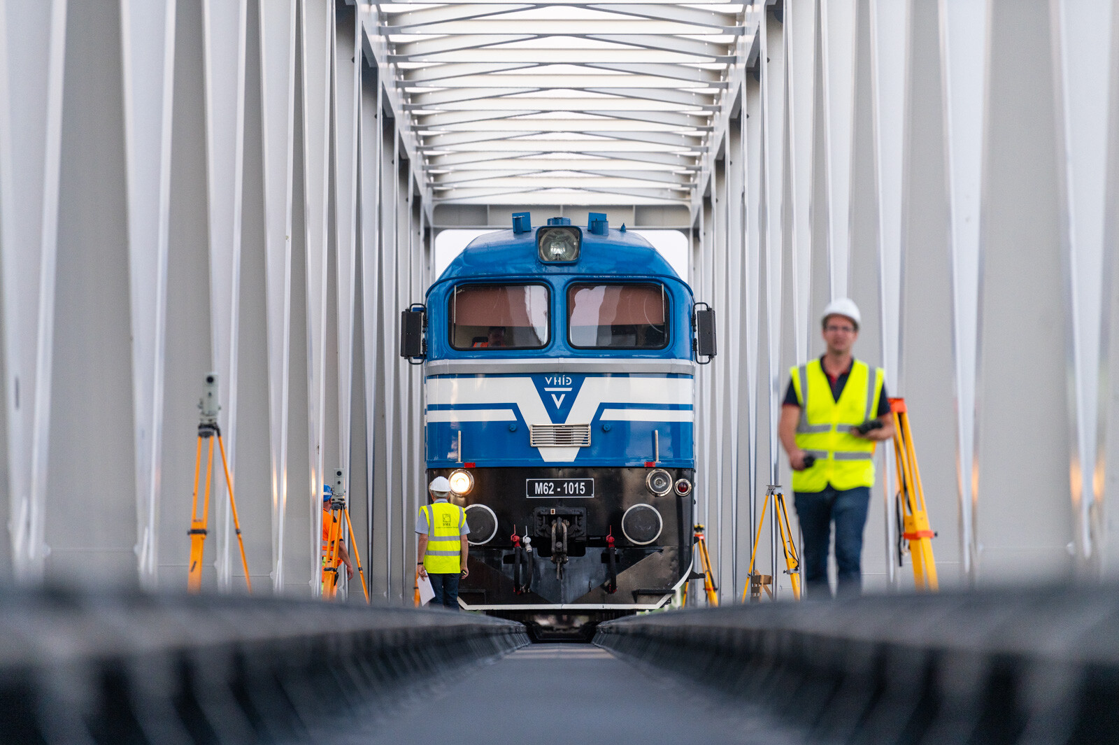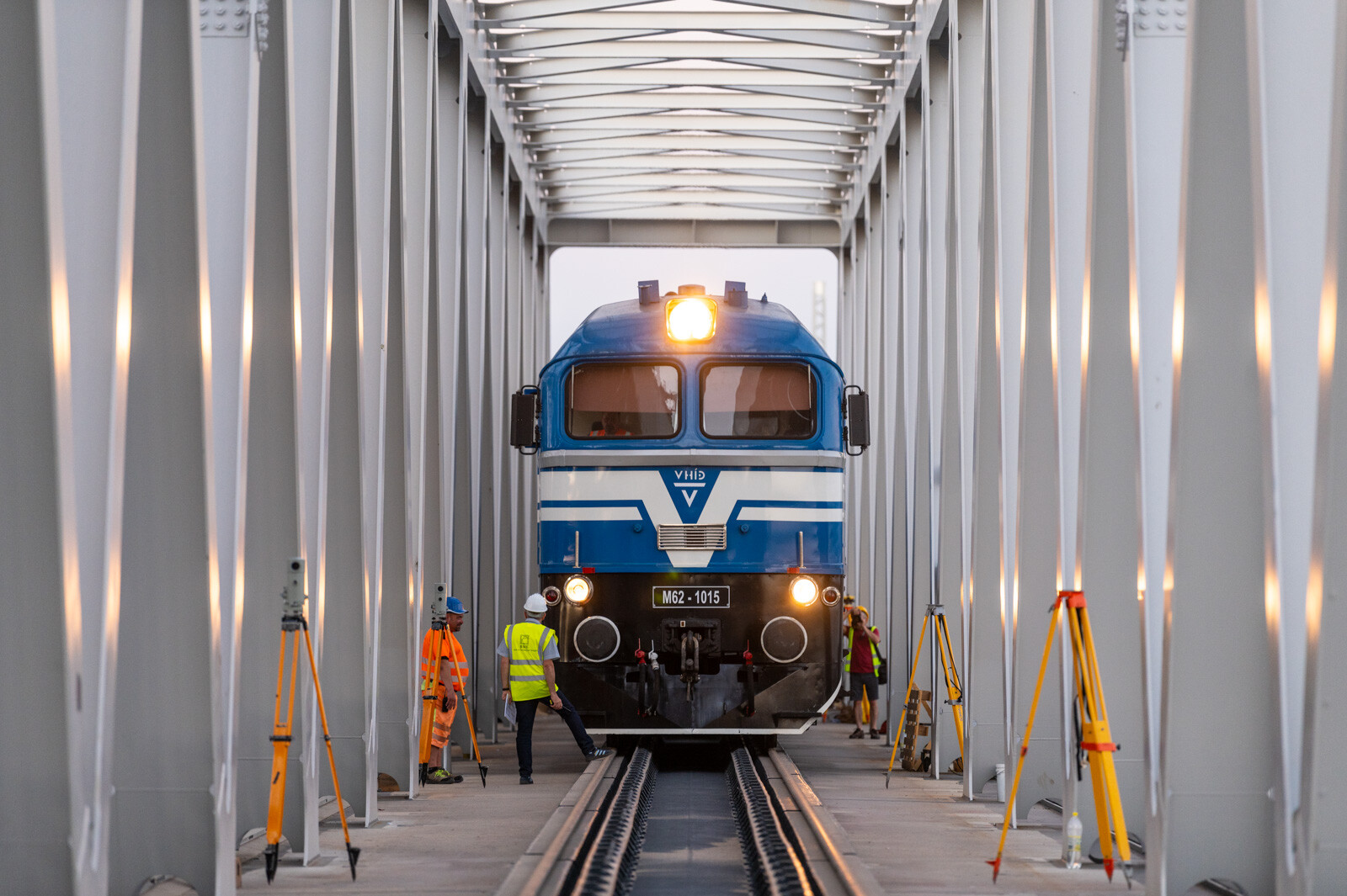 Mozdonnyal és 14 darab, zúzottkővel megpakolt vagonnal ellenőrizték a Déli összekötő vasúti híd utolsó, harmadik hídelemének teherbírását.