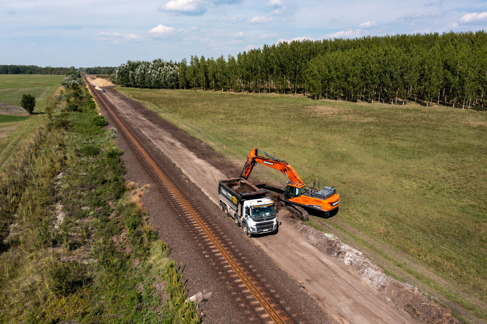 Gyorsabb fázisba léptek az egy éve elkezdett munkálatok a Budapest és Kelebia közötti vasútvonalon. A Budapest − Belgrád korszerűsítési és kapacitásbővítő beruházás teljes magyarországi szakaszának fővállalkozója az RM International Zrt.-t is magában foglaló három tagból álló konzorcium, amelynek megbízásából dolgozik a V-Híd Zrt. alvállalkozóként. Lapunk már többször is írt a beruházásról, nemrég arról számoltunk be, hogy a kiskőrösi vasútállomáson elkezdődött a vágánystabilizáló nagygépes munkavégzés.