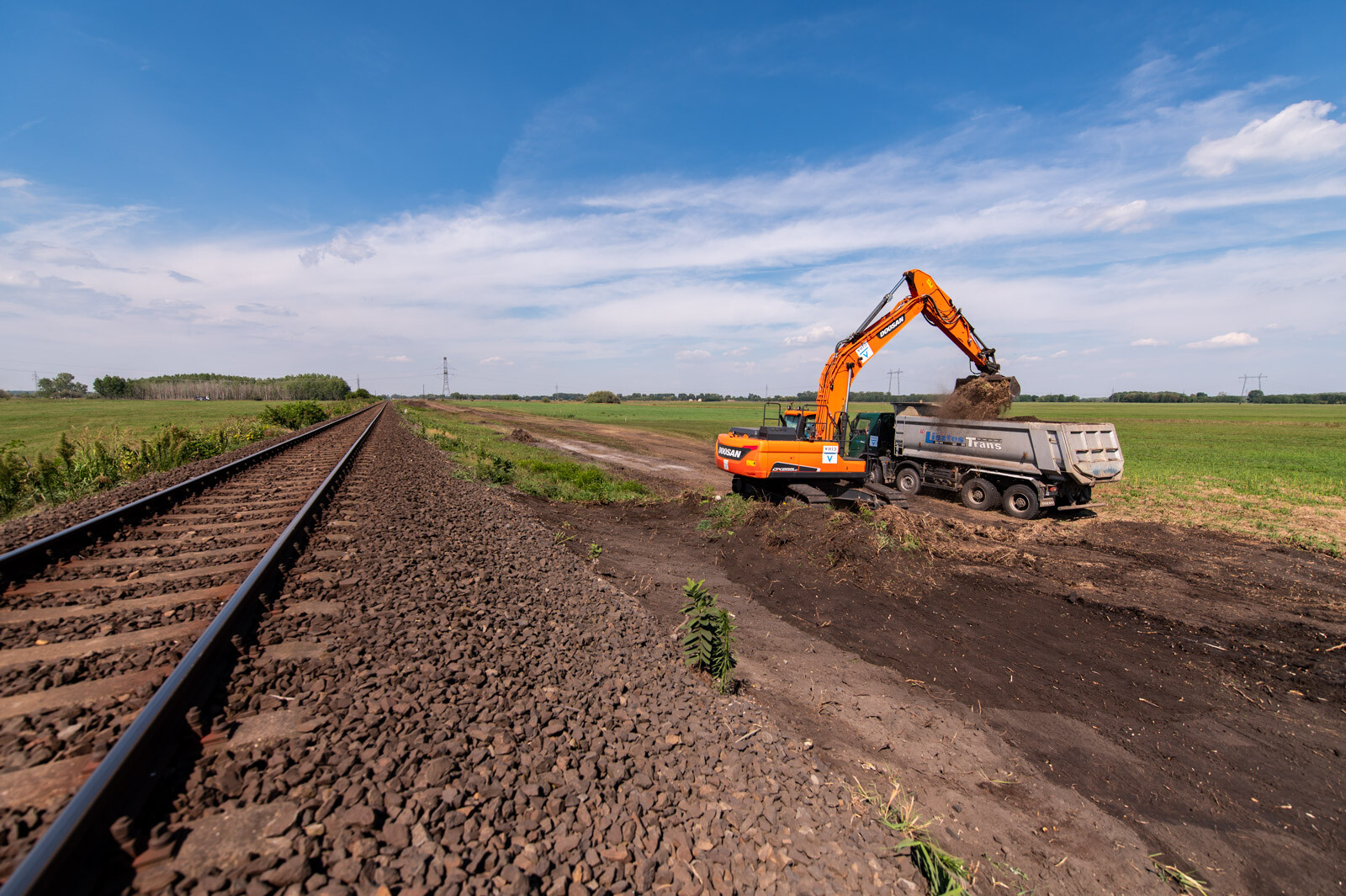 Lapunk információi szerint szeptember 1-jén a Kiskunhalas − Kisszállás szakaszon megkezdődött az új nyomvonal földmunkája a V-Híd Zrt. tulajdonában lévő gépekkel és eszközökkel. Elrajtolnak a projekthez kapcsolódó műtárgyépítések, a felsővezetéki oszlopok felállítása, majd a vasúti pálya építése is az SMD 80 nagygéppel, az anyagok szállítása folyamatos. Kiskunhalason ideiglenes biztosítóberendezést is telepítenek: ez több ütemben zajlik majd le.