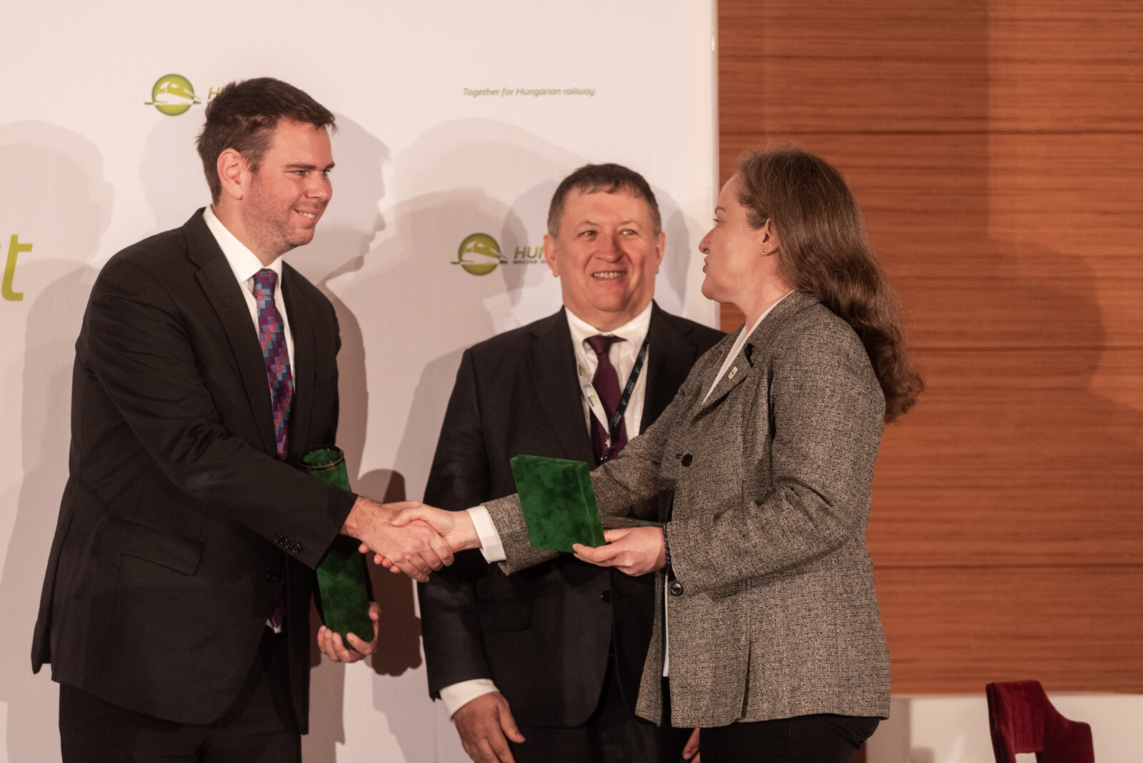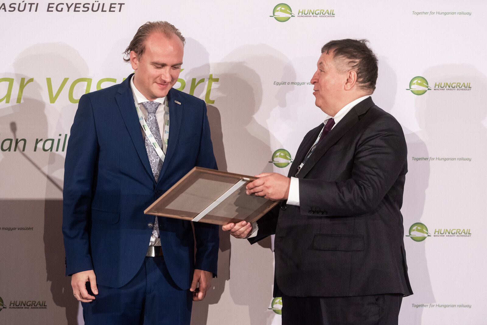 A rendezvény folytatásában átadták a HUNGRAIL tagságról szóló oklevelet Balázs Gáspárnak, az Alstom Transport Hungary Zrt. vezérigazgatójának és Vanya Lászlónak, a V-Híd Cargo Zrt. vezérigazgatójának.