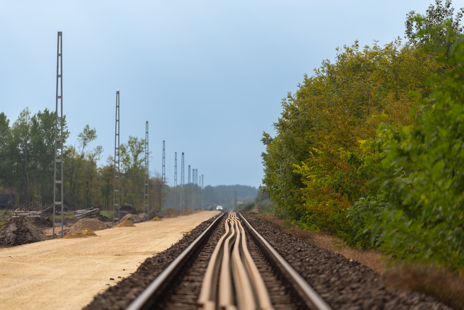 Csengődtől az országhatárig 2600 új, horganyzott acéloszlopot állítanak fel, melyekre 175 kilométer hosszan épül ki a villamos vontatáshoz szükséges felsővezetéki hálózat. A munkához 17.000 köbméter betont használnak fel.