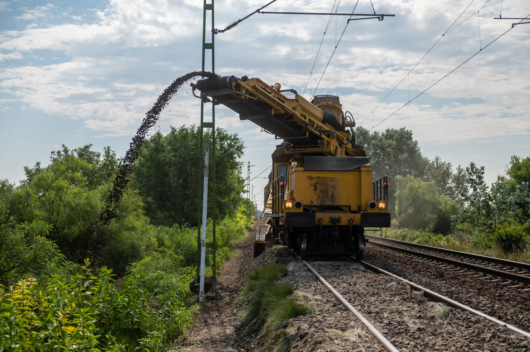 Ezt a rostaaljat megtisztítva később padkamegerősítésre használják. Ám ha a megrendelő úgy kéri, esetenként az erre speciálisan fenntartott MFS kocsival elszállítják a kiválogatott rostaljat, szennyeződést – tette hozzá Patyi Gyula.