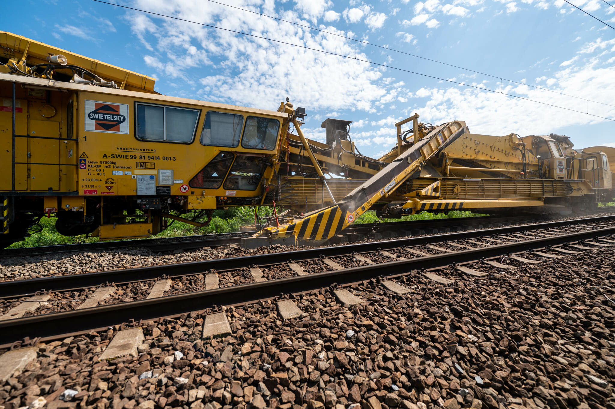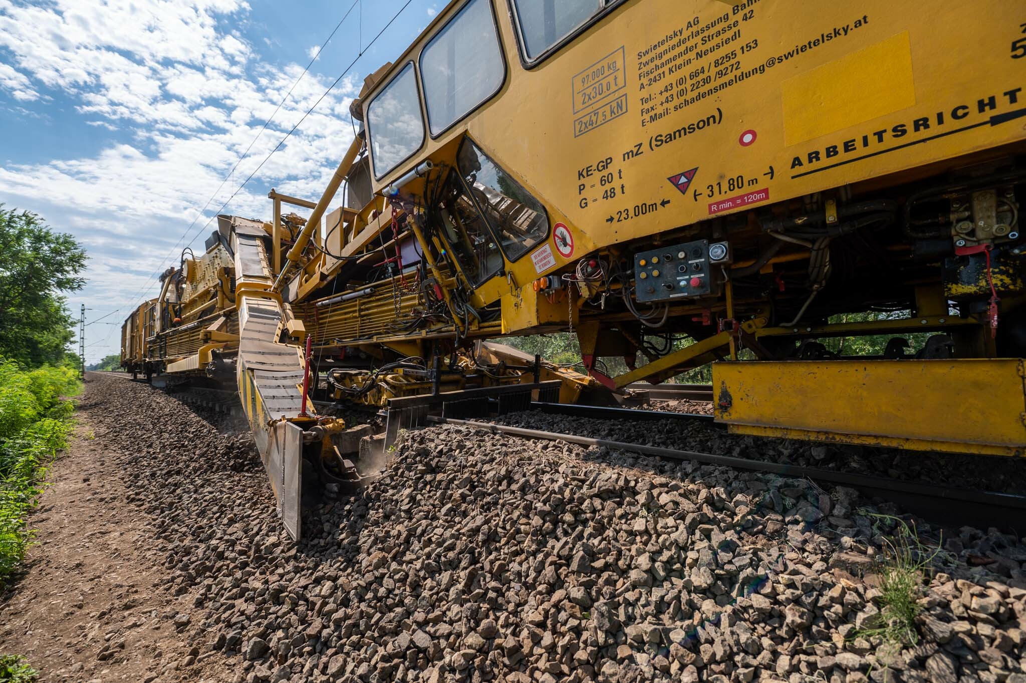 A szakaszon a SWIETELSKY Vasúttechnika gépparkjának meghatározó tagja, az RM 80 UHR típusú ágyazatrostáló gép dolgozott.