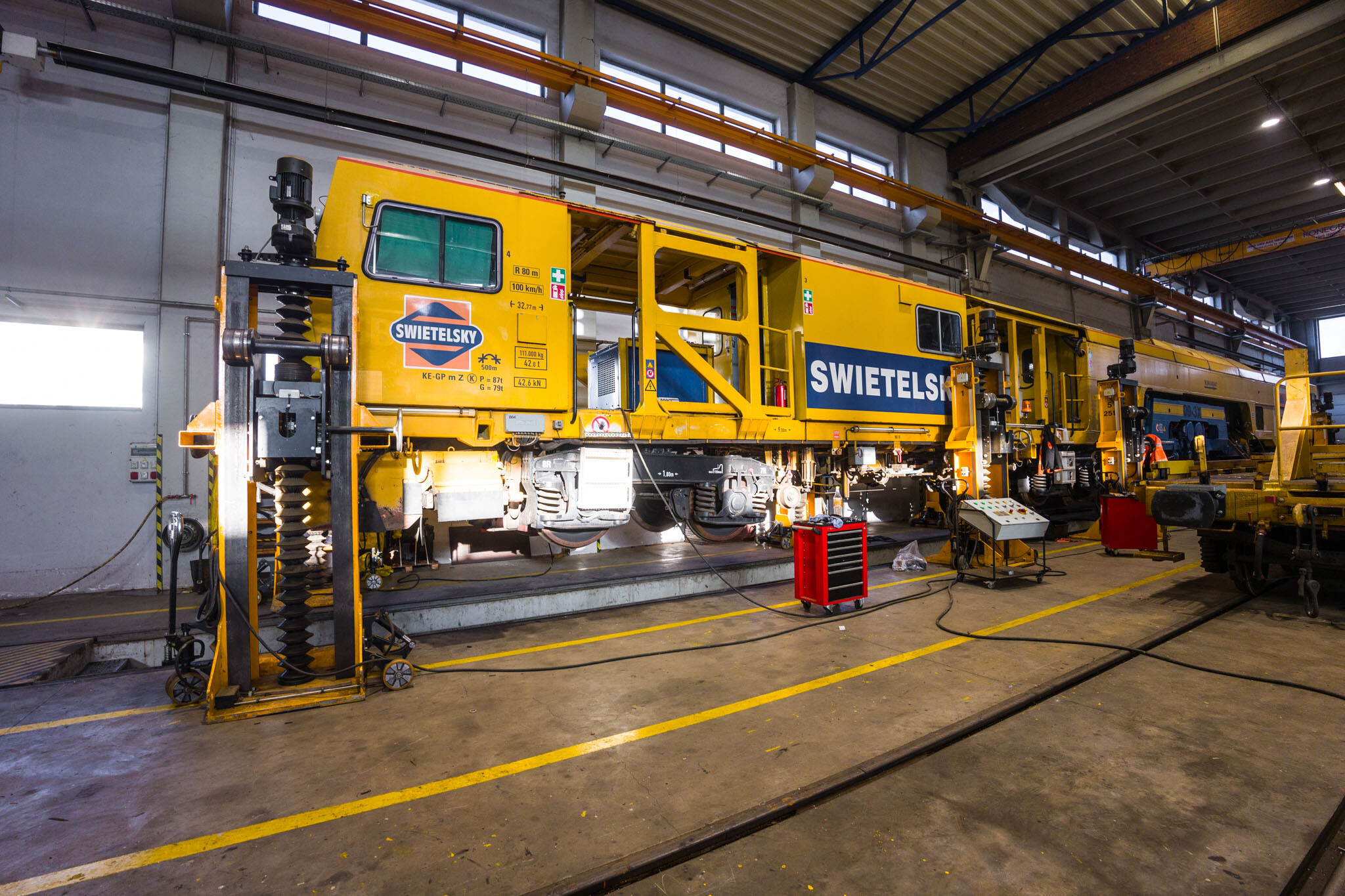 De nem minden nagygép karbantartása történik Celldömölkön. Az anyavállalattal történő jó együttműködést jelzi az is, hogy az SMD-80 átépítő vonat felkészítő javítását a magyar kollégák a fischamendi műhelyben végzik. Mint azt korábban részletes cikkben bemutattuk: a SWIETELSKY AG Bahnbau ausztriai, mintegy 24 hektárnyi területen fekvő telephelyén több száz, a legmodernebbek közé tartozó vasúti nagygép javítása, karbantartása zajlik.