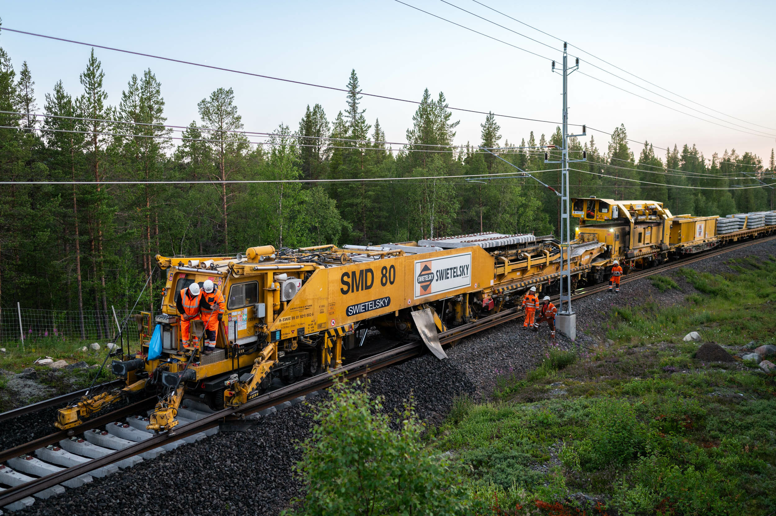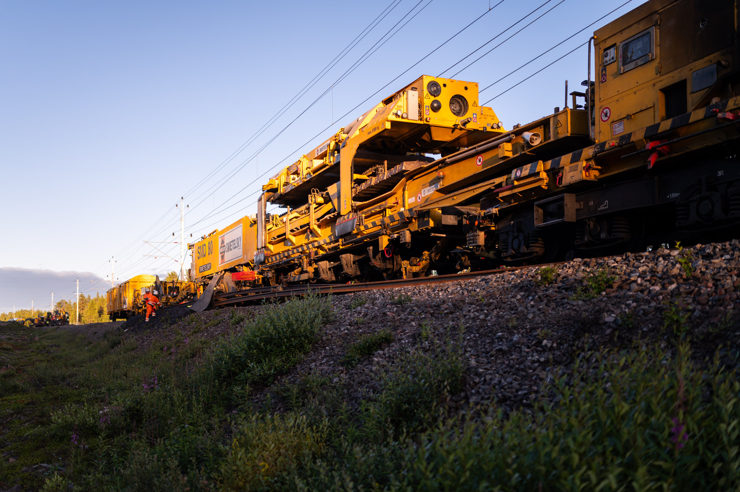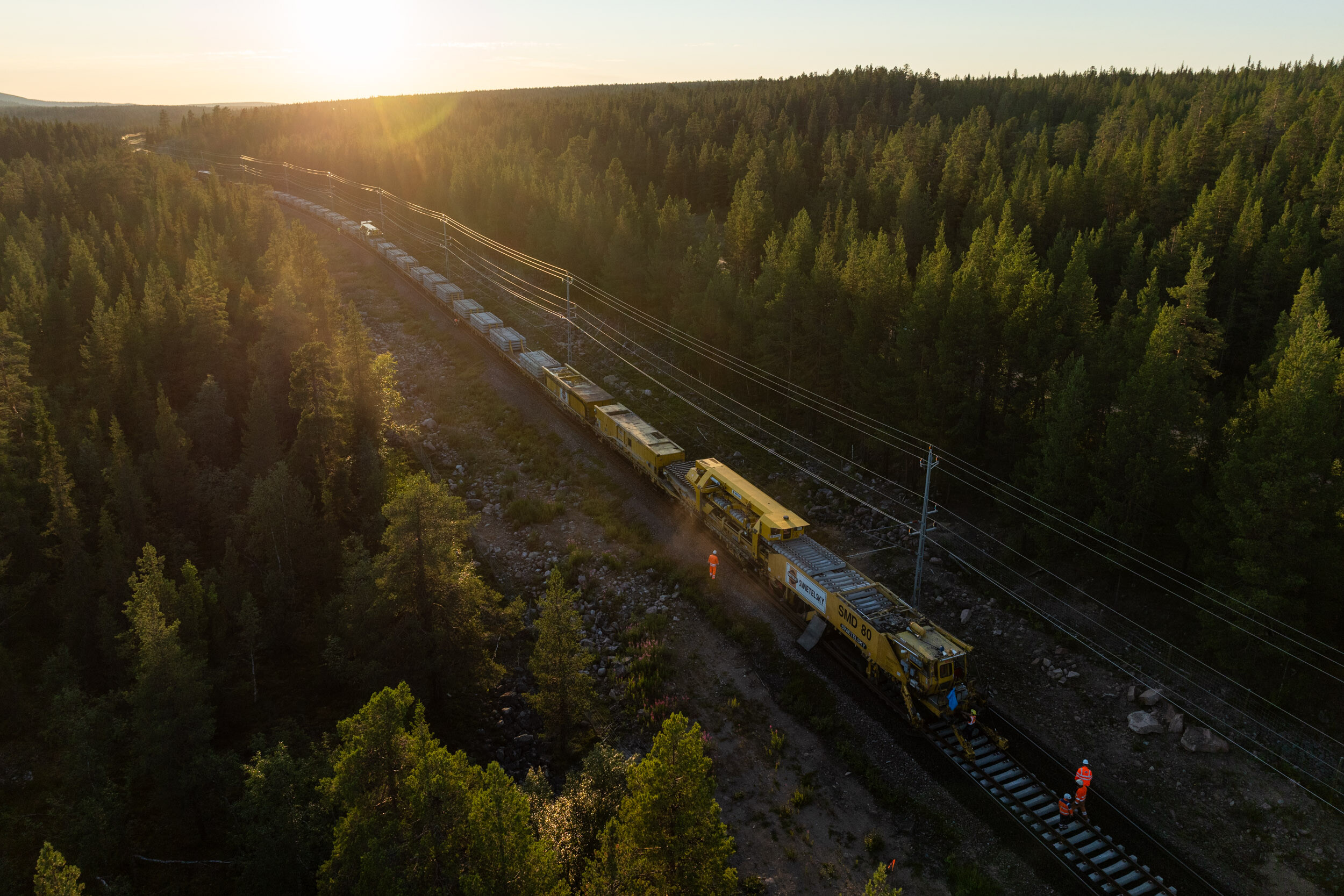 A svédországi Gällivare várost érintő, valamivel több, mint 30 kilométernyi vasúti szakasz átépítését és ágyazatrostálását három ütemben végezték el a szakemberek 2024 júniusa és augusztusa között, éjszakai vágányzárban.