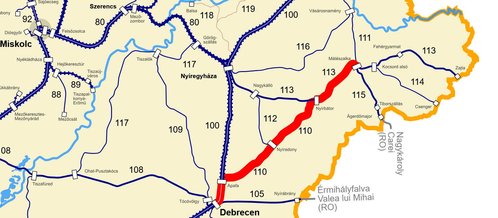a fejlesztés mintegy hetven kilométer hosszban érinti a vasúti pályát Debrecen-Apafától a szatmári városig.