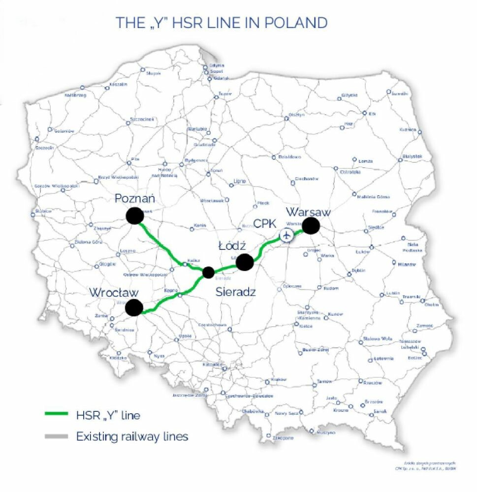 Lengyelország első nagysebességű vasútvonalát „Y” jelű rendszerként tervezik. Ez azt jelenti, hogy a vonal Łódź után kettéágazik, egyik ága Wrocław, a másik Poznań felé vezet. A tervek szerint a vonalon évente akár 21 millió utast szállíthatnak.