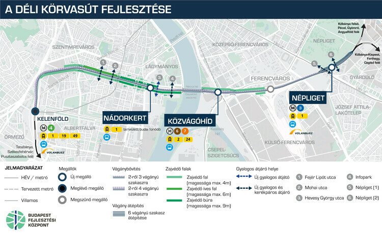 Ahogy azt korábban is jeleztük, a Ferencvárosi és a Kelenföldi pályaudvart összekötő Déli körvasút három vágányosra bővítése során 6 kilométer új vágányt építenek és 7,7 kilométert építenek át. A meglévő kétvágányos műtárgyakat kiszélesítik három, illetve néhány helyen négyvágányosra. Pesten kettő, míg Budán öt helyszínen épülnek és újulnak meg a vasúti hidak. Mindezek mellett két új vasúti megálló épül: Pesten a Közvágóhíd, Budán a Nádorkert megállóhely.