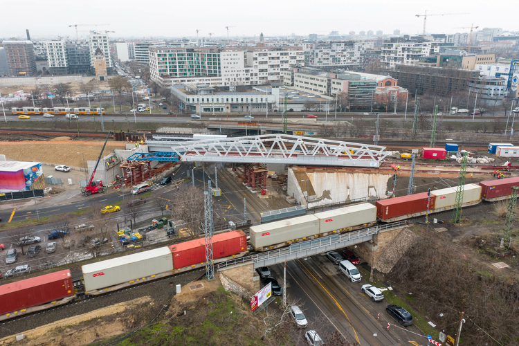 A részprojekt egy korábbi lépéseként tavaly augusztusban kezdődött el az új vasúti híd acélszerkezeti elemeinek a helyszínre szállítása. Az új átjáró a korábbi kétvágányú hidat kiváltva három hídból tevődik majd össze - amelyek összesen négy vágányt biztosítanak majd - , közülük most a G1 acélhíd betolása indult el, és egy napon belül be is fejeződik.