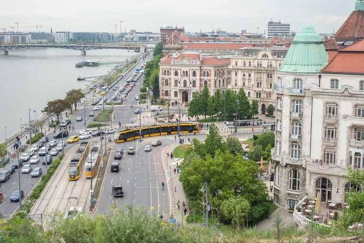 Az új, nagyrészt fűvel borított villamosvonal a Szent Gellért tértől indul és a Duna partján halad a BME és az ELTE mellett.