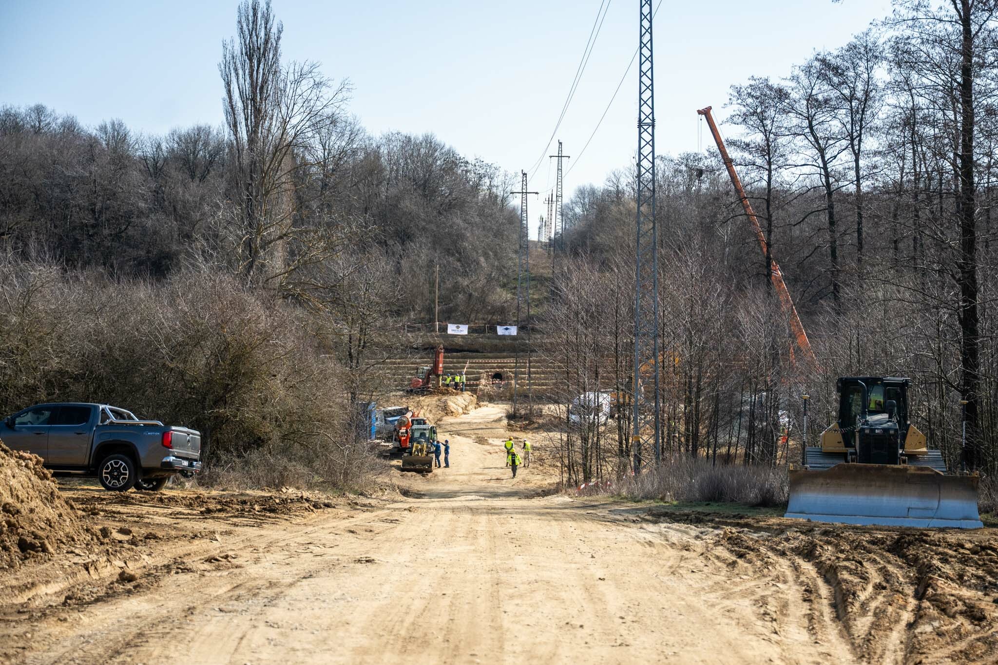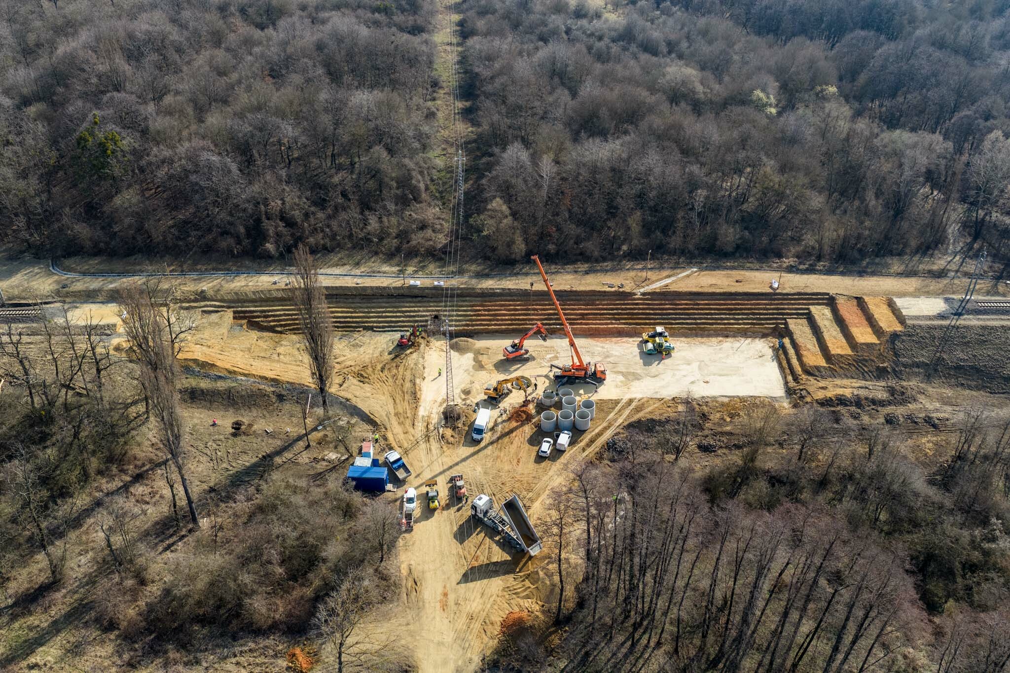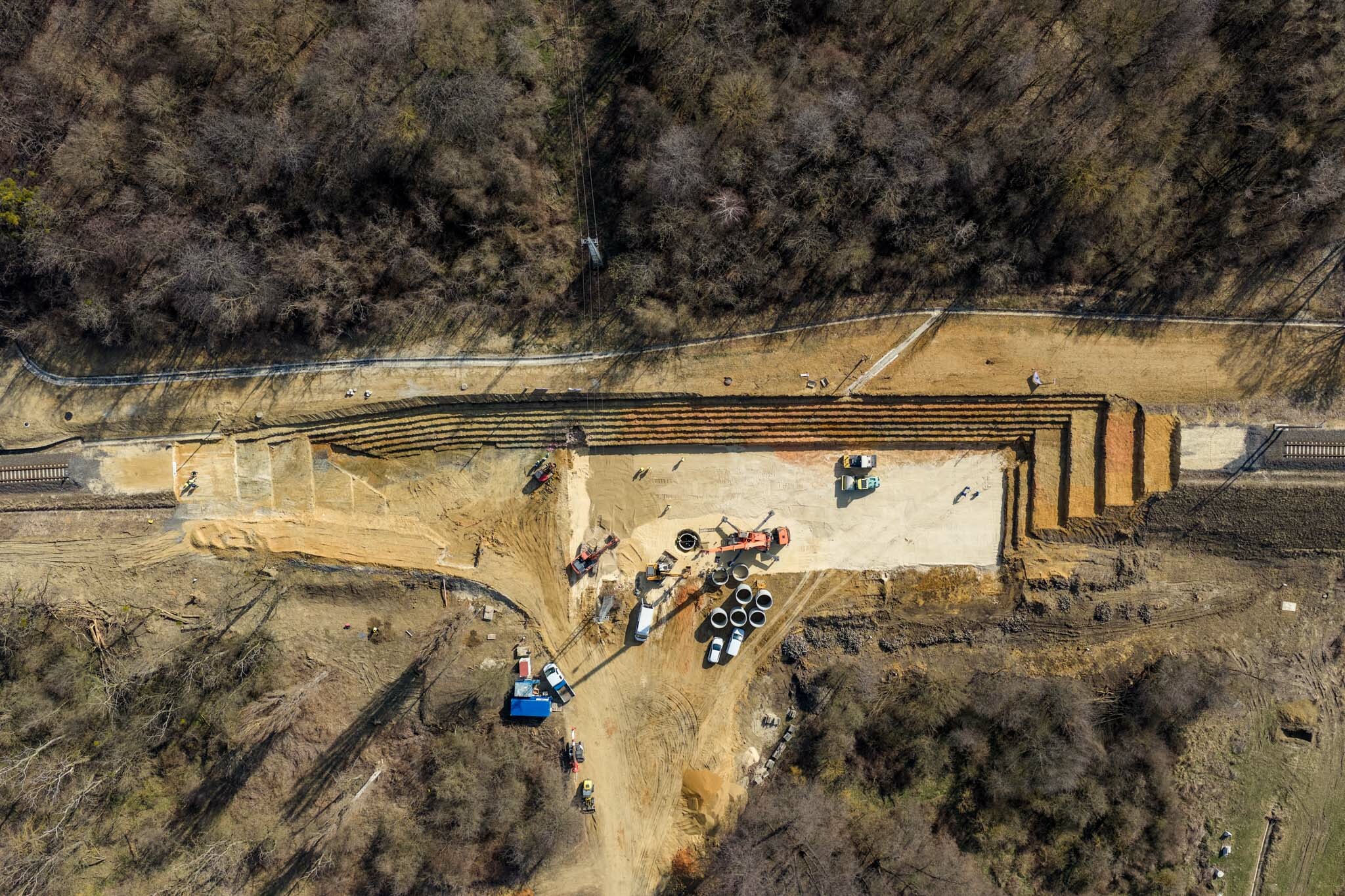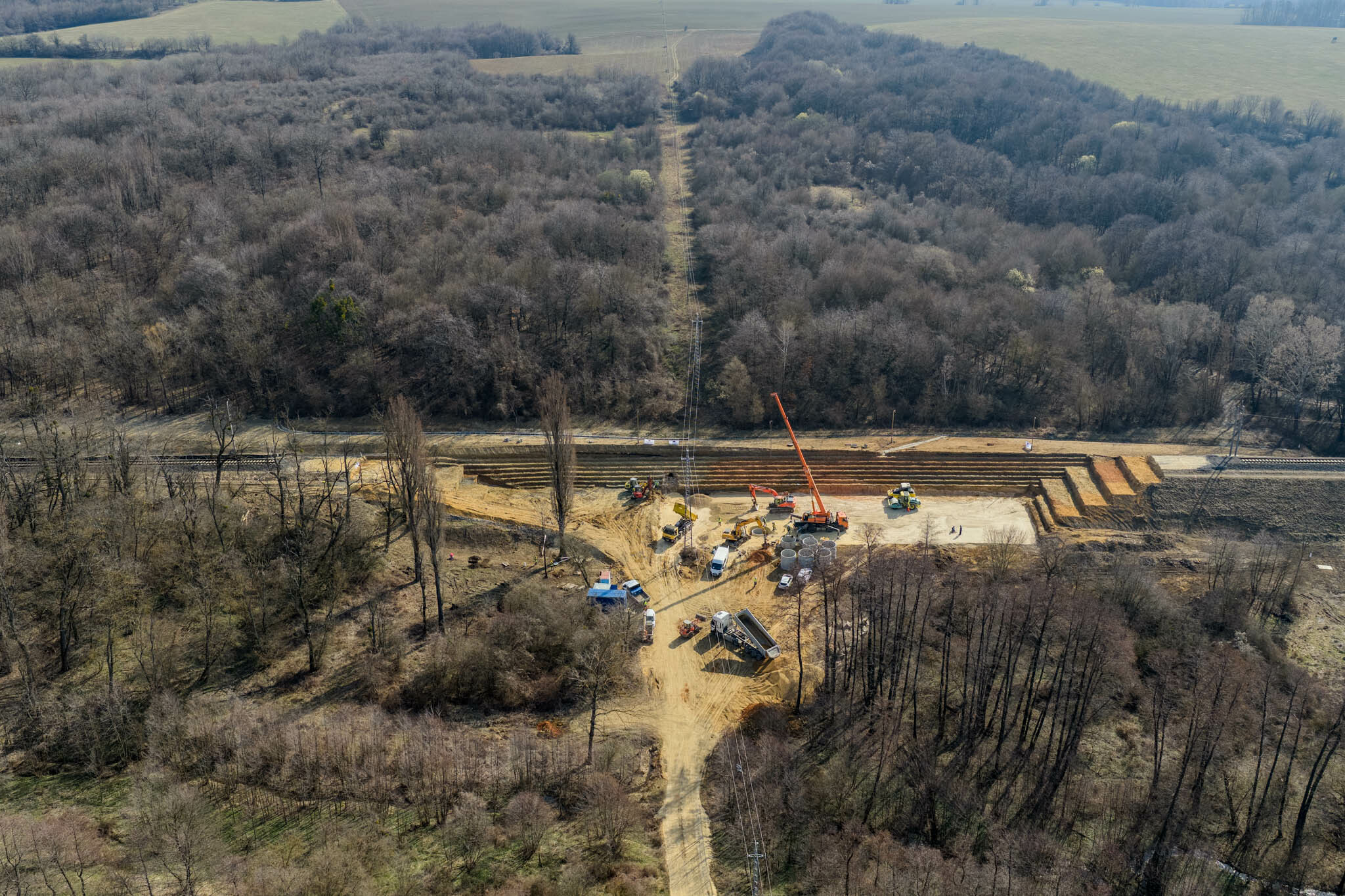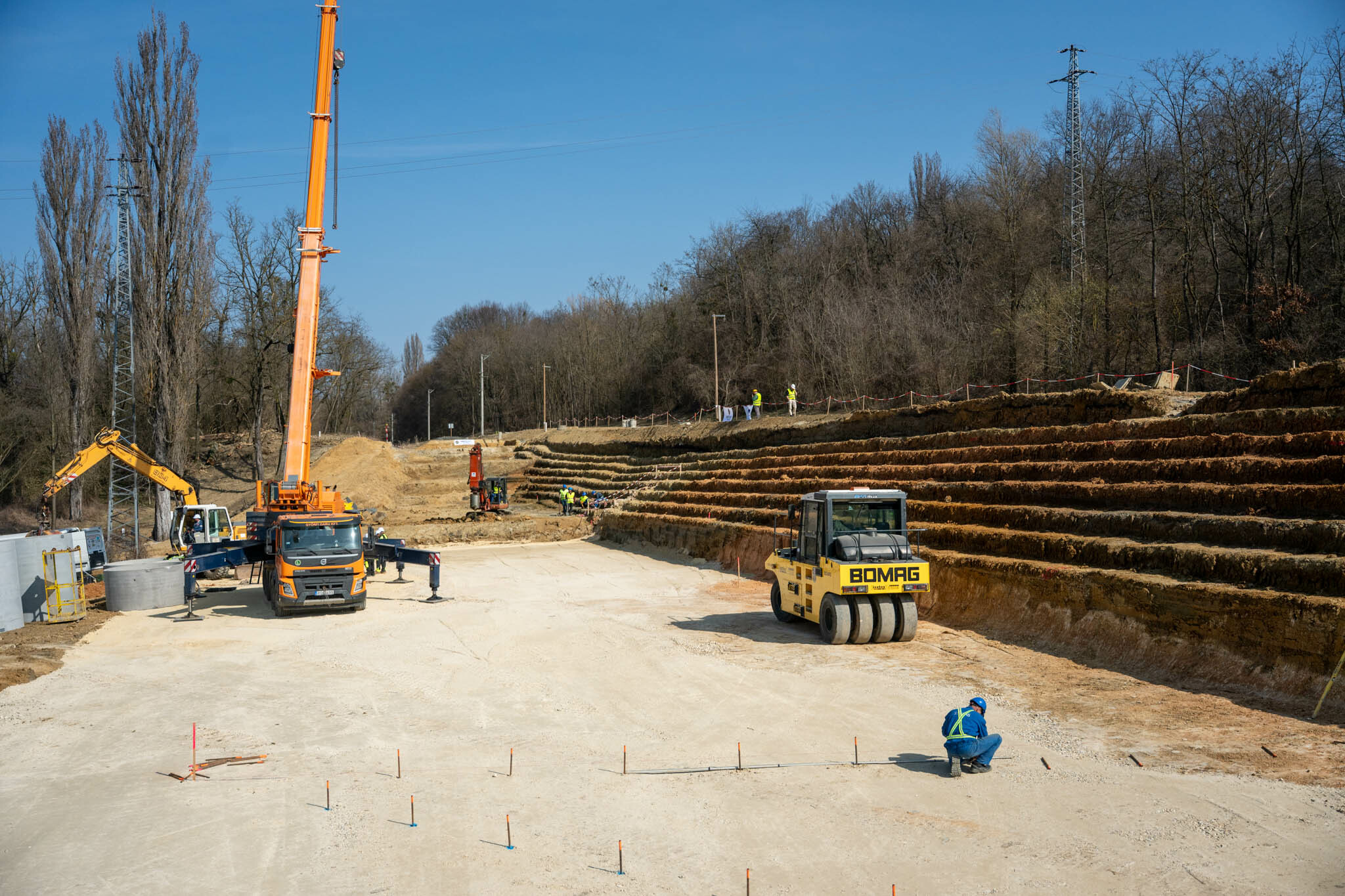 A lapunkhoz eljuttatott összegzés szerint a kivitelezés az előkészítés után a vasúti kábelek kiváltásával és új nyomvonalra helyezésével haladt előre. A meglévő felsővezetéki oszlopok bontása és a kábelek áthelyezése után, február végén kezdődött meg a töltés elbontása, lépcsőzetes kialakítással.