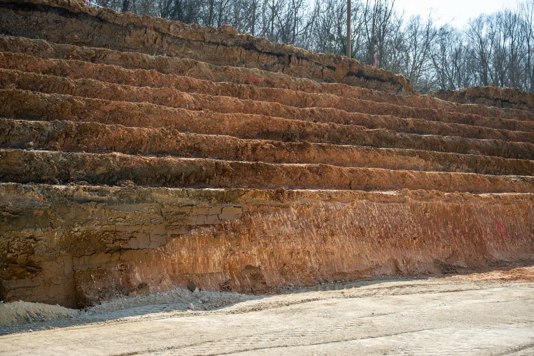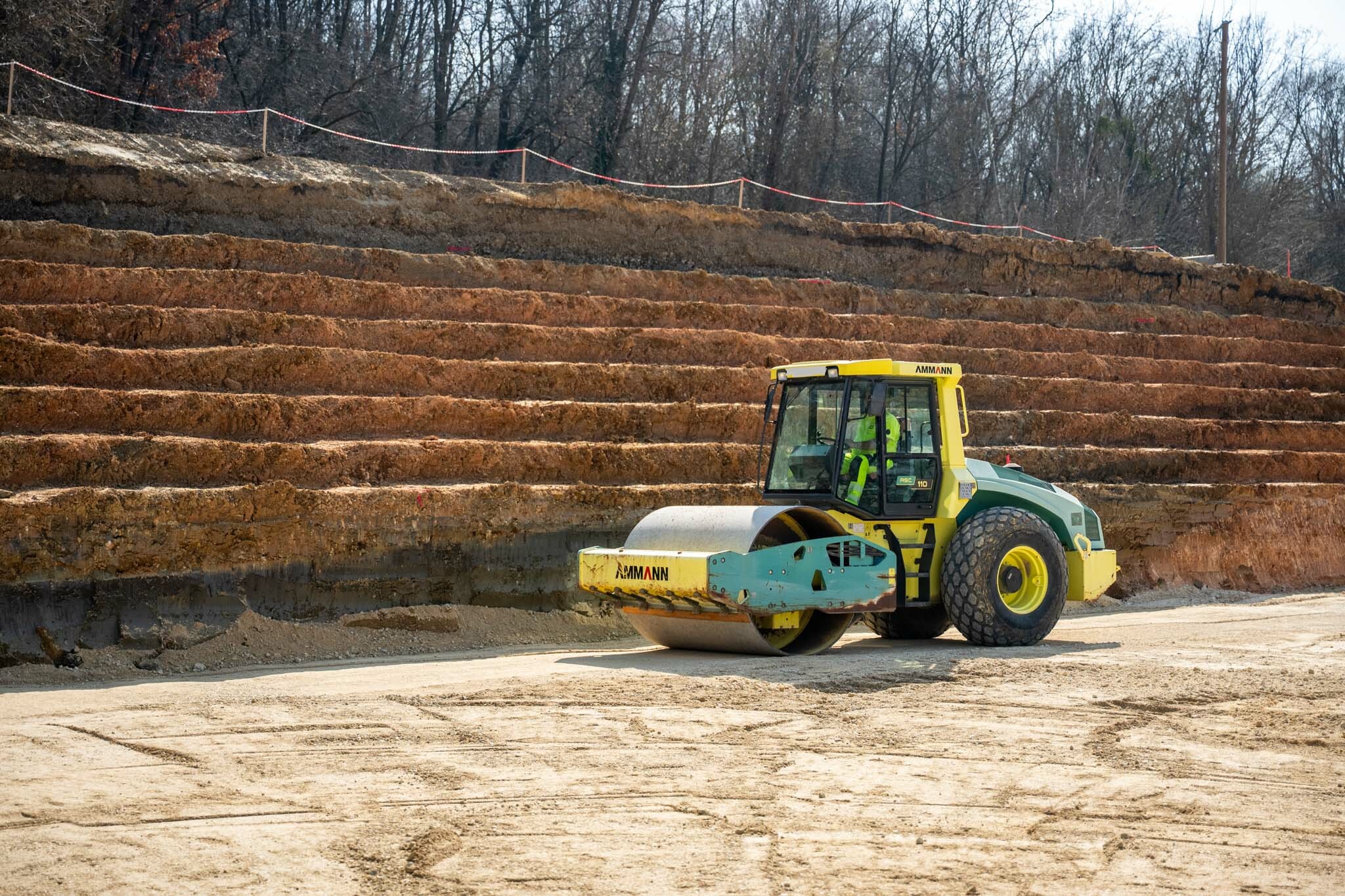 A víztelenítő rendszer elkészülte után kezdődhet meg a 8–9 méter magas töltés felépítése, amelyet rétegenként, alapos tömörítéssel alakítanak ki.