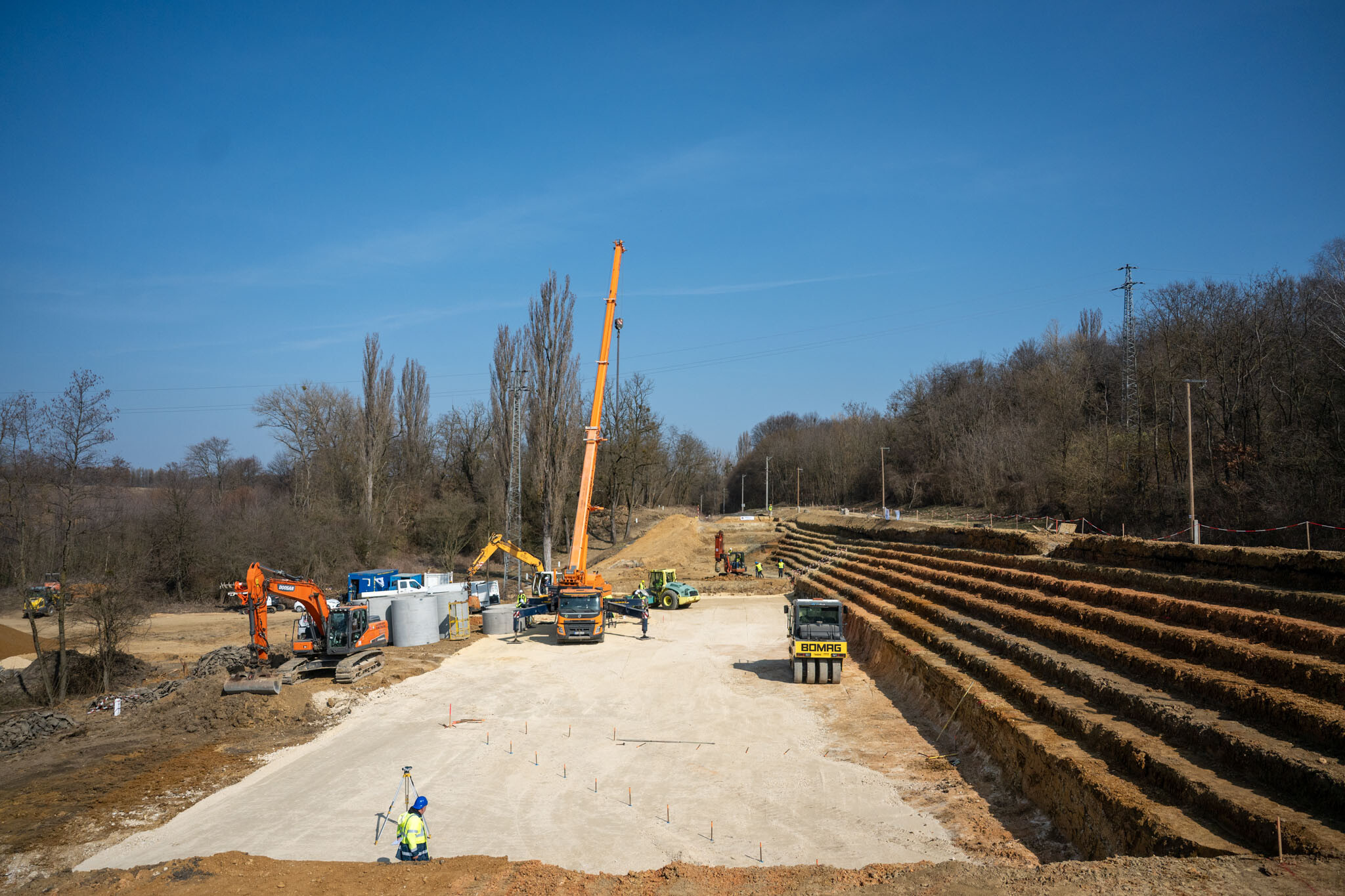A kedvező időjárásnak és a jól szervezett kivitelezésnek köszönhetően a nagymennyiségű földmunka mindössze 10 nap alatt lezajlott. Ez körülbelül 15 ezer köbméter föld megmozgatását jelentette.