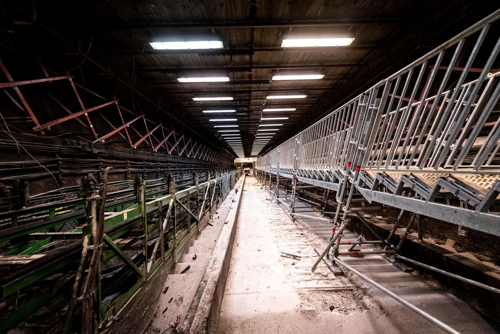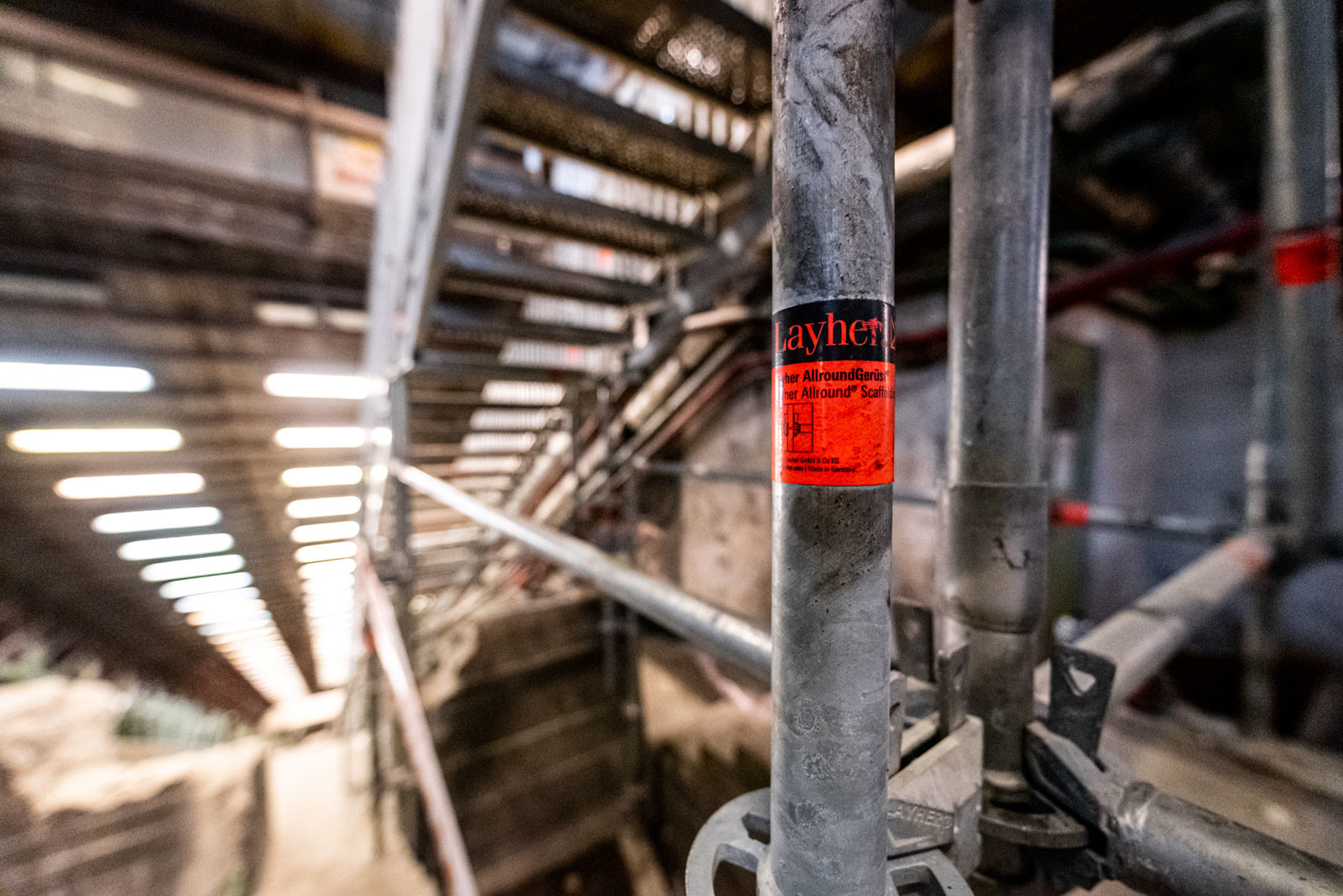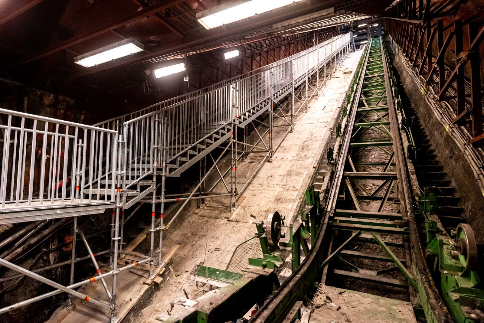 A projekt során a Layher 750-es önálló lépcsőszerkezet került beépítésre a 30 fokos lejtésű alagútba, amely 109 cm széles, magassága pedig megállónként változó, átlagosan körülbelül 15-20 méter.