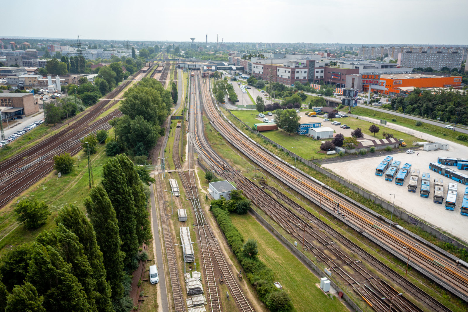 Az elektronikai és gépészeti eszközöktől kezdve egészen a kőburkolatig minden itt érkezik és távozik: a nagy számú vágányból itt egy a SWIETELSKY Építő Kft. dedikált használatára van bocsájtva: ez a hosszú 30-as vágány.