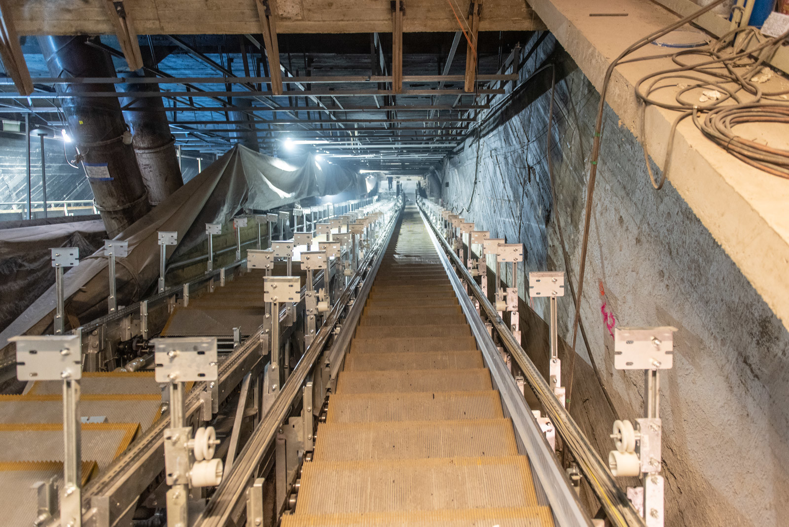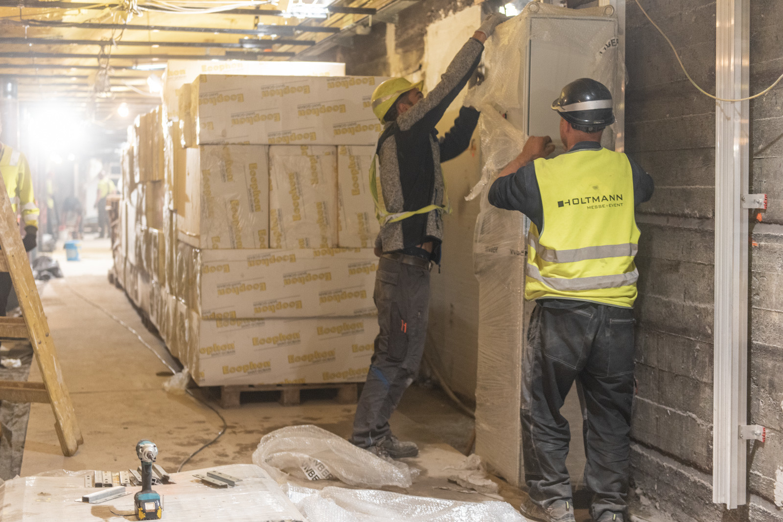 Mindeközben a mozgólépcső géptérben is folytatódtak a gépészeti munkák és az elektromos nyomvonal építések. Beépítették a födém alátámasztó acélgerendákat és befejeződött a gépalapok komplettírozása. A 77 négyzetméteres helyiségben hamarosan elkészül a csempeburkolatot is.