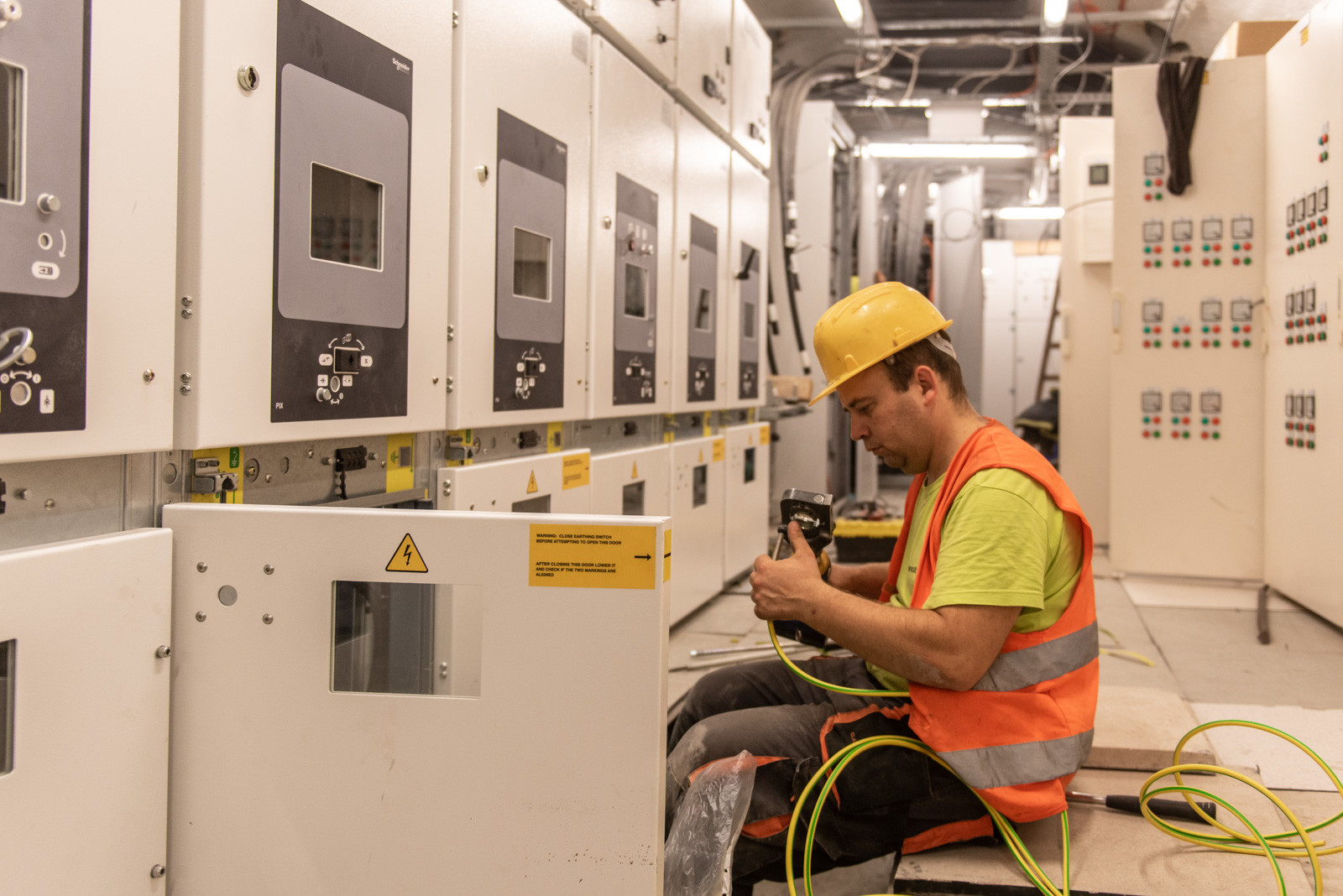 Az állomás szellőző- és folyadékhűtő berendezéseit már beépítették, a peronszinten még folyamatban van a légkezelők és a folyadékhűtők bekötése.