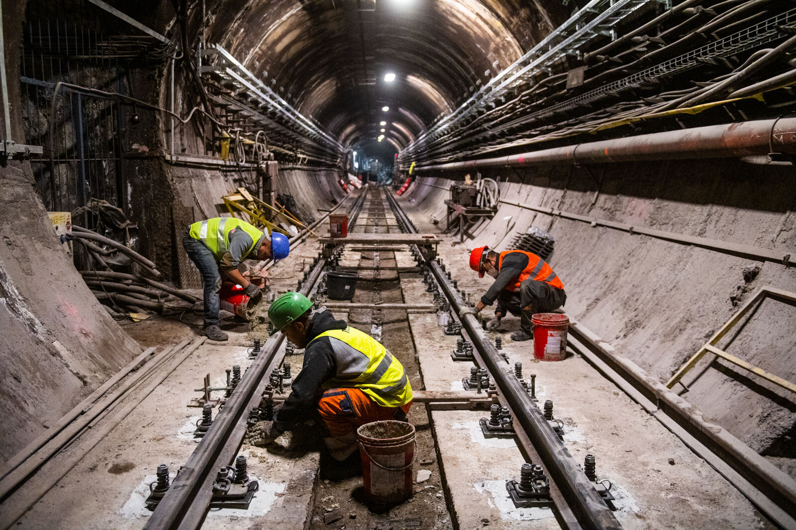 Tavasszal átadják az M3 középső szakaszának három állomását – a Semmelweis Klinikákat, a Corvin-negyedet és a Kálvin teret –, nem csoda tehát, hogy az elmúlt hónapban is nagy ütemben zajlottak a rekonstrukciós munkák. Ezeket fotósunk is megörökítette. A három állomás közül kettőn márciusban már a harmadik sín burkolatai is felkerültek a peronok hosszán, miután a Vasúttechnika szakemberei kialakították a vízelvezetést és megtörtént a pályabeton impregnálása.