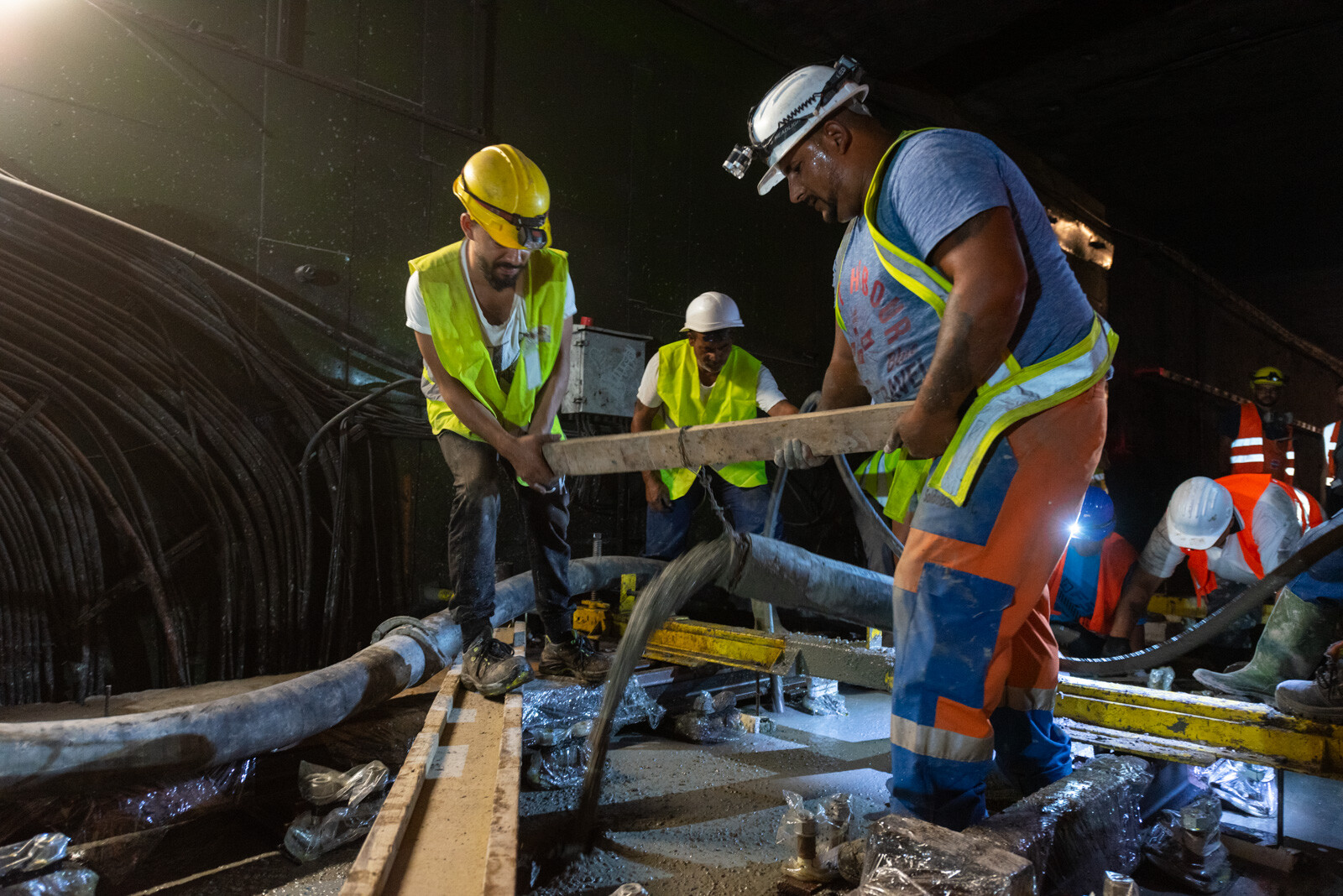 A nappali üzemidőben nem lehetséges a mixerbeton beszállítása az alagútba, hiszen egyes szakaszokon metróközlekedés van, ezért az anyagot a felszínről, esetenként 400-500 méter hosszú csőhálózaton keresztül juttatják be. Ehhez speciális dupla falú, magas kopásállóságú és teherbírású csövekre, valamint nagy teljesítményű betonpumpára van szükség.