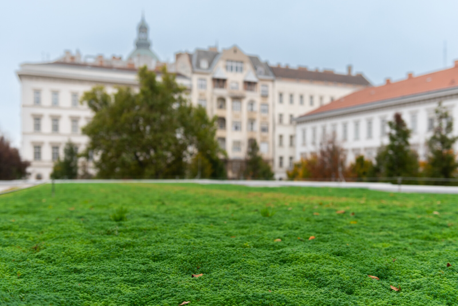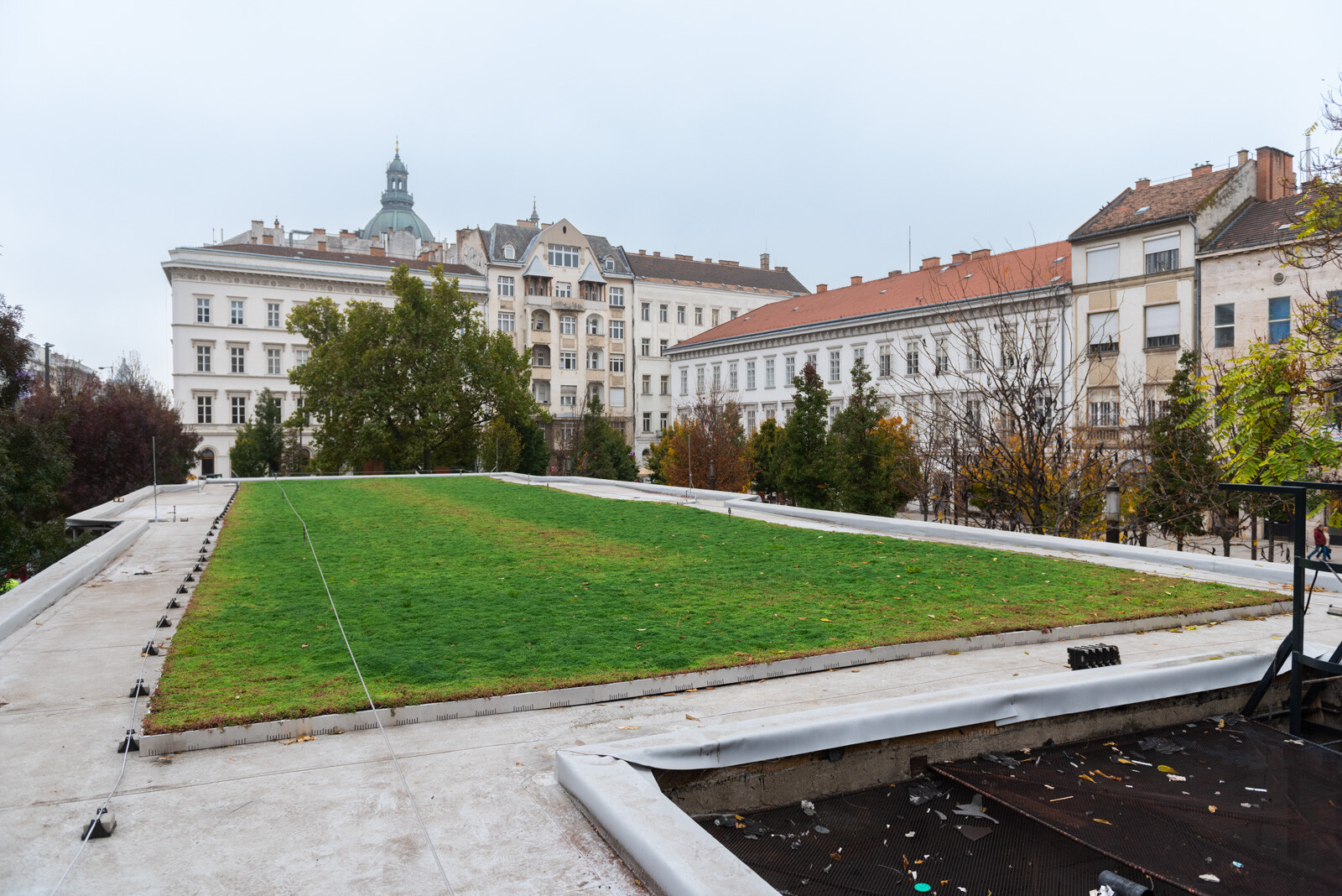 A felszíni épület gyors tempóban épül: készülnek az üvegfalak, és kialakítás alatt áll az állomási diszpécser helyiség. Az épület tetejére a zöldfelületek növelése érdekében az V. kerületi önkormányzat kérésére zöldtető került. Az extenzív zöldtetőt Magyarországon eddig még ritkán alkalmazott új technológiával, 10 centiméteres rétegrendben alakították ki. A felület karbantartási igénye rendkívül alacsony. A tetőre szeptember folyamán elsősorban pozsgás növényeket ültettek, a zöldfelület tavasszal lesz egységes. A tető a környező épületek felsőbb szintjeiről látható.