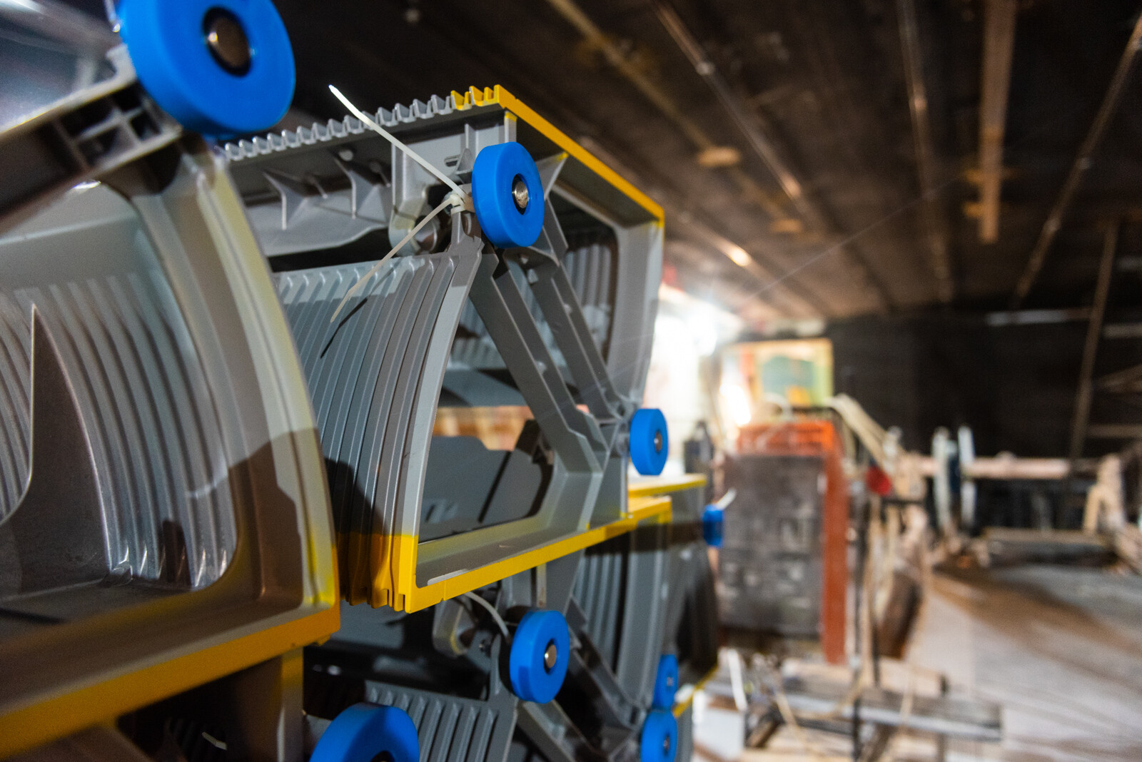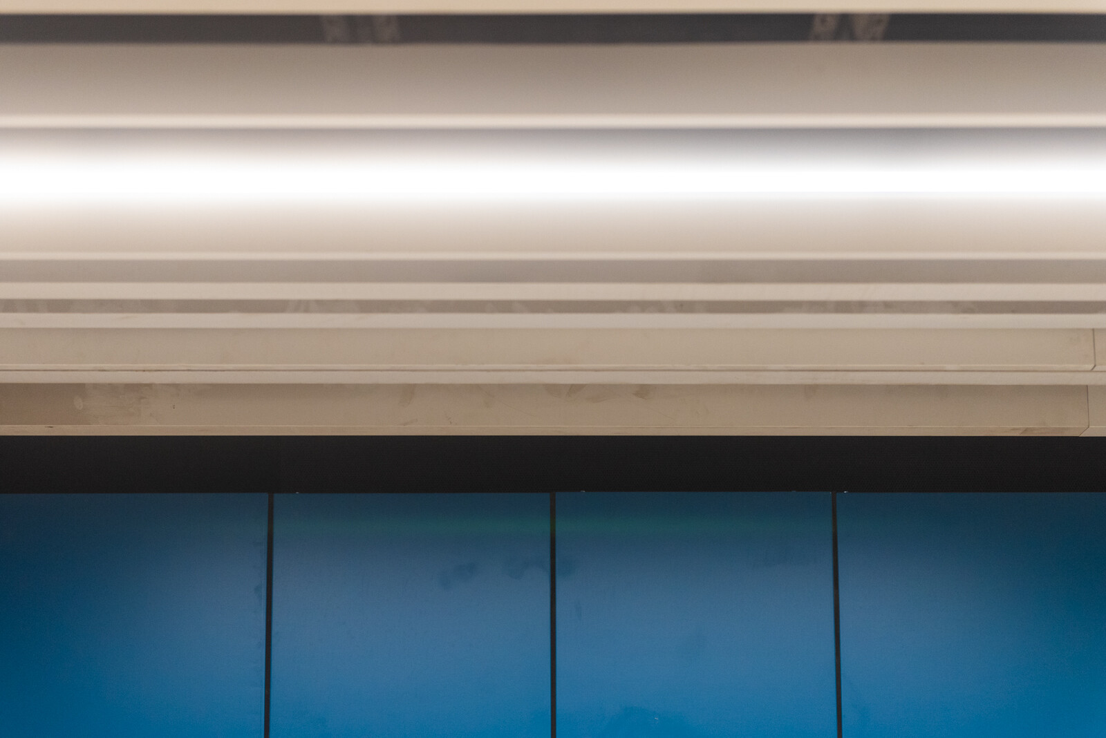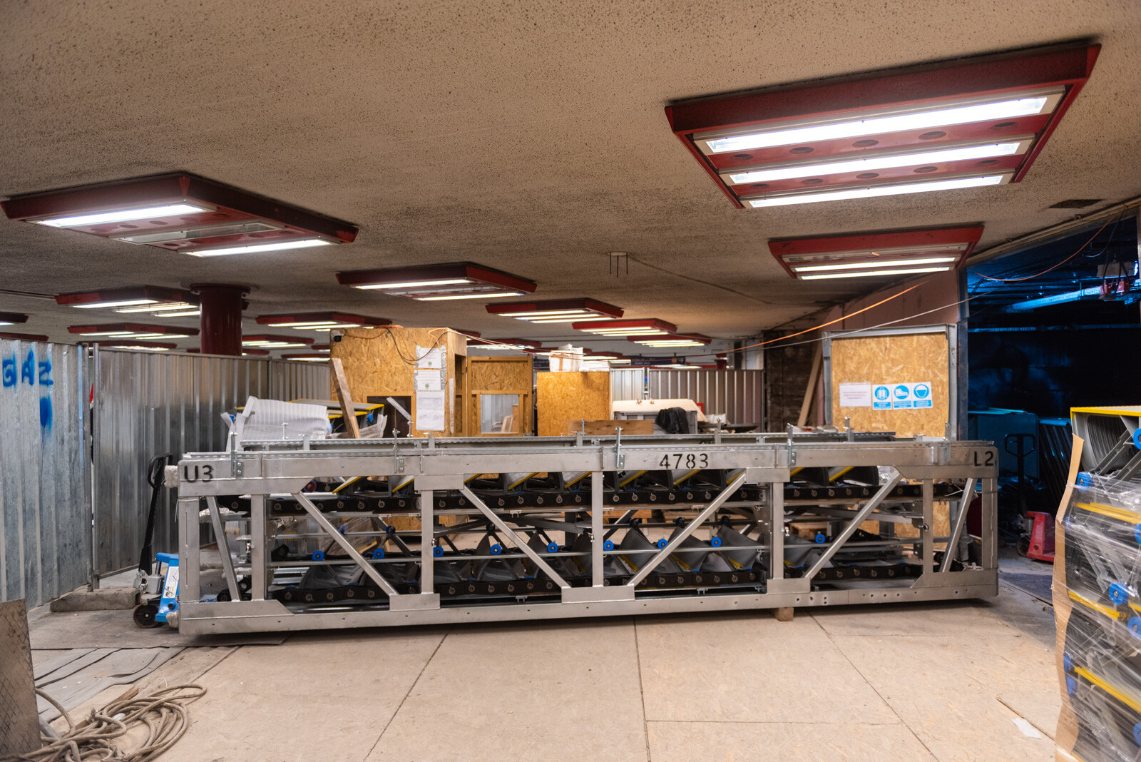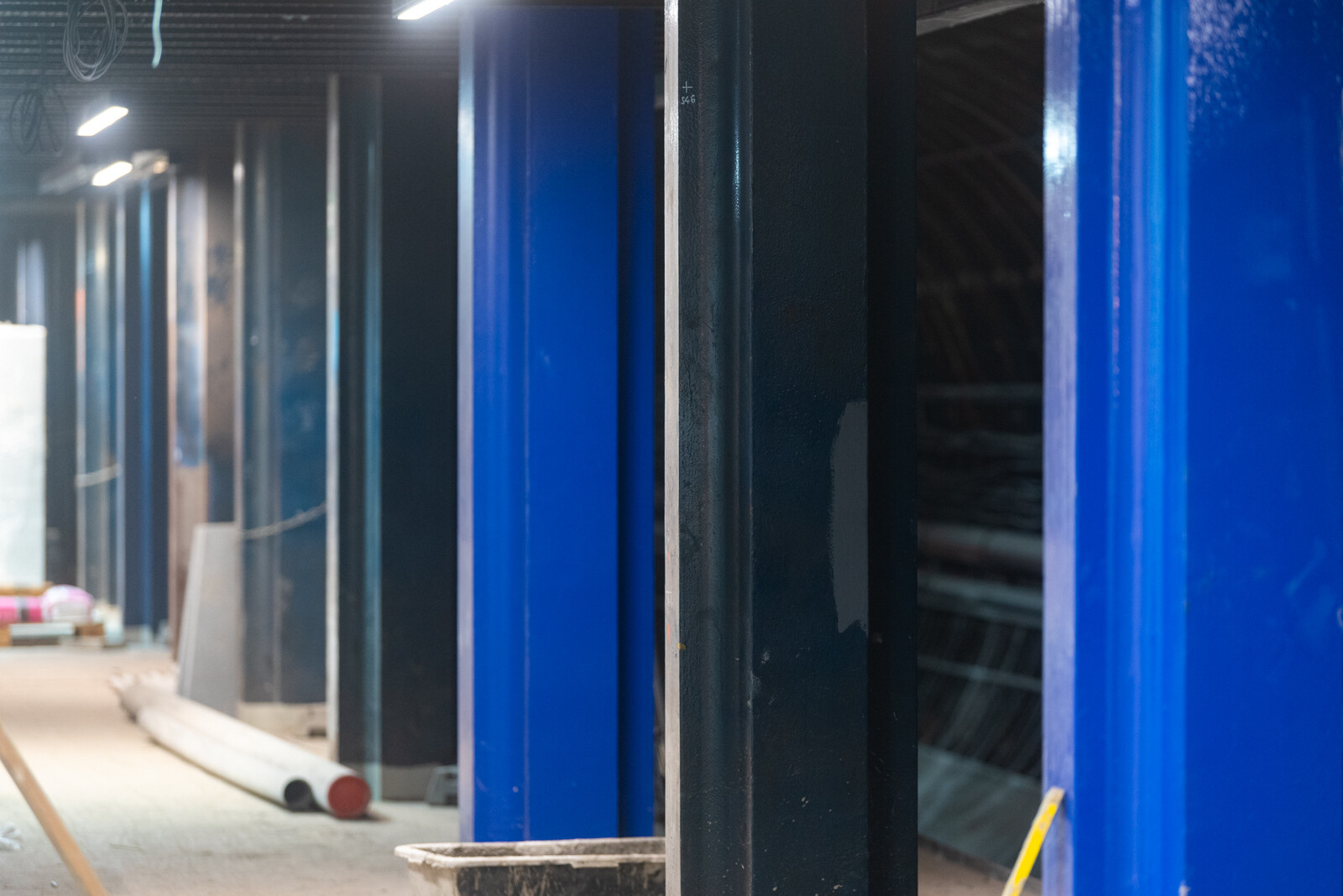 A peronszinten a végleges kőburkolat elkészült, és folyamatosan szerelik a végső oldalfalat és az álmennyezet tartószerkezetét. A következő hónapokban felszerelik az álmennyezeti tálcákat és az oldalfal burkolati paneleket.
