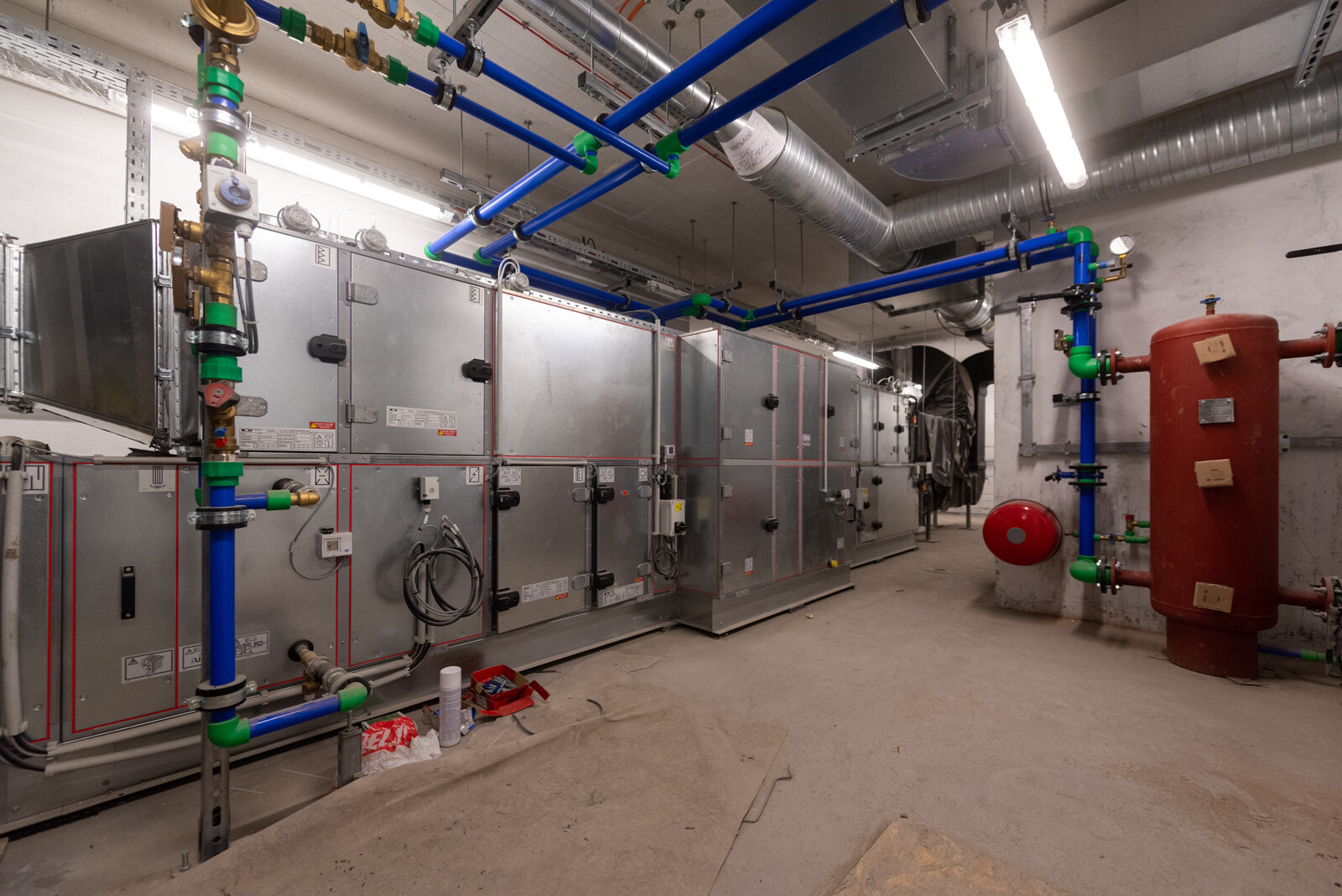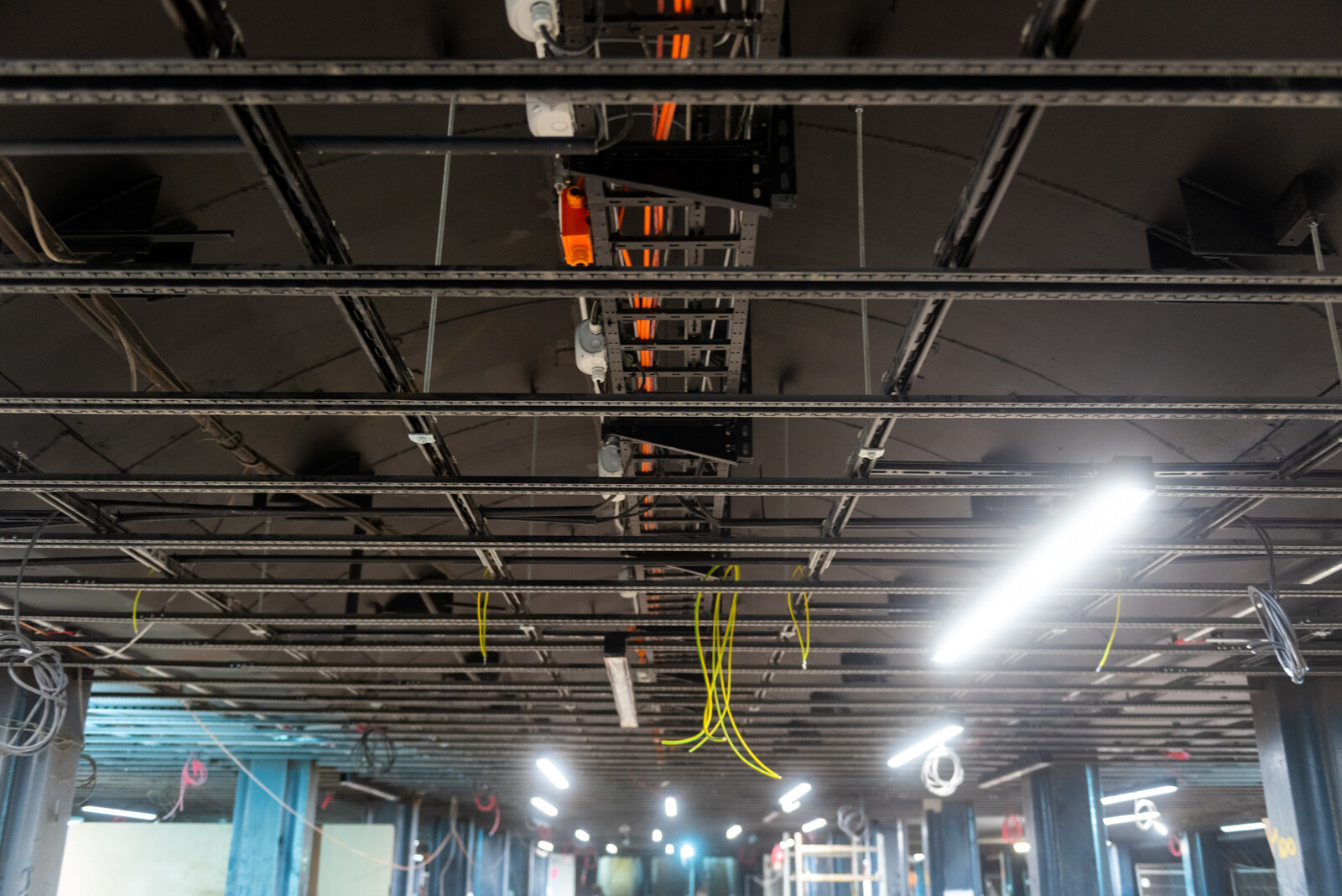 Az üzemi terekben a szakági elektromos és gépész szerelések folynak:
