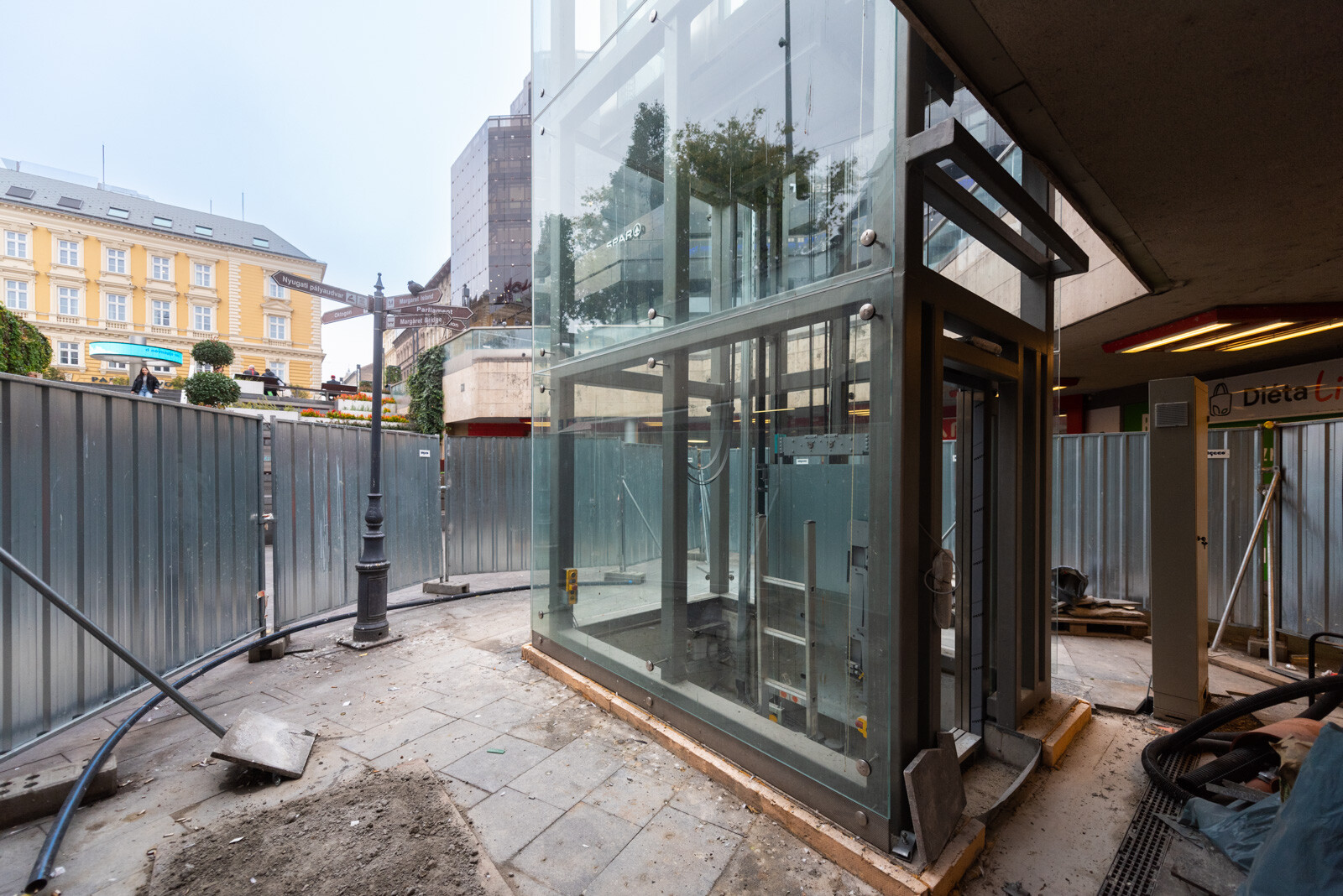 Az állomási főszellőzőbe a gépészeti berendezések telepítése és bekötése megtörtént. A közeljövőben várható az utasforgalmi terek burkolatainak elhelyezése, melyet a peron álmennyezetével kezdenek, majd az oldalfal burkolatokkal folytatnak. Ezt követően az északi aluljáró szinten és a lejtaknában, végül a déli aluljáró szinten és lejtaknában is felhelyezik a burkolatokat. A Skála előtt található felszíni lift üvegfalai elkészültek, a liftszerkezet beépítésre került. A körülötte lévő térburkolat helyreállítása folyamatban van, és készül a lift frontoldalának fémlemez burkolata is.