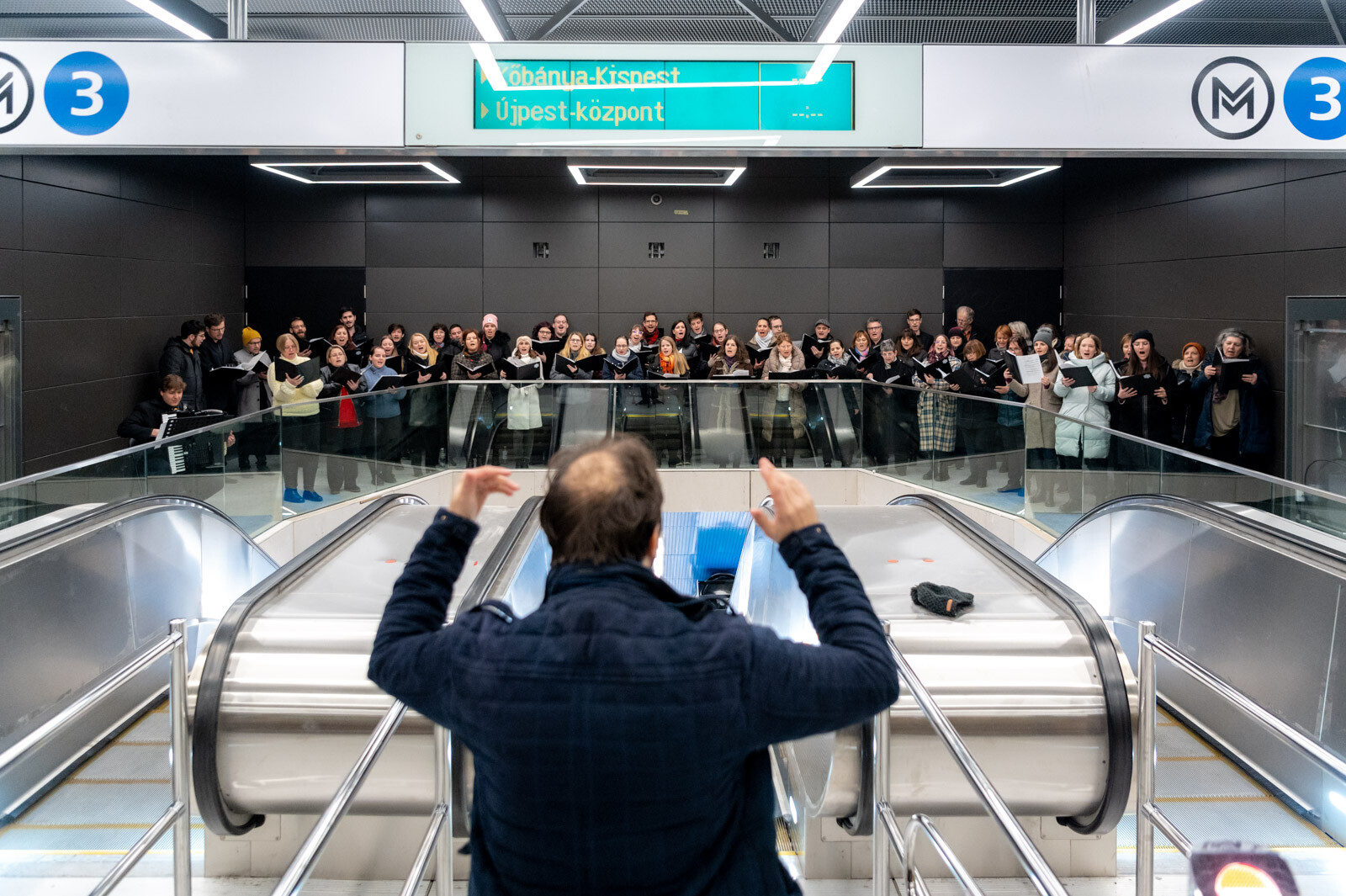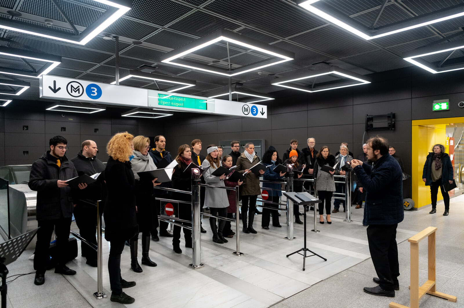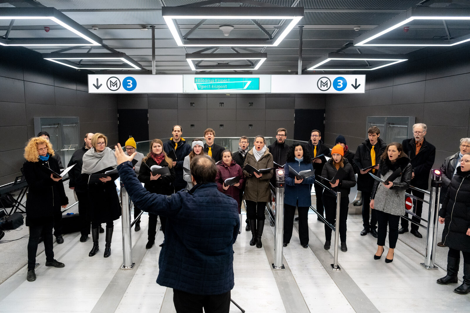 Koncertteremmé alakult az M3 metróvonal megújult Deák Ferenc tér állomása egy estére január 11-én, másfél héttel a hivatalos átadó előtt. A Budapesti MediCantare Vegyeskar és a Vox Insana Kamarakórus közös előadását hallhatták a meghívottak. Az esemény ötletgazdája Gurdon Balázs, a Deák Ferenc téri metróállomás új tereinek egyik építész tervezője - egyébként a kamarakórus tagja -, ezzel a koncerttel köszönte meg mindazok munkáját, akik az elképzelt arculatot megvalósították. A rendezvény ritka pillanatait fotósunk örökítette meg, a képeken jól látható a Deák Ferenc tér állomás egyik csodás, új tere.
