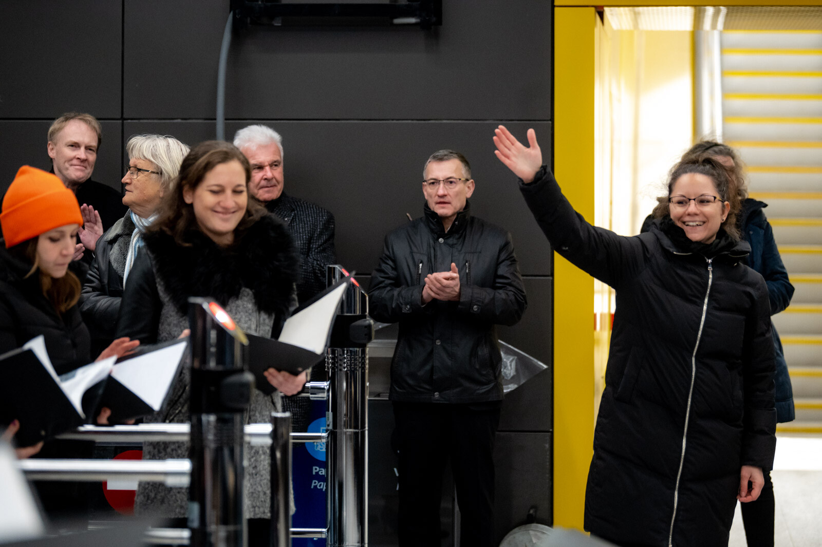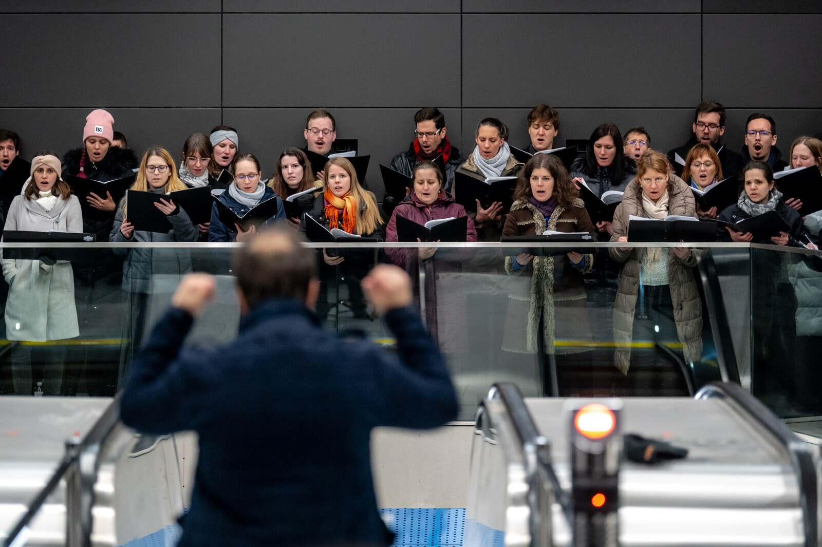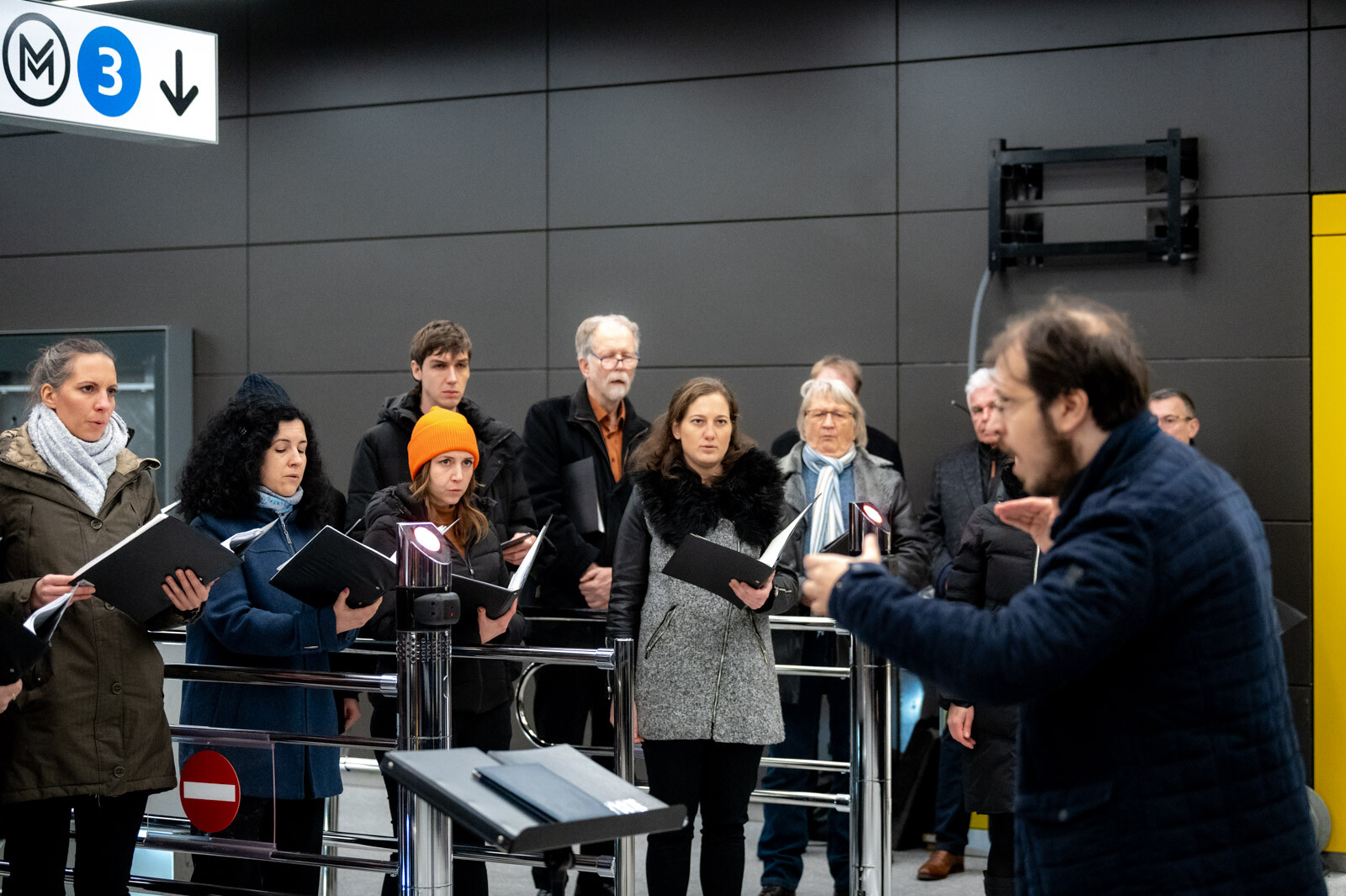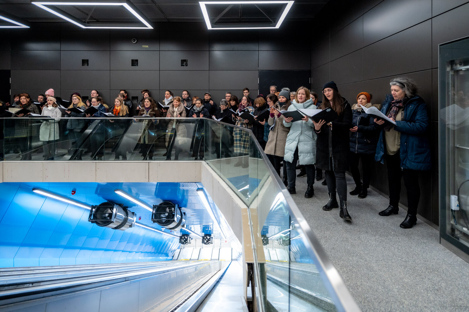 Koncertteremmé alakult az M3 metróvonal megújult Deák Ferenc tér állomása egy estére január 11-én, másfél héttel a hivatalos átadó előtt. A Budapesti MediCantare Vegyeskar és a Vox Insana Kamarakórus közös előadását hallhatták a meghívottak. Az esemény ötletgazdája Gurdon Balázs, a Deák Ferenc téri metróállomás új tereinek egyik építész tervezője - egyébként a kamarakórus tagja -, ezzel a koncerttel köszönte meg mindazok munkáját, akik az elképzelt arculatot megvalósították. A rendezvény ritka pillanatait fotósunk örökítette meg, a képeken jól látható a Deák Ferenc tér állomás egyik csodás, új tere.