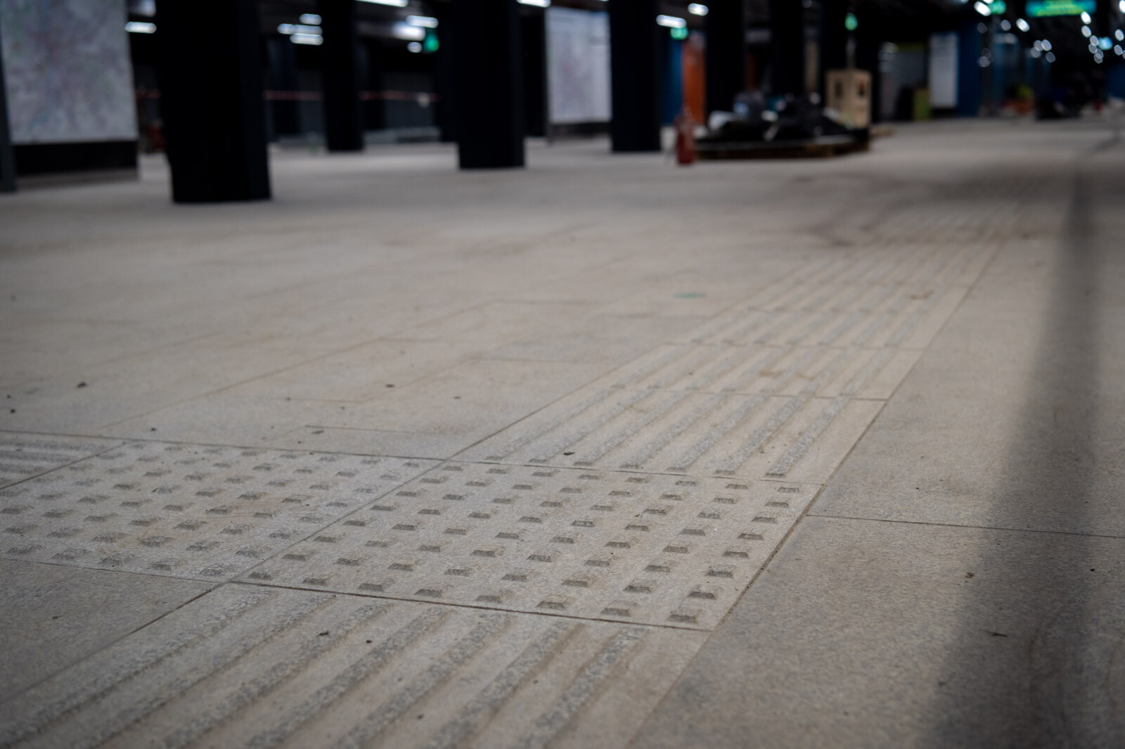 Az északi és a déli aluljáró szinten valamint a peronszinten is már csak a gránit kőburkolatok javítását végezték az utolsó napokban: síkba csiszolás és a taktilis sávok korreakcióján dolgoztak, valamint takarítottak. A peronszinten felhelyezték az utastájékoztató rendszereket, a reklámtábla tartókat. Az átadás előtti héten a nyílászásók finombeállítását és a beléptető rendszerek beüzemelését hajtották végre.