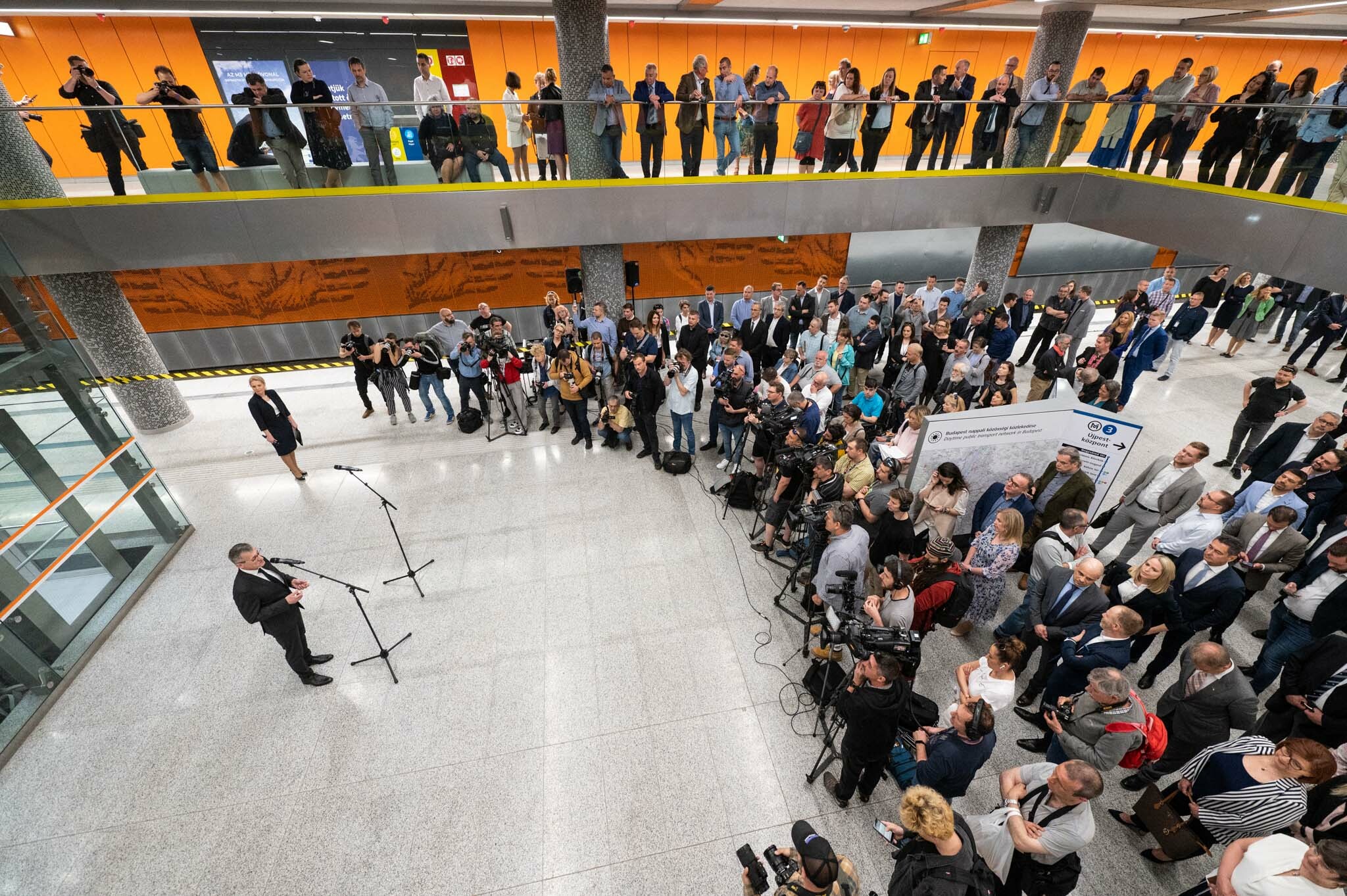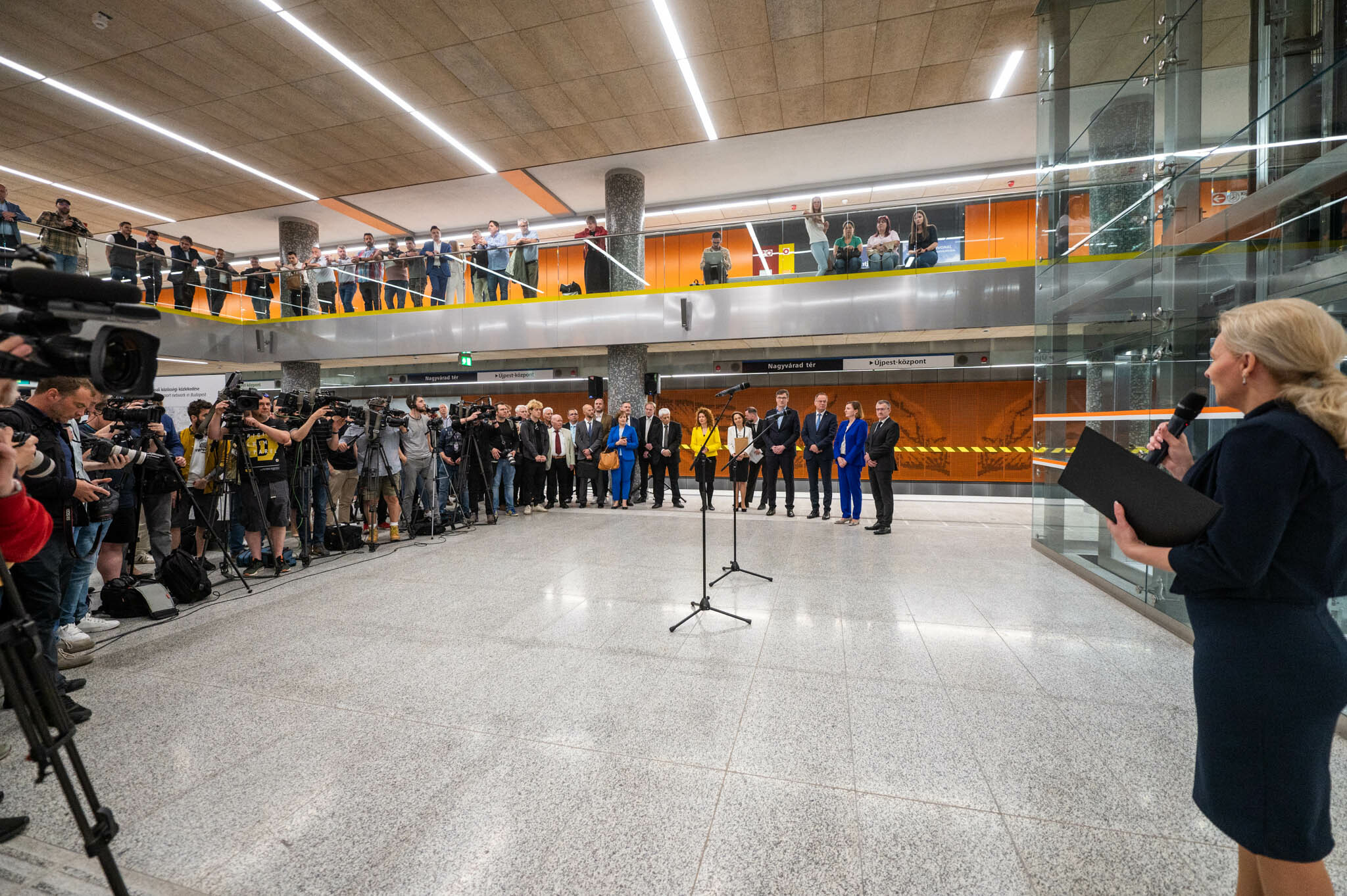 Karácsony Gergely főpolgármester köszöntet mondott a kormánynak, az EU-nak, a beruházásban közreműködőknek, valamint megköszönte a Budapesten közlekedők türelmét. Azt mondta, a metróvonal felújítása nagy kihívás volt a városnak, de azt reméli, hogy amikor a megújult, akadálymentesített metrót használják az emberek, azt fogják gondolni, hogy megérte.