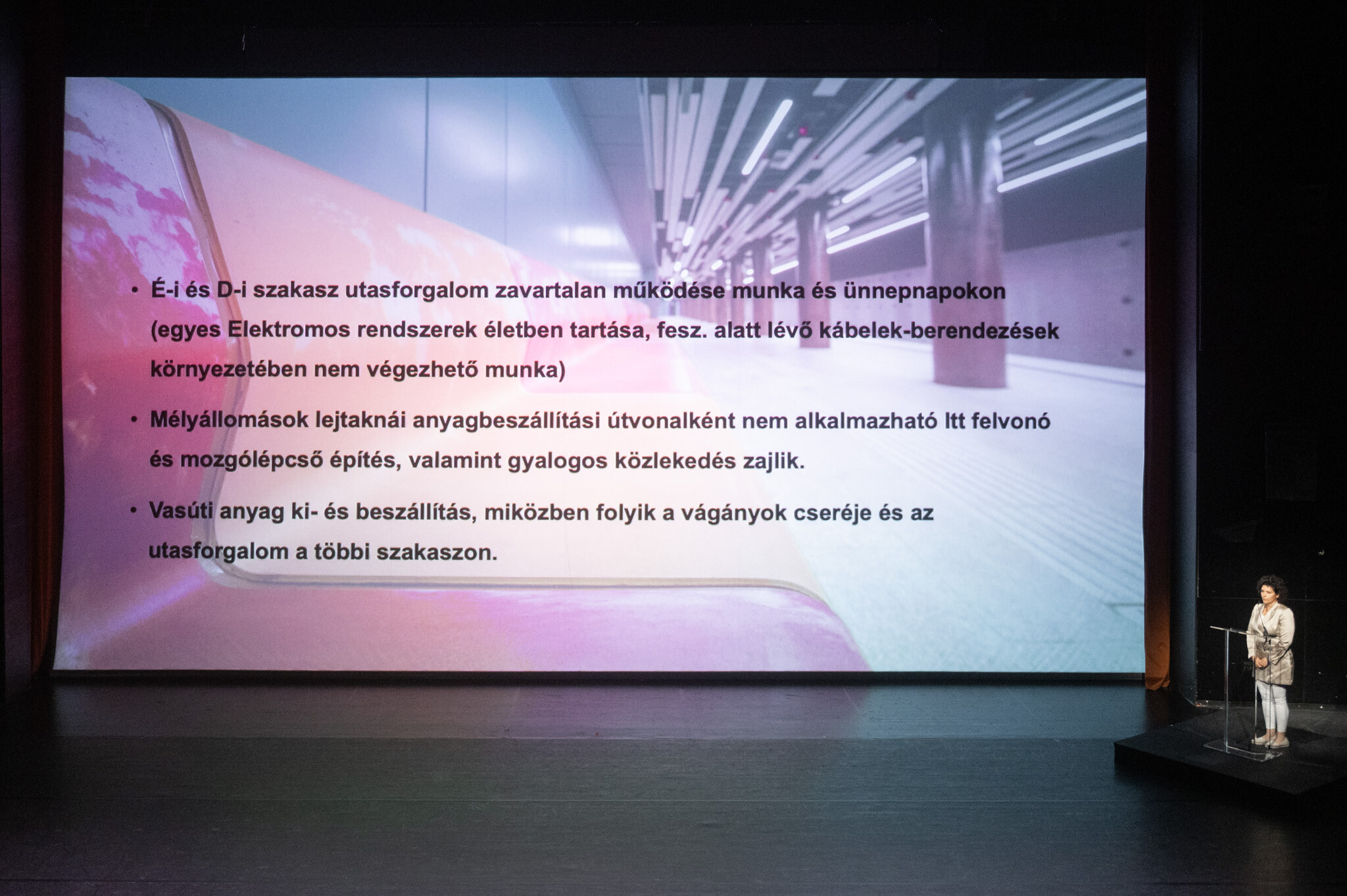 Radnay Tibor a BKV metrófelújításért felelős projektigazgatója felelevenítette a metró építésének és felújításának főbb mérföldköveit, a tervezéstől kezdve a kivitelezésen át. Hangsúlyosan részletezte az akadálymentesítést, mely által 21 állomás vált mindenki által használhatóvá. Ismertette a projekt kihívásait: ezek közé tartozott az azbesztmentesítés, a vízelvezetés megoldása, az anyagok be- és kiszállítása az alagútba, valamint az egyes pótmunkák.