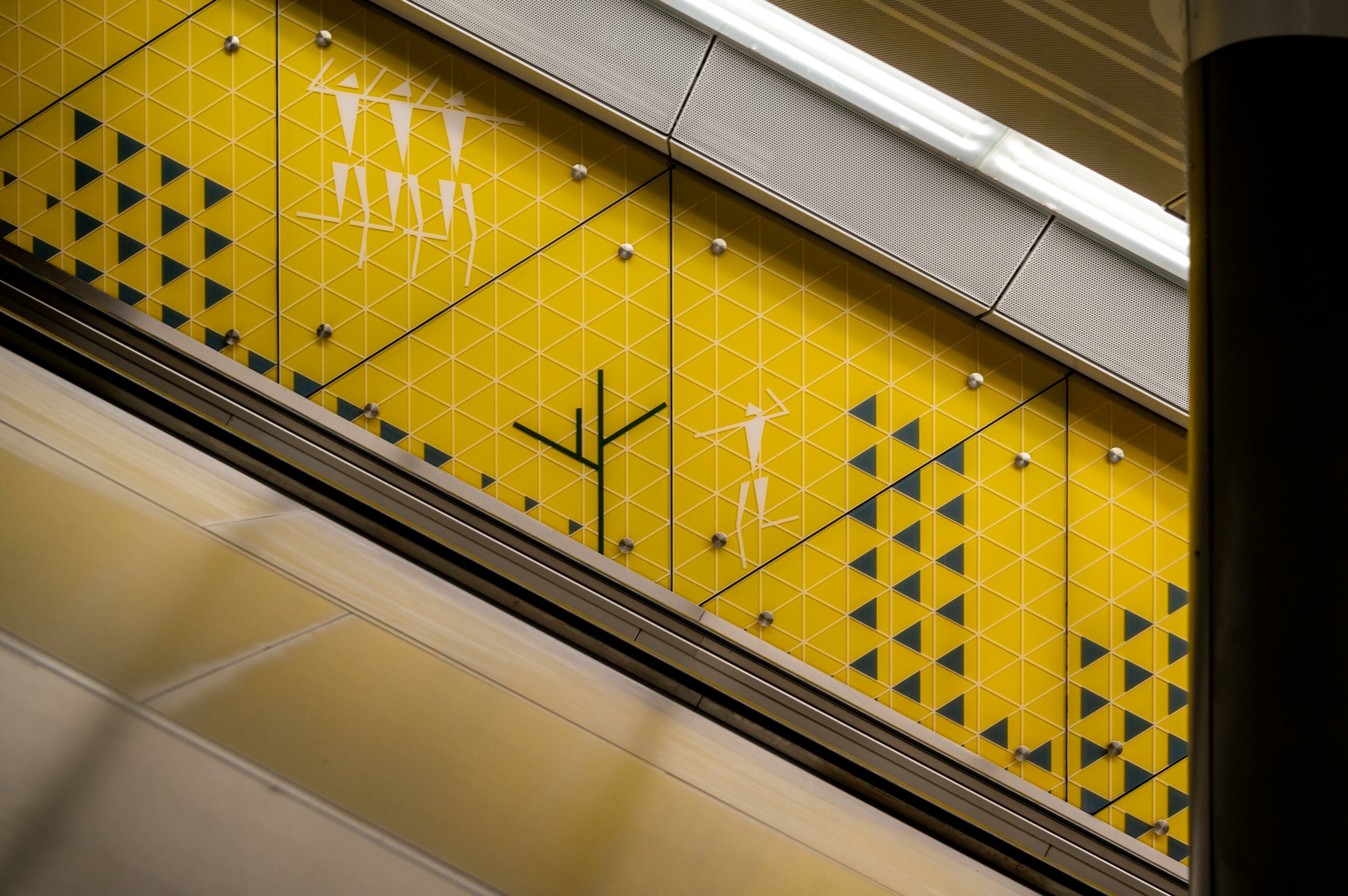 Számos falburkolatfajta felszerelésére volt szükség a munka elvégzéséhez, amelyeknél nem csupán az egyedi megjelenés kialakítása, de az egyes állomások sajátos tulajdonságai is kihívást jelentettek. Az állomások az egyedi mintázatú burkolatok használatával mind sajátos megjelenést kaptak: a Kálvin téren például Fábry Katalin munkája alapján kialakított grafikai elem Bartók Béla Cantata Profana című kórusművét dolgozza fel.