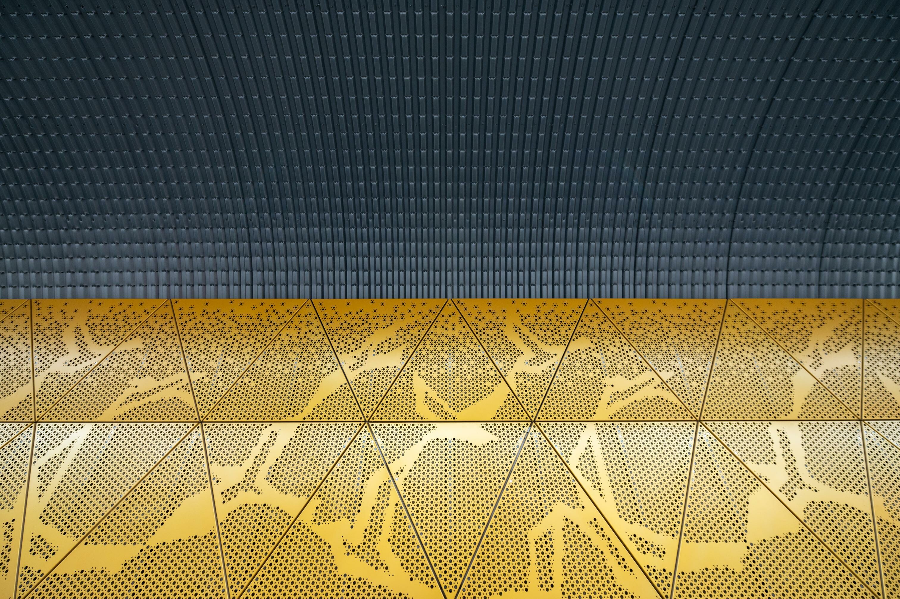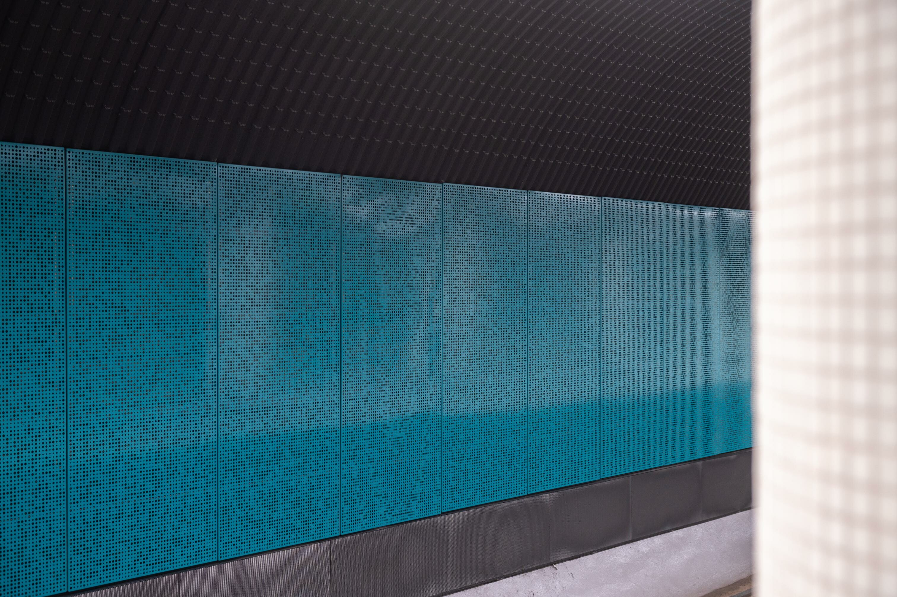 Más helyekre expandált (terpesztett) álmennyezetek, szabálytalan sokszögű mennyezeti panelek, tálcás falburkolatok, sajtolt alumínium eljárással készült extrudált álmennyezetek vagy épp perforált álmennyezetek kerültek mindegyik állomás saját karaktere szerint. Beszerzési szempontból az egyik legnagyobb feladatot a roppantott trapézlemez adta, amely 7 állomásra is került, eltérő ívhosszal. Logisztikai szempontból a legnagyobb kihívást a fém álmennyezetek jelentették, azon belül is a vágánytéri trapézlemez ernyőelemek, amelyek súlya rakatonként megközelítőleg 1,6 tonna volt.