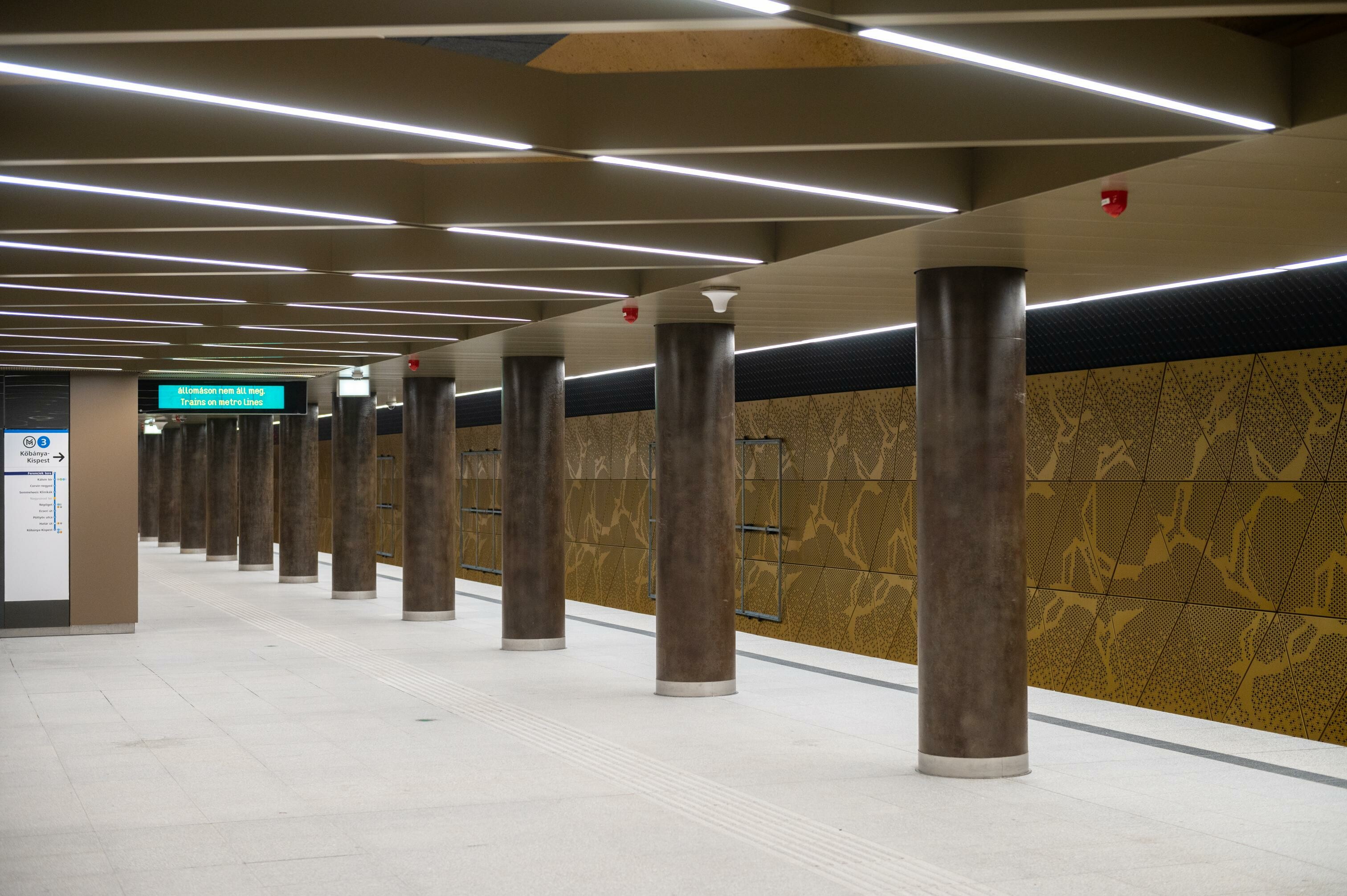 Az állomásokon a kábeltakaróként szolgáló burkolatokhoz két megoldást, a 100%-ban újrahasznosított alumíniumból készült aluhab kábeltakaró burkolatot, illetve egyedi mintázatú perforált kábeltakarókat alkalmaztak, amelyek tervezésében a KÉSZ Csoport stratégiai partnere, a bim.GROUP Kft. volt segítségükre. E síktálcás paneleknek az előkészítése akár 6-12 hónapot is igénybe vett. Jó példa a kihívás méretére a Nagyvárad téren lévő a vágánytér 500 m2 kábeltakarója, amely mozgó kezet formál.