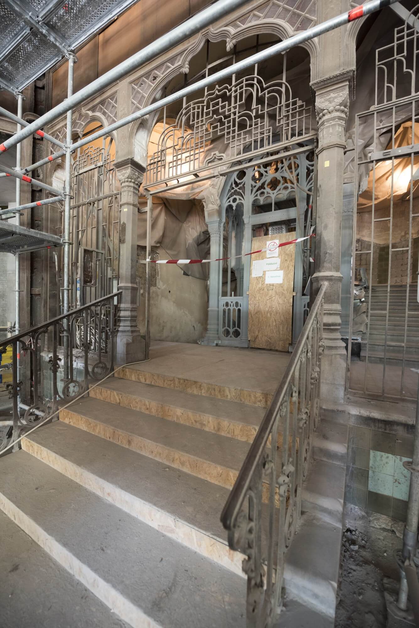 Az épület kivitelezése során a műemlékileg védett szerkezetek, az előre nem látható részletgazdagság és a megóvásra érdemes elemek jelentenek igazi kihívást. A kiemelten védett épületrészek közé tartozik az utcai homlokzat, a passzázs, a kettős lépcsőház, a háromkarú főlépcsőház, a poligonudvar egyes részei és a tetőfelépítmények mázas kerámia burkolatai.