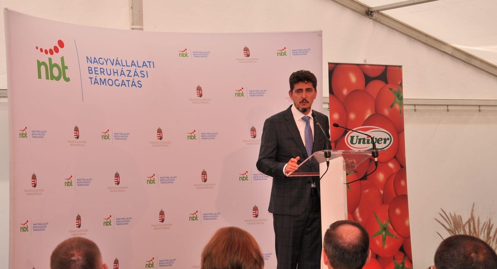 Átadták az Univer Product Zrt. új paradicsom-feldolgozó üzemét. A 4,3 milliárdos beruházásnak köszönhetően a vállalat megduplázott kapacitással lesz képes paradicsomsűrítményt előállítani. Közép-Európa legnagyobb ilyen jellegű üzeme jött létre a projekt által, amihez a magyar állam 2,1 milliárd forinttal járult hozzá a Nagyvállalati Beruházási Támogatási program keretében.