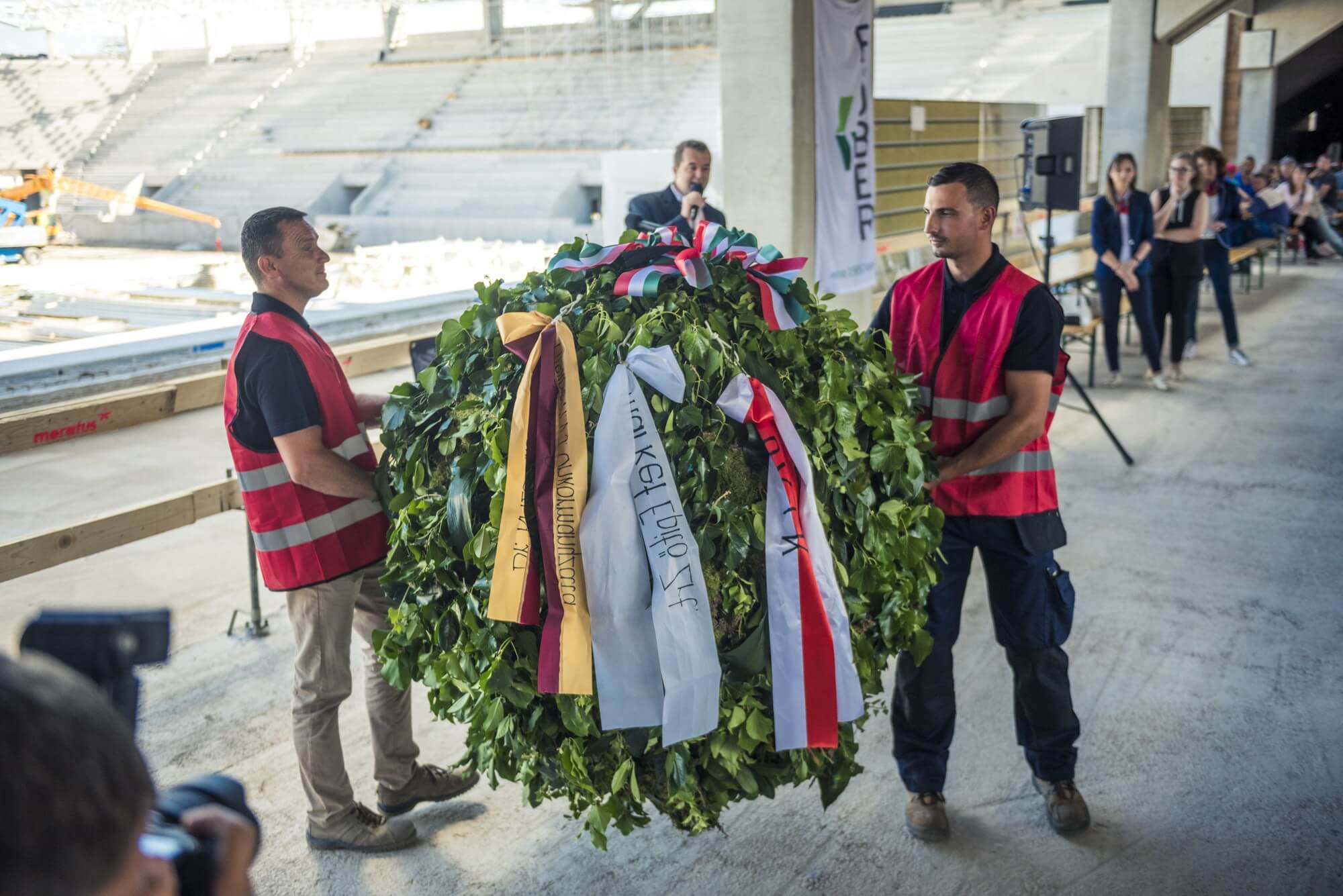 Hétfőn délután bokrétaünnepséget tartottak a Market Építő Zrt. kivitelezésében készülő diósgyőri stadionban. A 13,1 milliárd forintból készülő beruházás szerkezetkész állapotba került, az építkezés elérte a legmagasabb pontot. A munkálatokkal várhatóan 2018 tavaszán készülnek el.