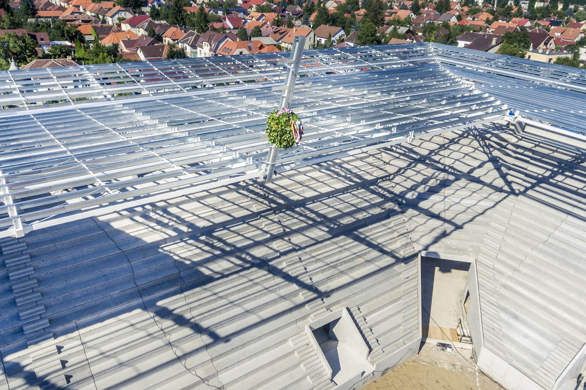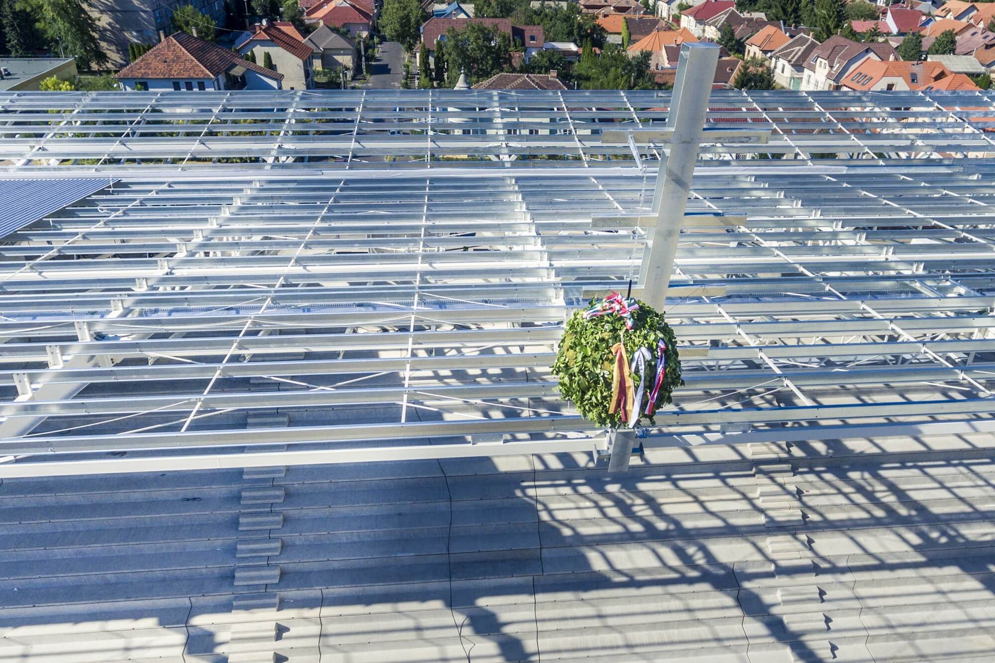 Az 1100 tonnás acél tetőszerkezetre felépítették a pályavilágító konzolokat, ezek a stadion legmagasabbra nyúló elemei, a bokrétát is ide helyezték fel. A Market 12 ezer köbméternyi betont és 1000 tonna betonacélt használt fel a szerkezetépítés során, körülbelül 2500 előregyártott betonelemet helyeztek el. A teljes építkezés során eddig mintegy 30 ezer köbméter földet mozgattak meg.