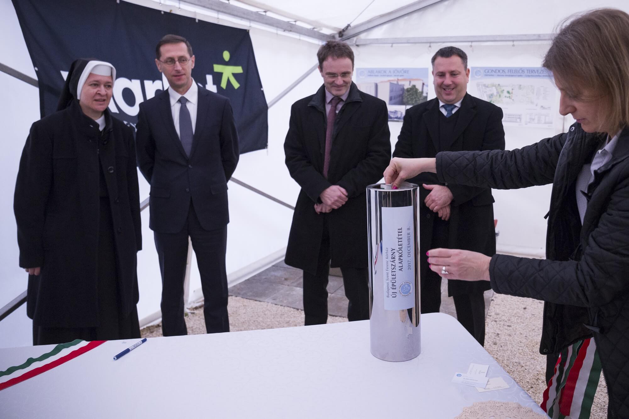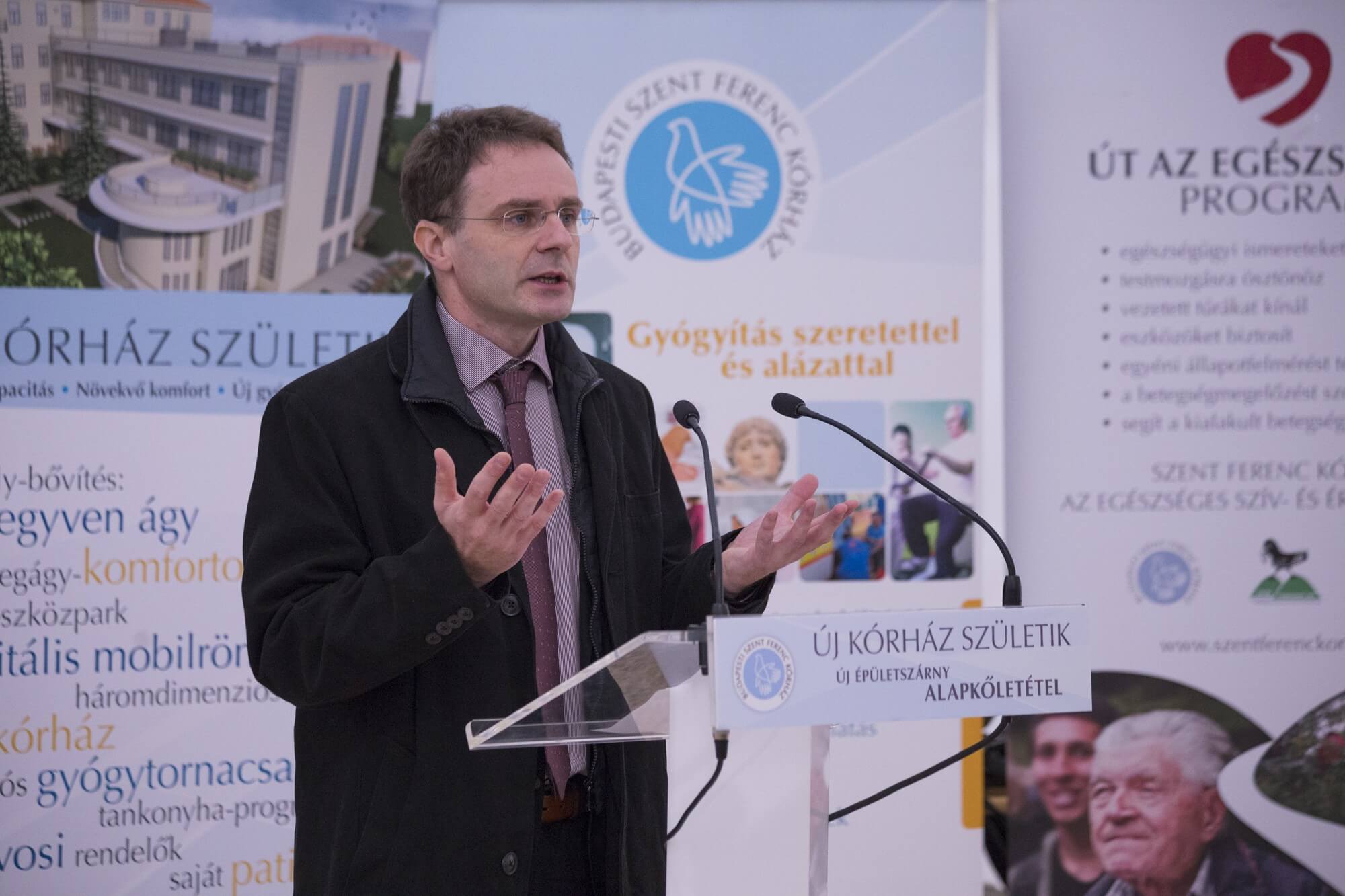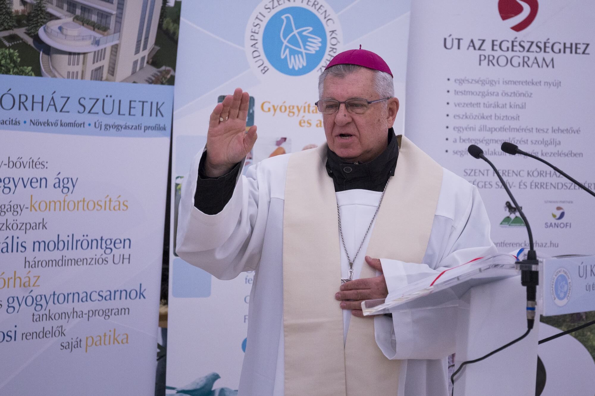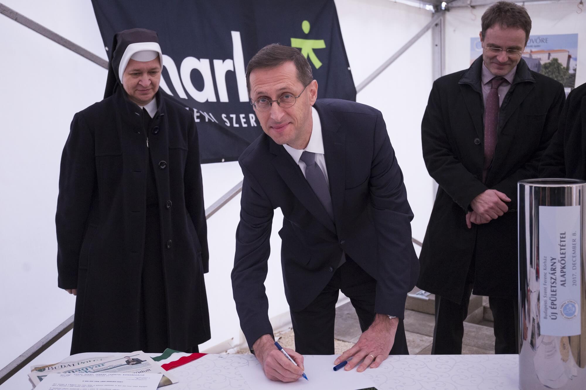 Varga kiemelte, hogy a Szent Ferenc Kórház betegelégedettségi mutatói magasak és rámutatott, hogy az intézmény célja az, hogy minél több külföldön tapasztalatot szerzett orvost alkalmazzon hazánkban. Az alapkövet Snell György esztegomi-budapesti segédpüspök áldotta meg.