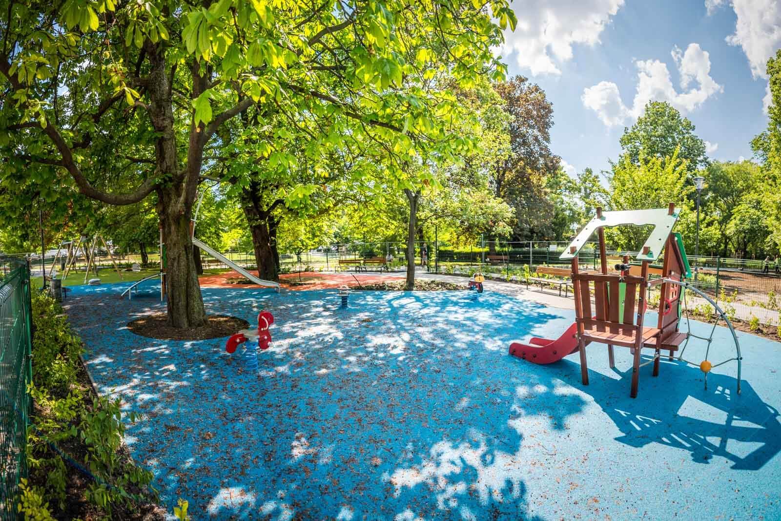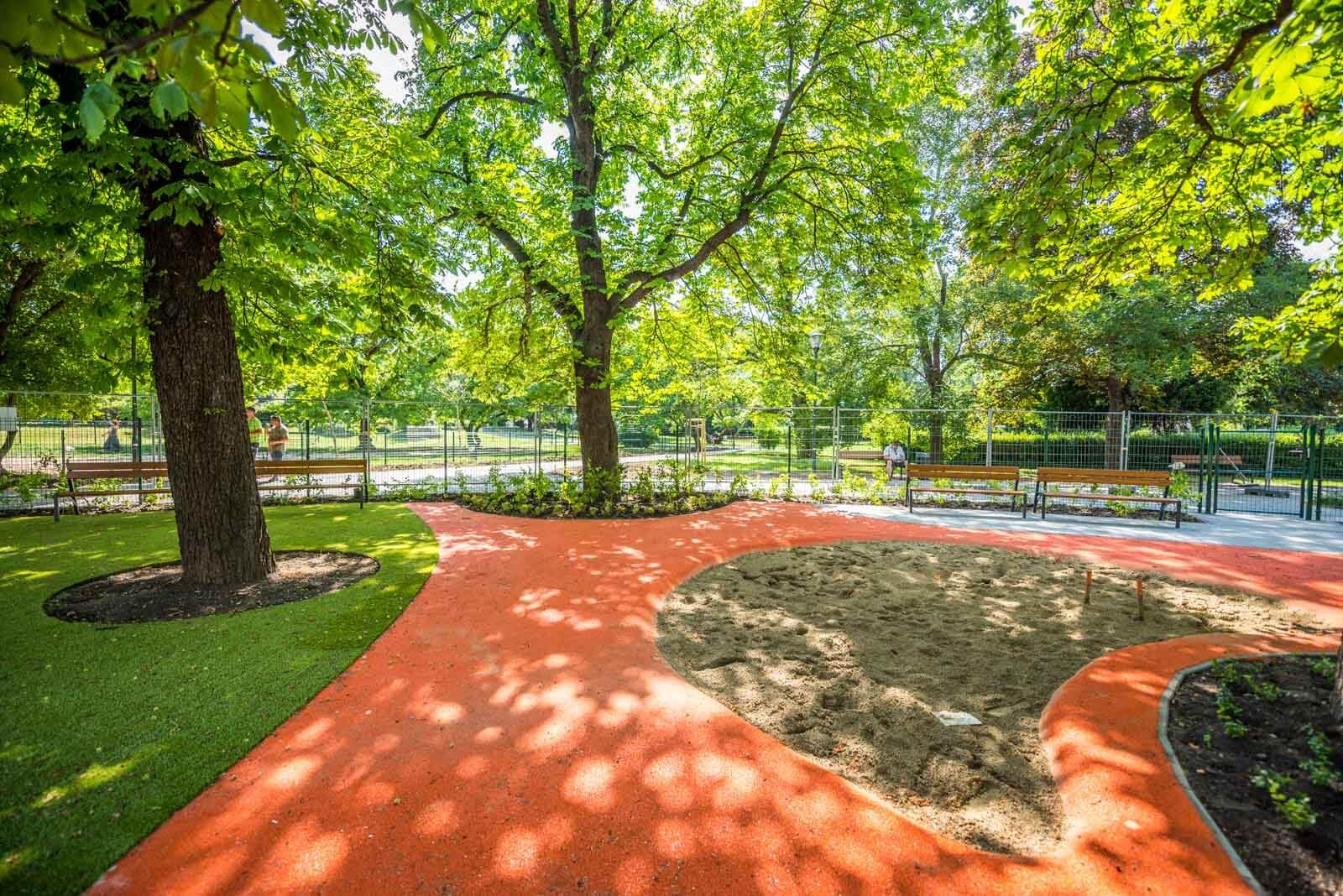 Megújult sétányok, növényzet, játszótér és kutyafuttató fogadja a Hegyalja út forgalmától menekülőket a Csörsz parkban.