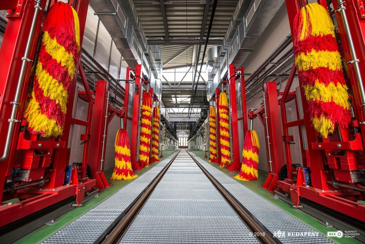 A STRABAG kivitelezésében megújult dél-budai járműkarbantartóban elsősorban a fonódó villamoshálózat kocsijait tárolják, tisztítják és fényezik.