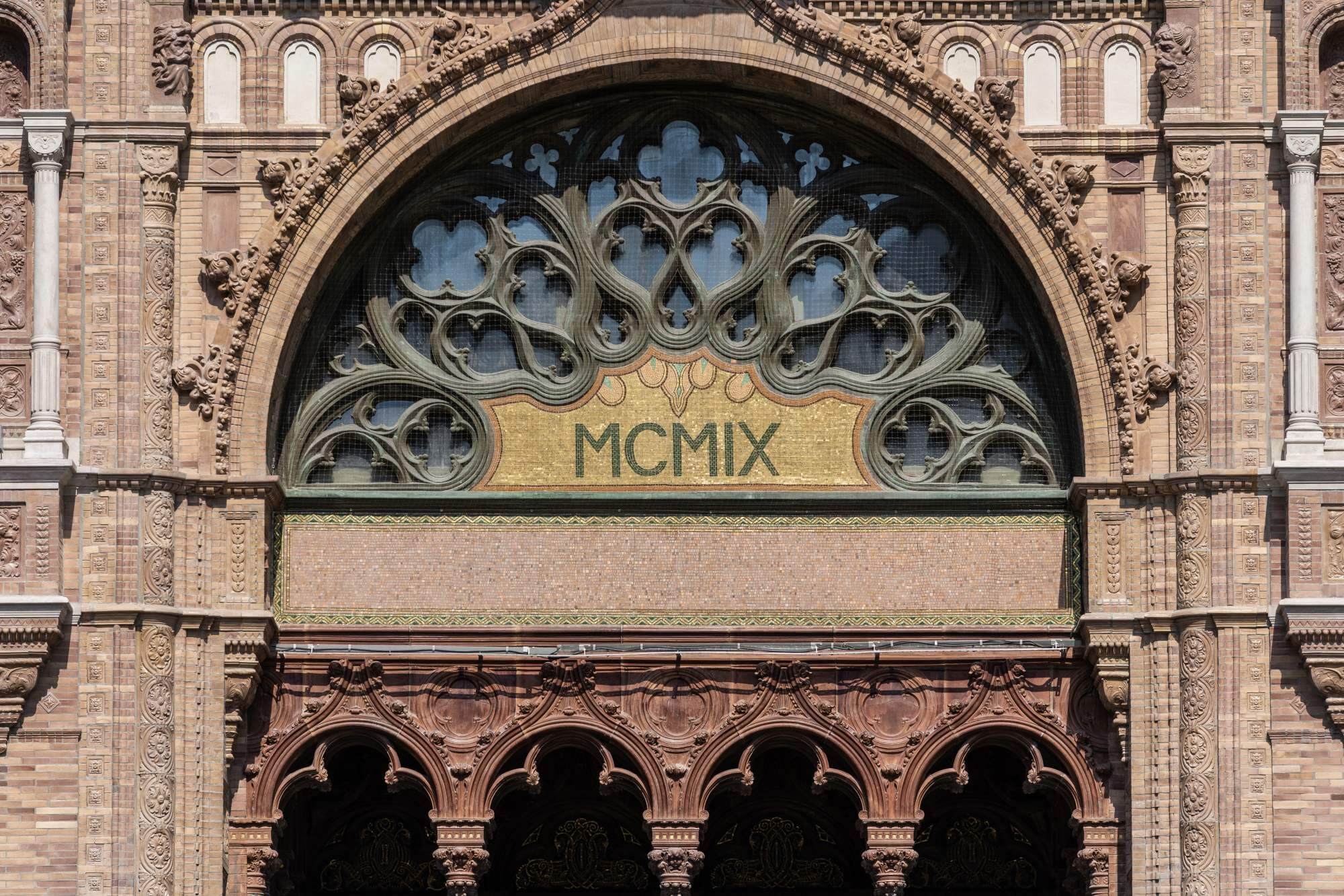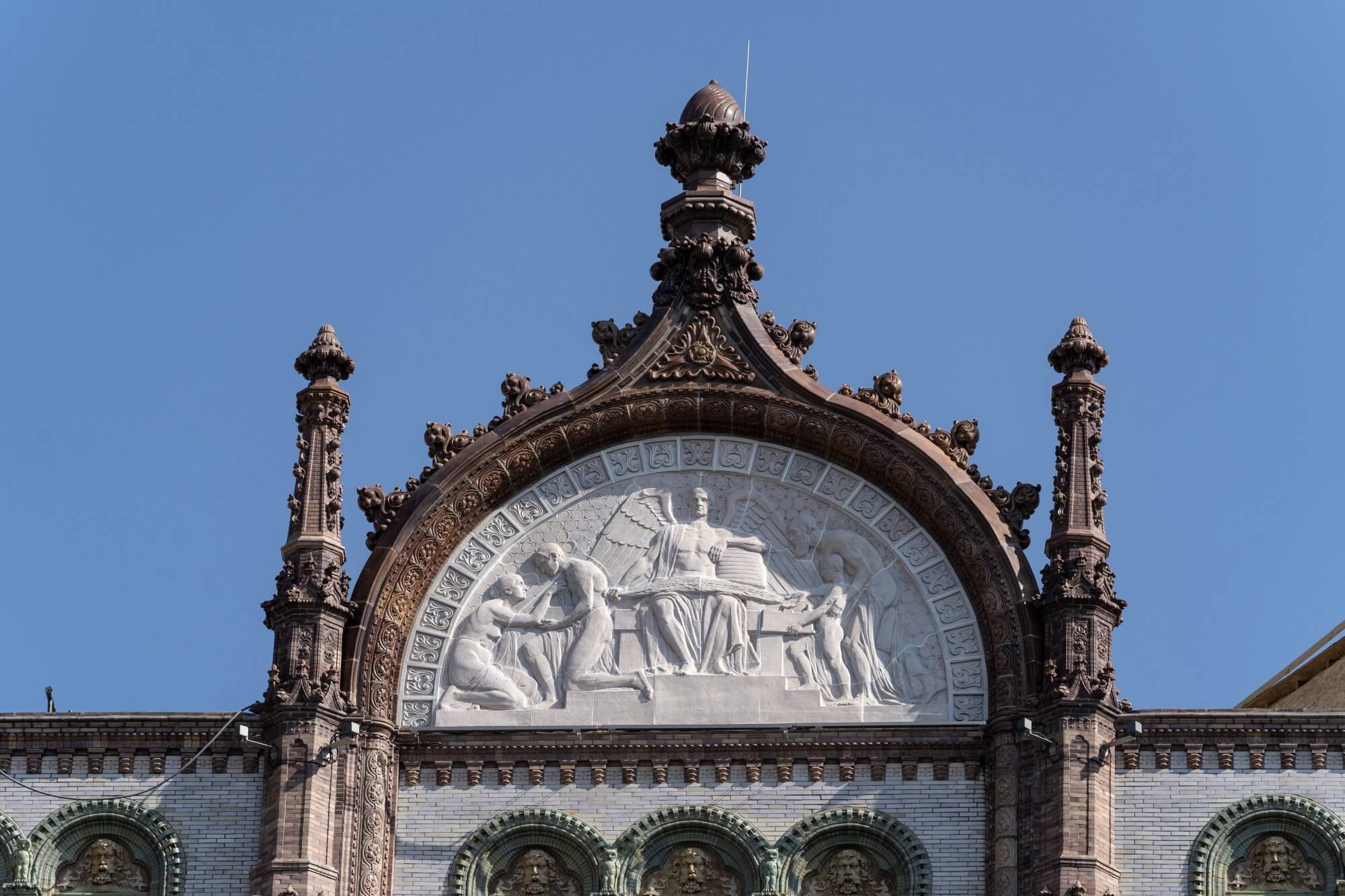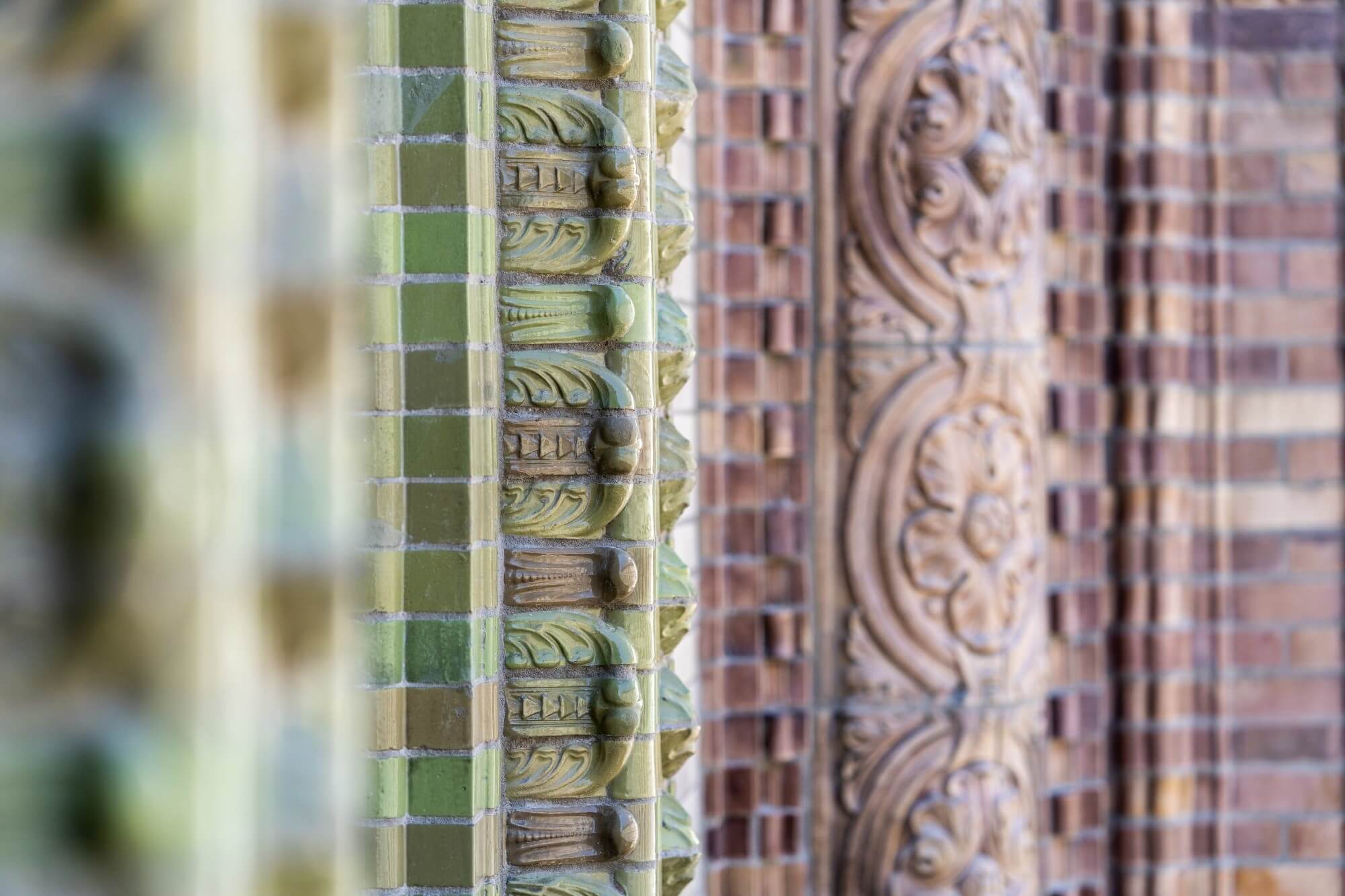 A munkálatok során közel tízezer elem került beépítésre az évtizedek alatt tönkrement darabok helyére. Ennek nagyobb része újonnan gyártott Zsolnay, kisebb részük pedig az épületen fellelt eredeti kerámiákból áll. Összesen mintegy 250 ezer elem található a homlokzaton, ebből a legkisebb 20 dkg, a legnagyobb 65 kg. A homlokzaton 500 négyzetméter réz díszműbádog szerkezet is elhelyezkedik, ezen a természetes patina megőrzése mellett kellett restaurátori és rekonstrukciós munkákat végezni 4-5 fő részvételével.