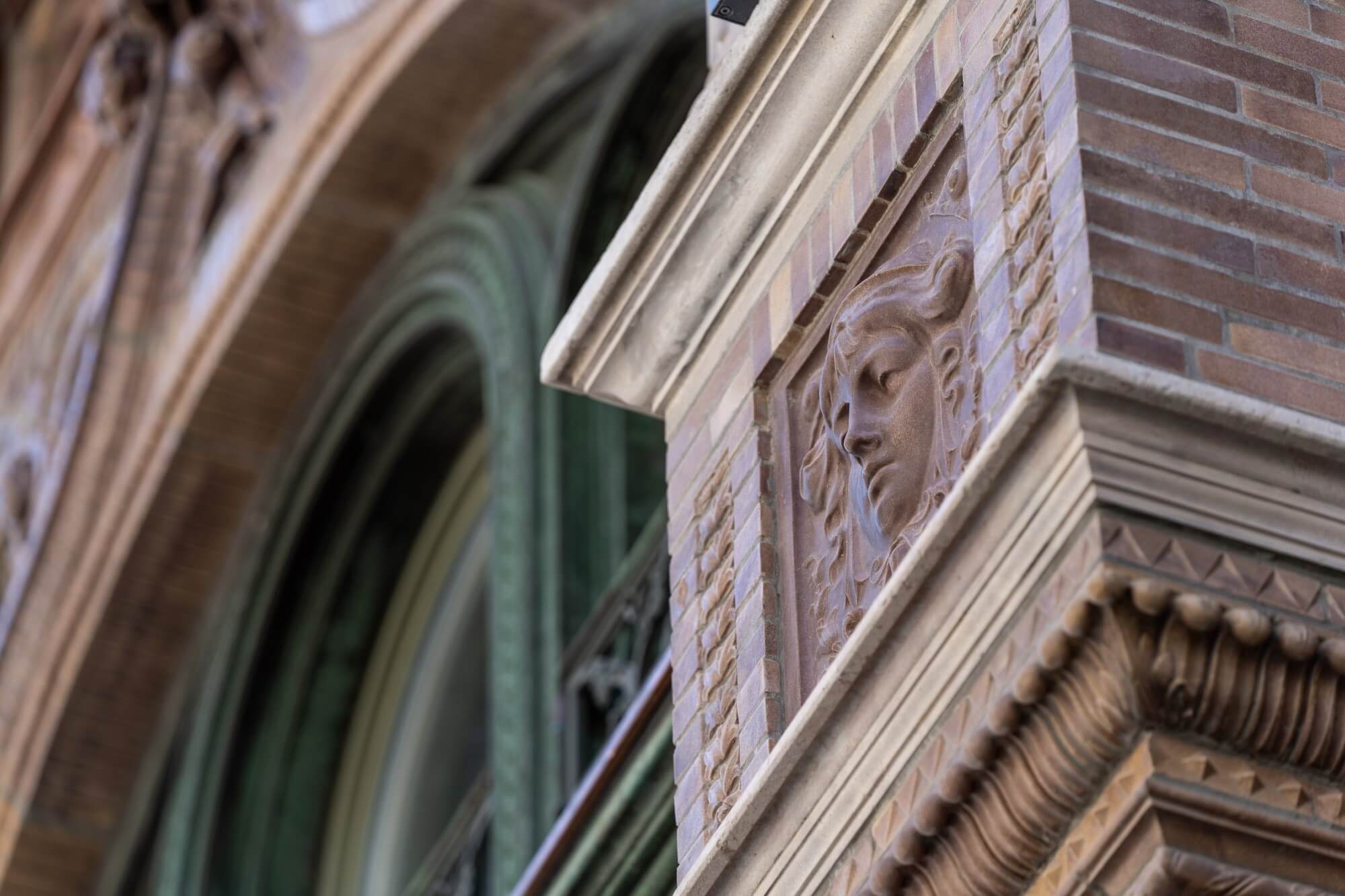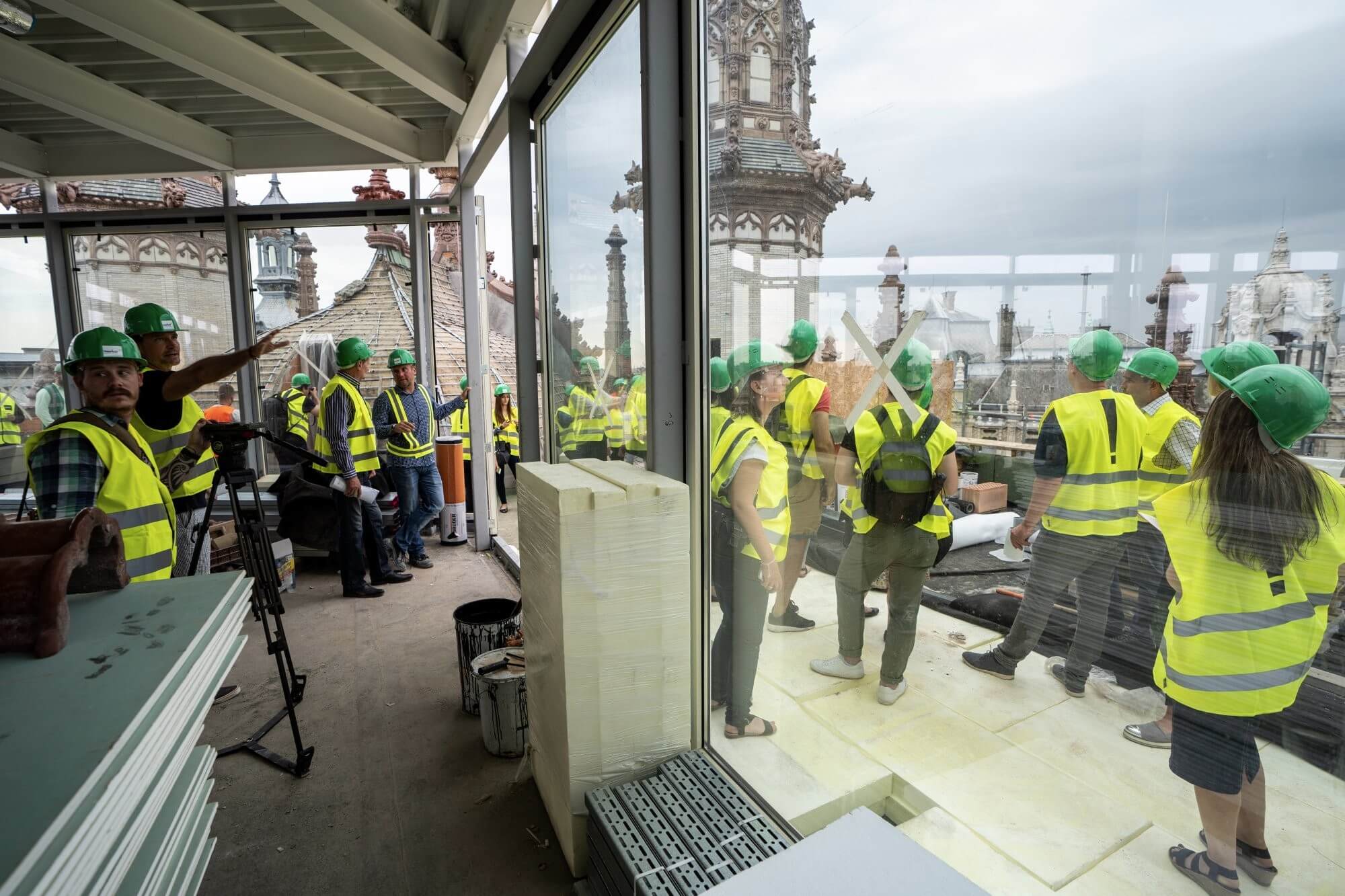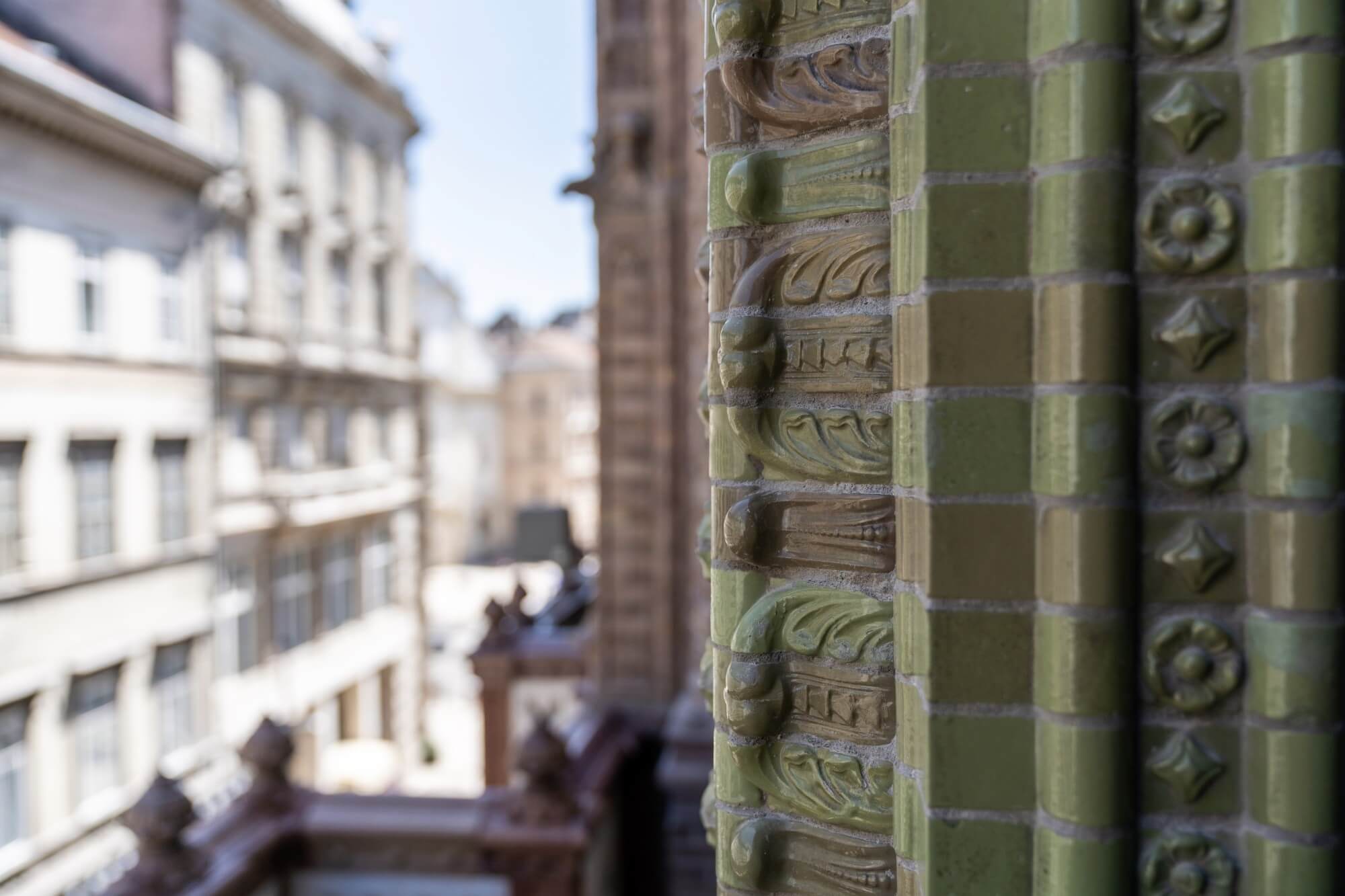 „A kerámia restaurátori munkái közel hetvenezer órát öleltek fel, a legintenzívebb időszakban ezen munkafázisok 41 fővel folytak. Kihívással teli projekt volt, mivel egy grandiózus épületről beszélünk: a restaurált homlokzati felület 3000 négyzetméter, az épület legmagasabb pontja pedig 41 méter, mely egy 13 emeletes panelháznak felel meg”